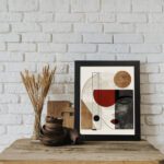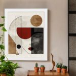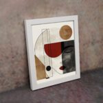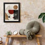 The use of neutral tones with accents of red and warm brown creates a balanced and modern look. The clean lines and subtle contrasts give the artwork a refined and contemporary feel, perfect for modern interiors.