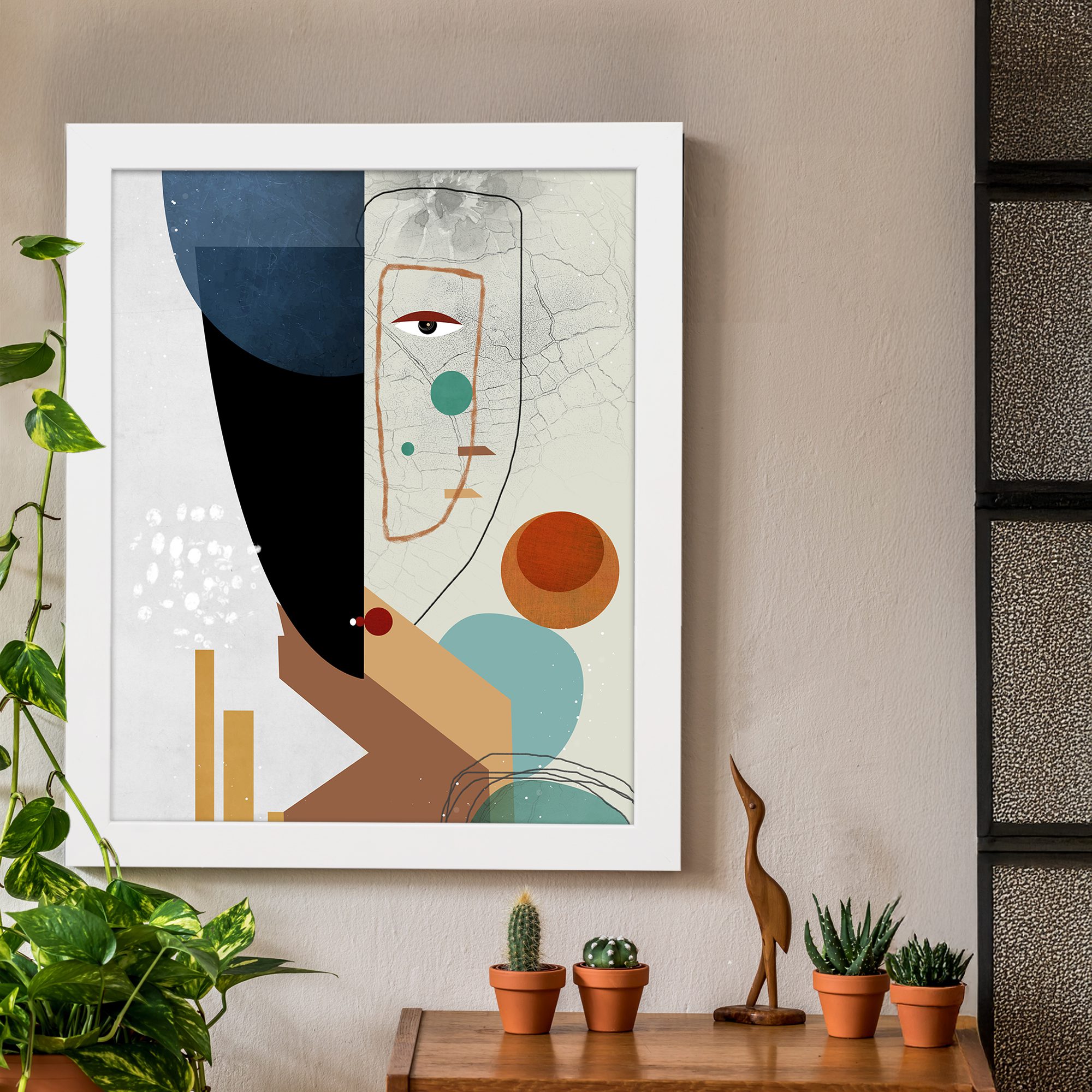 Bring a clean and modern touch to your space with our Contemporary Wall Art. This design features a minimal abstract face combined with geometric shapes and soft textures. The composition is simple yet artistic, creating a calm and balanced look.