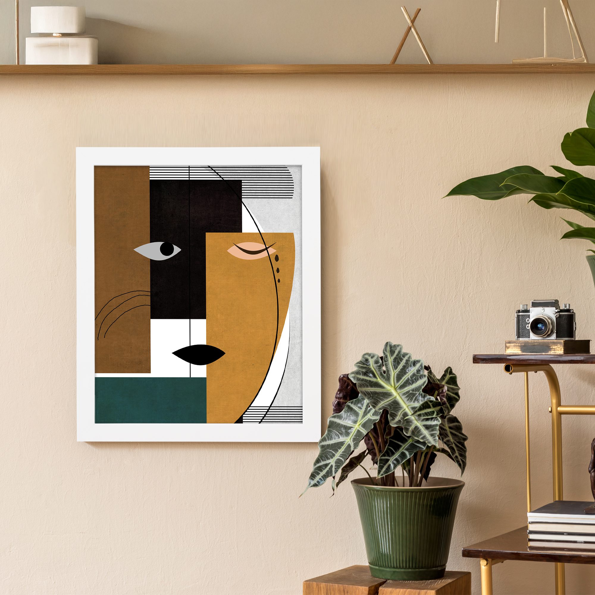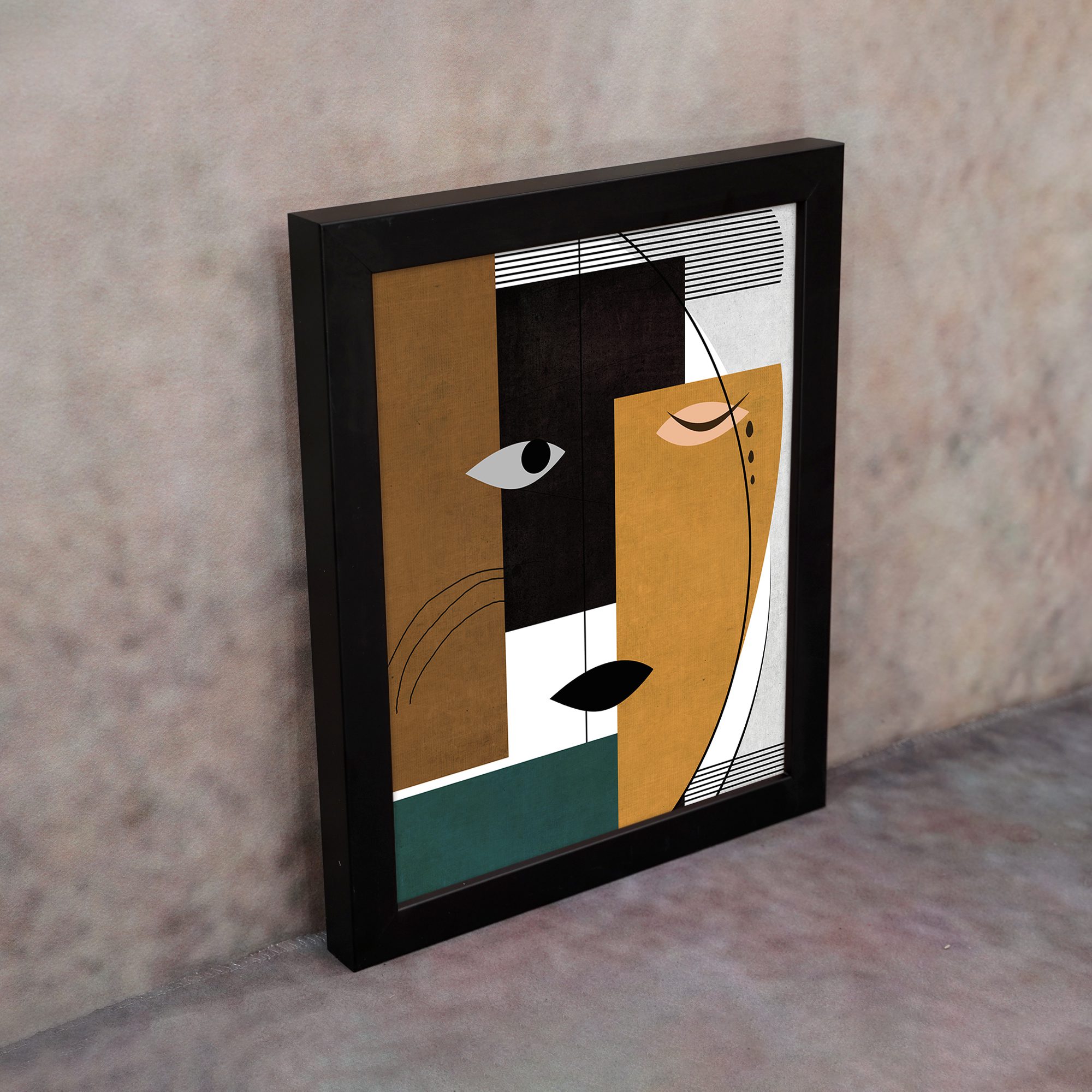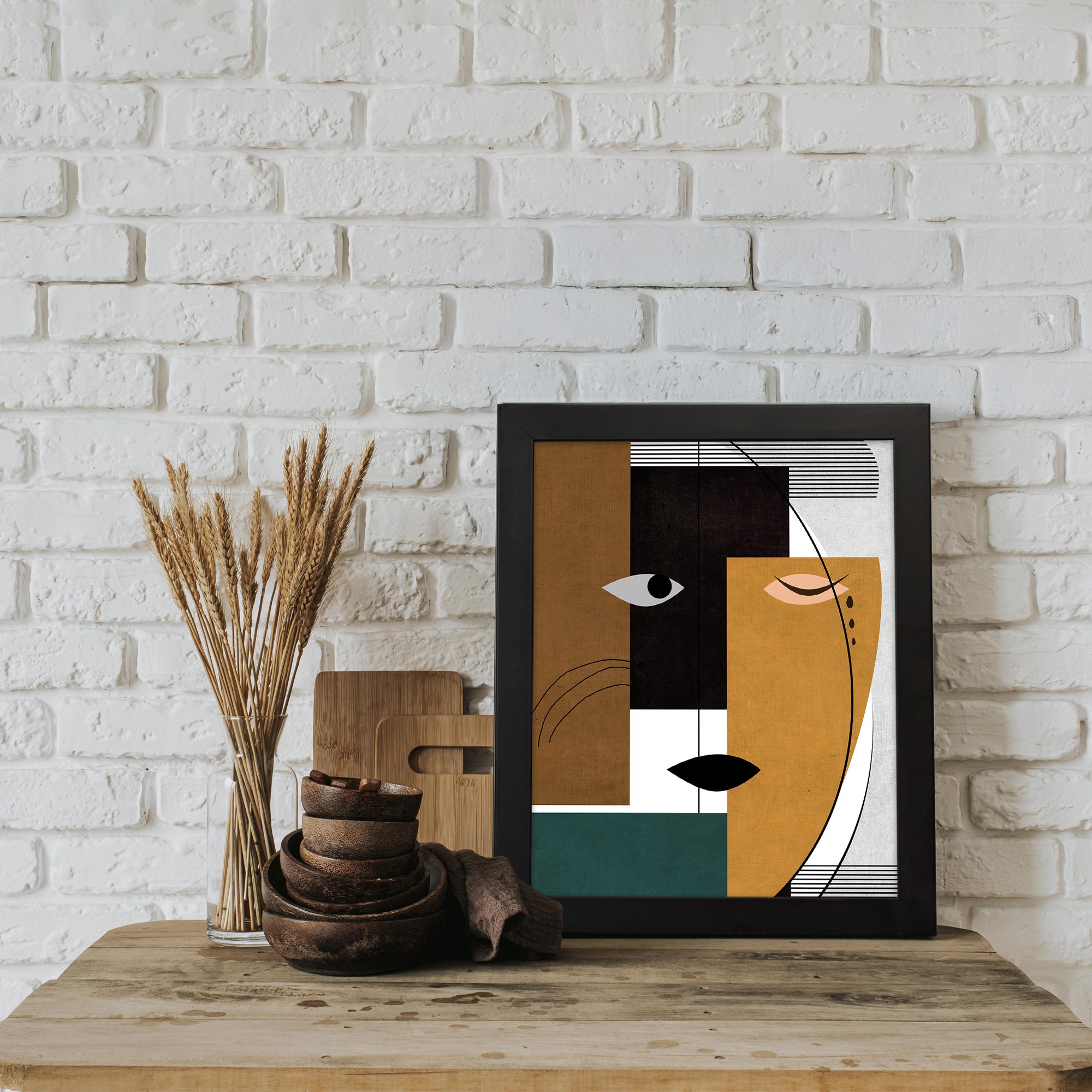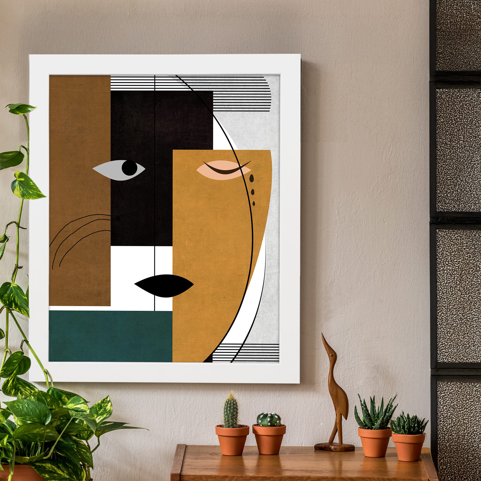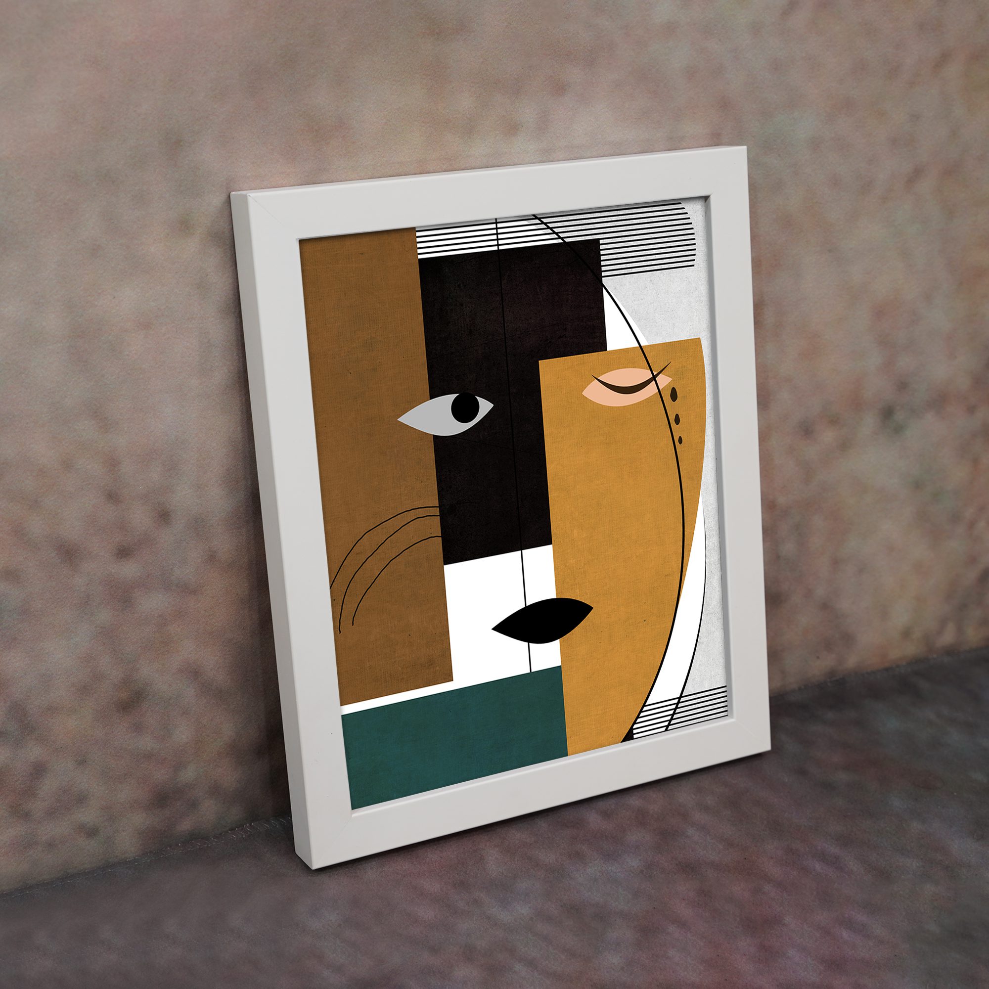 Bring a bold and modern touch to your space with our Contemporary Wall Art. This design features a split abstract face created with geometric blocks and clean line elements. The composition is structured and balanced, giving it a refined artistic look.