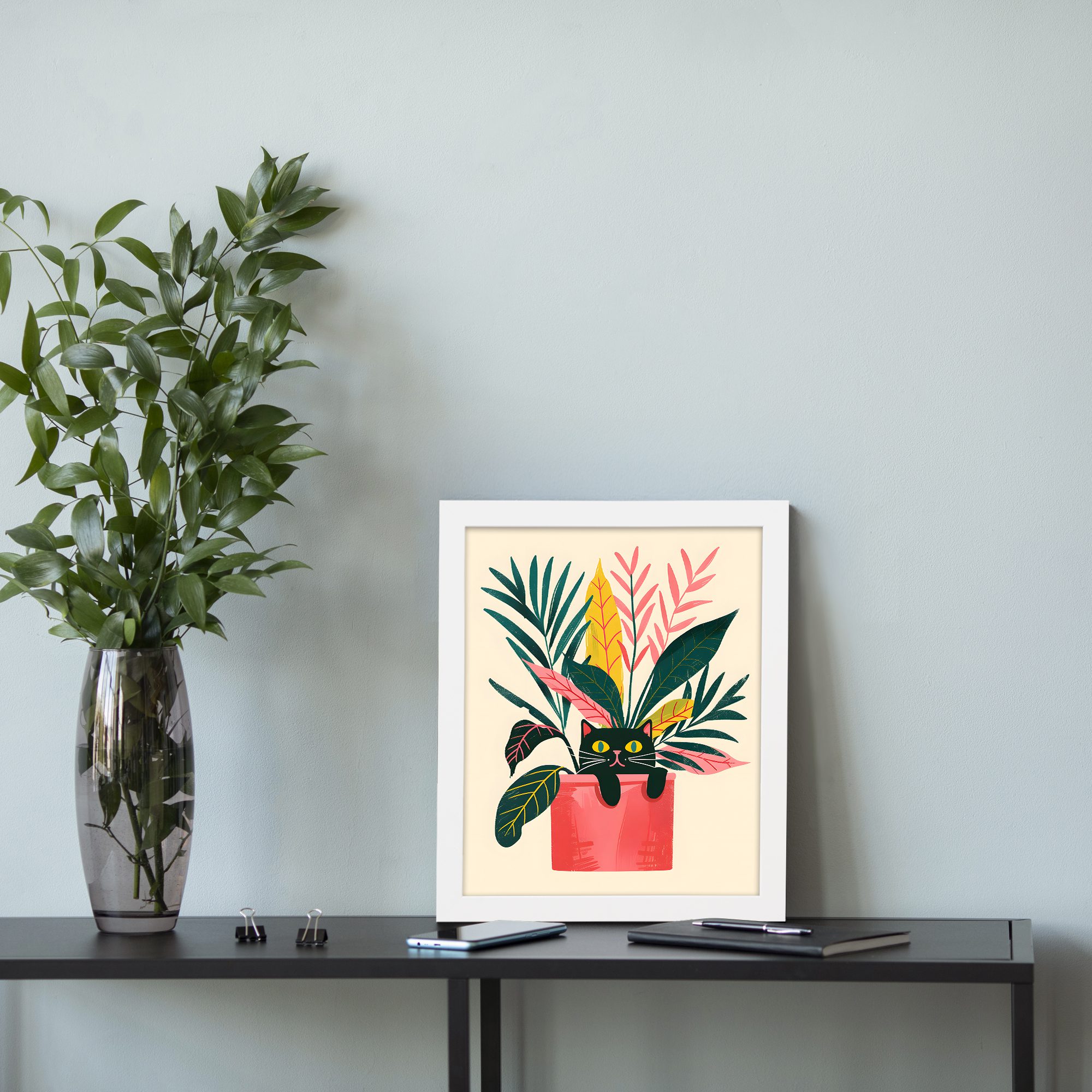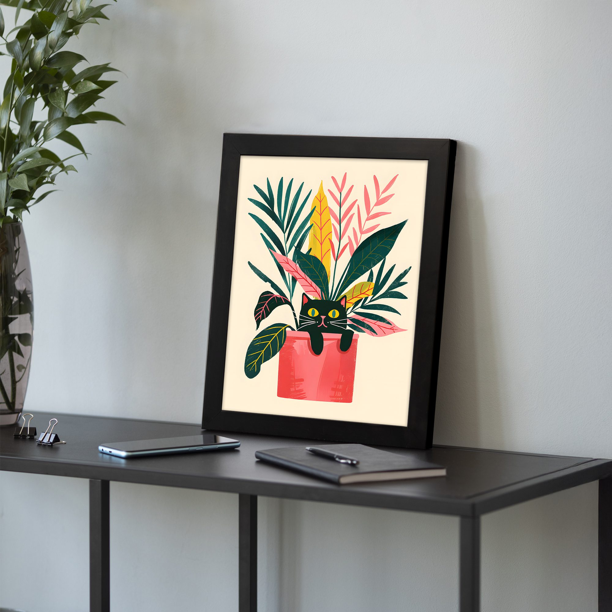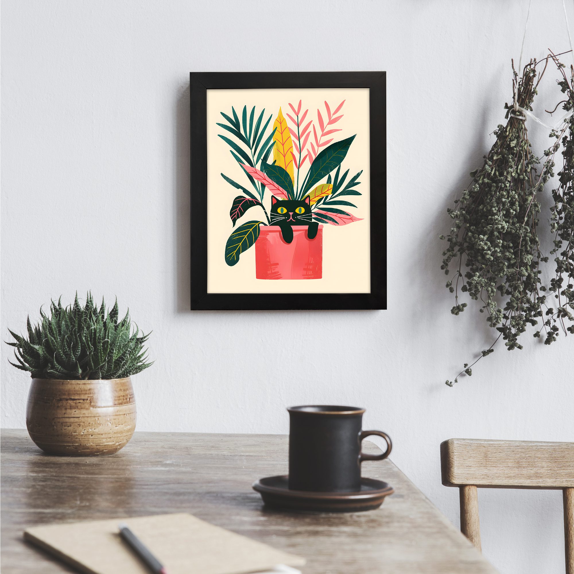 Add a fun and lively touch to your walls with this Kotart modern framed wall art. This artwork features a cute black cat sitting inside a bright pot filled with colorful leaves. The playful design combined with botanical elements creates a perfect mix of charm and style.