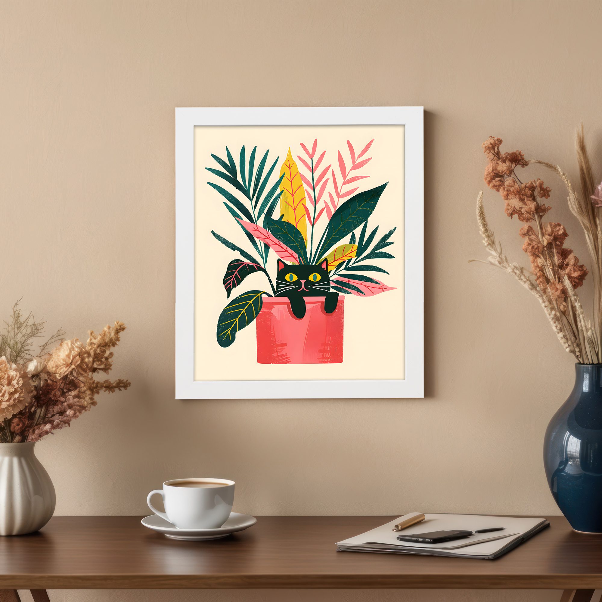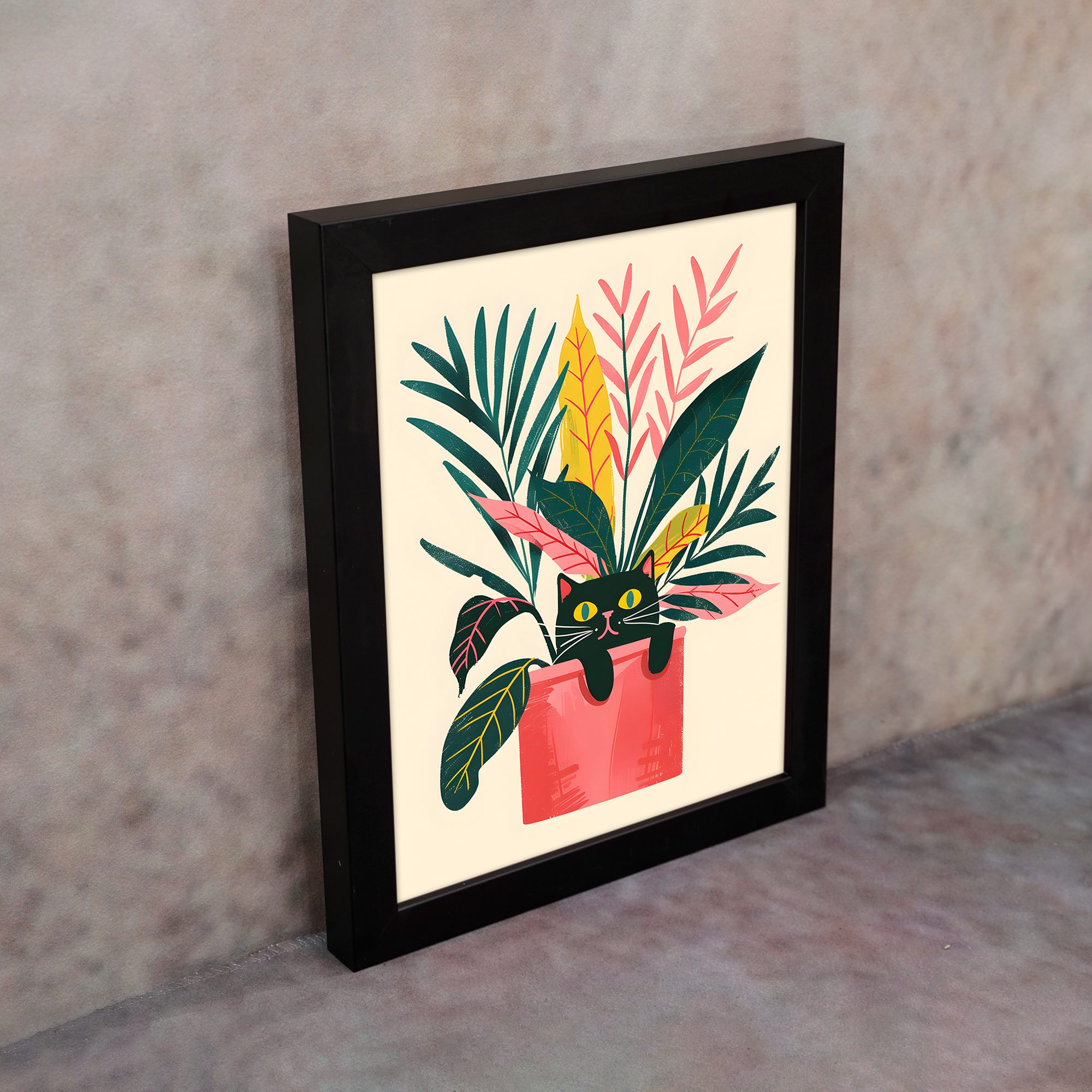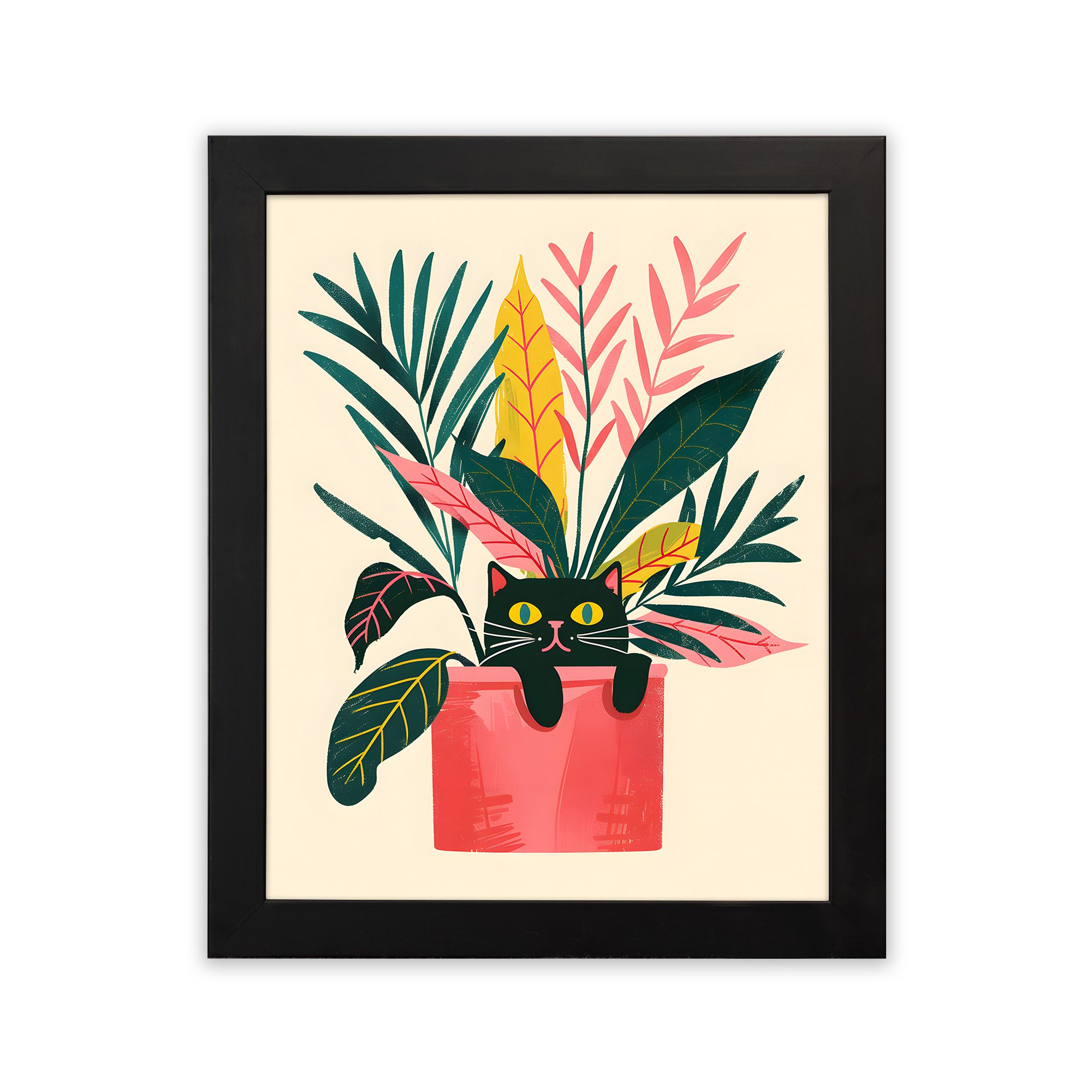 Add a fun and lively touch to your walls with this Kotart modern framed wall art. This artwork features a cute black cat sitting inside a bright pot filled with colorful leaves. The playful design combined with botanical elements creates a perfect mix of charm and style.