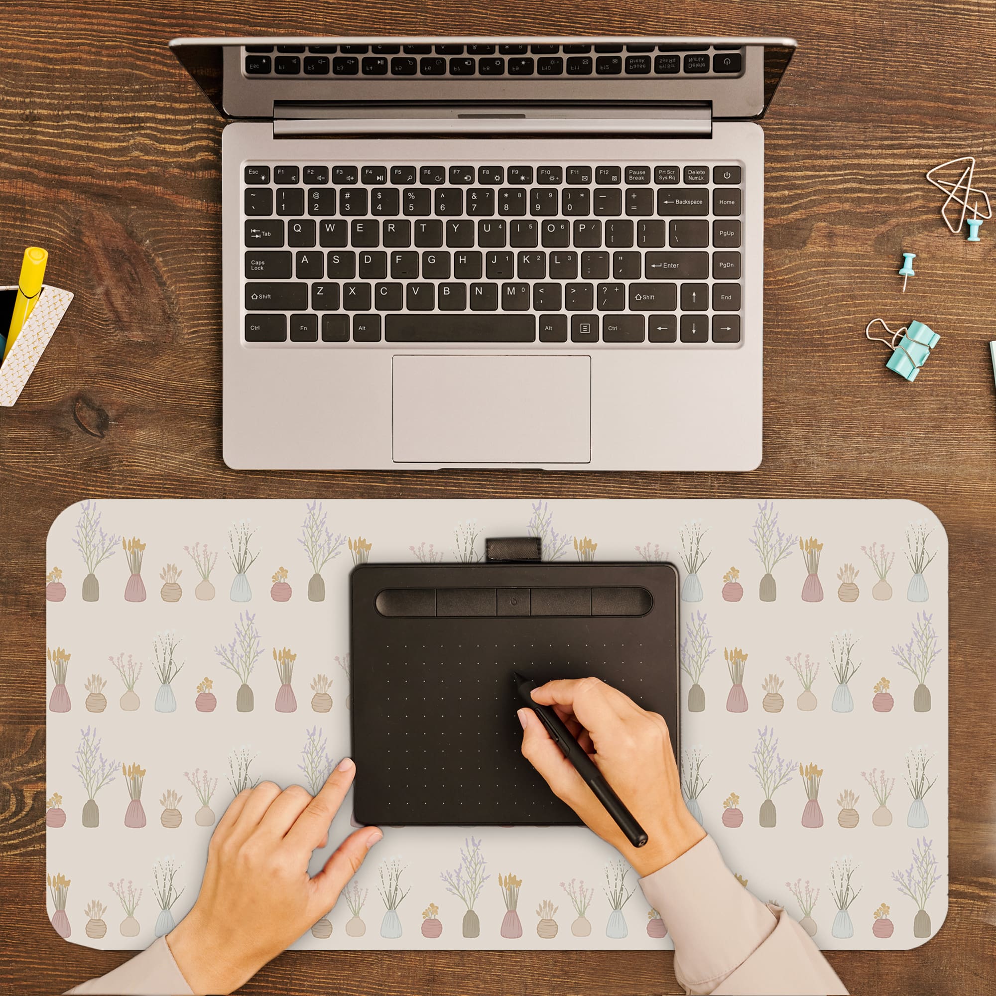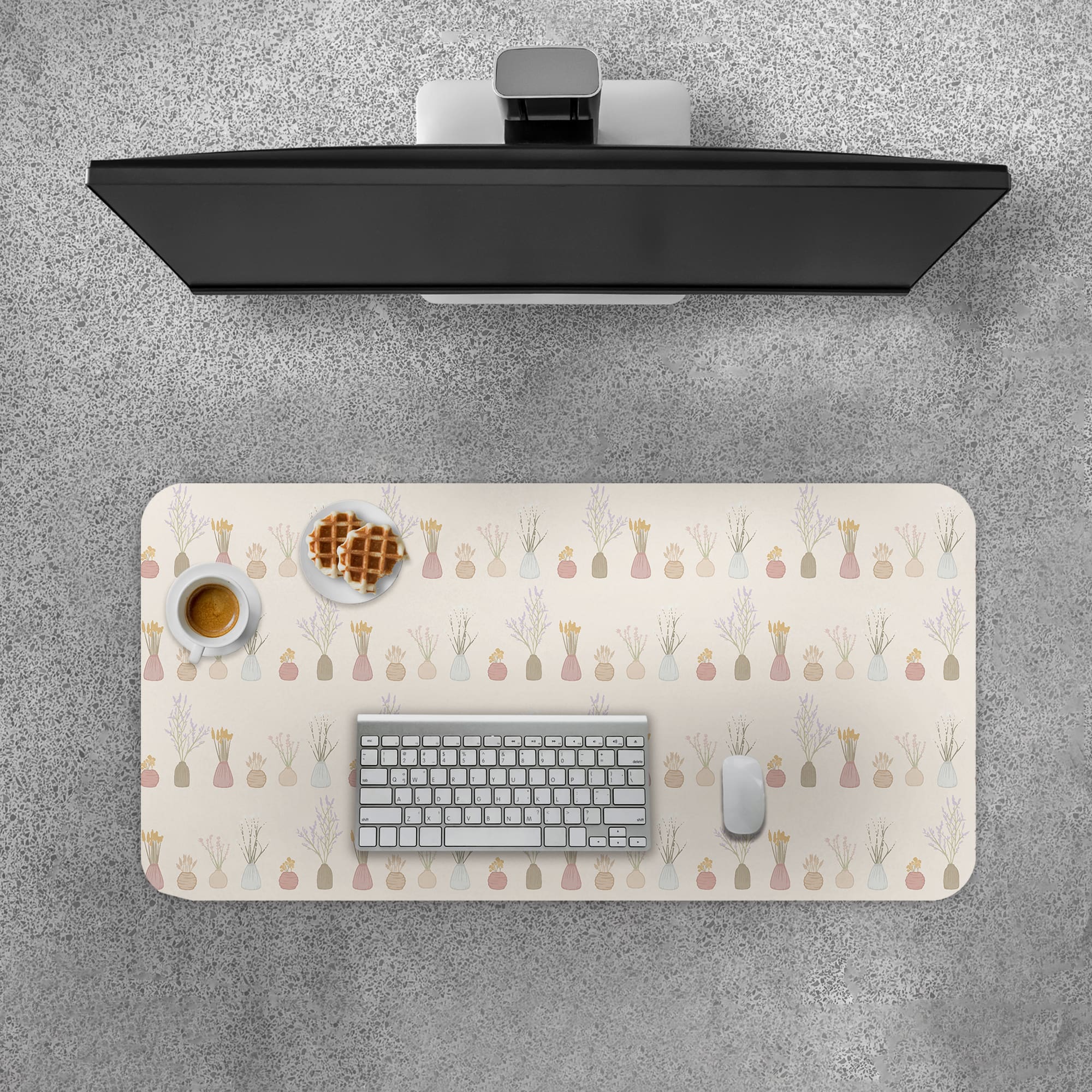 Infidu Cute Vase Floral Pattern Desk Pad Neutral Aesthetic Design – mpd635