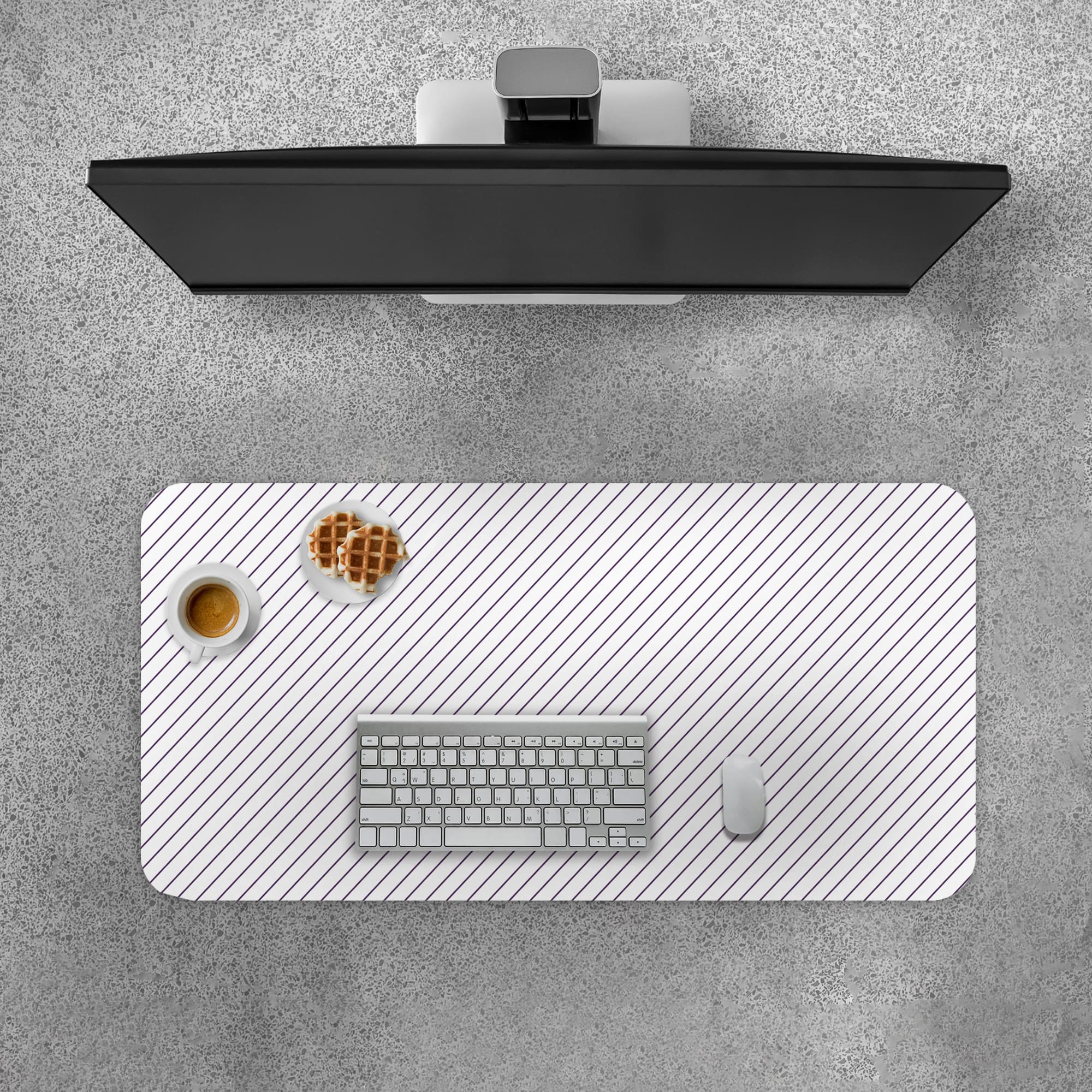 Create a clean and modern workspace with this Diagonal Stripe Desk Mat. The design features fine angled lines forming a subtle striped pattern across a light neutral background, giving a sleek and minimal aesthetic.