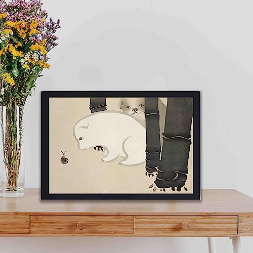 Discover the whimsical charm of this vintage art print featuring a playful dog and a curious snail amidst the vibrant flowers of Momoyogusa. This captivating piece, originally created in the 1800s, showcases the delicate beauty and playful spirit of Japanese art.