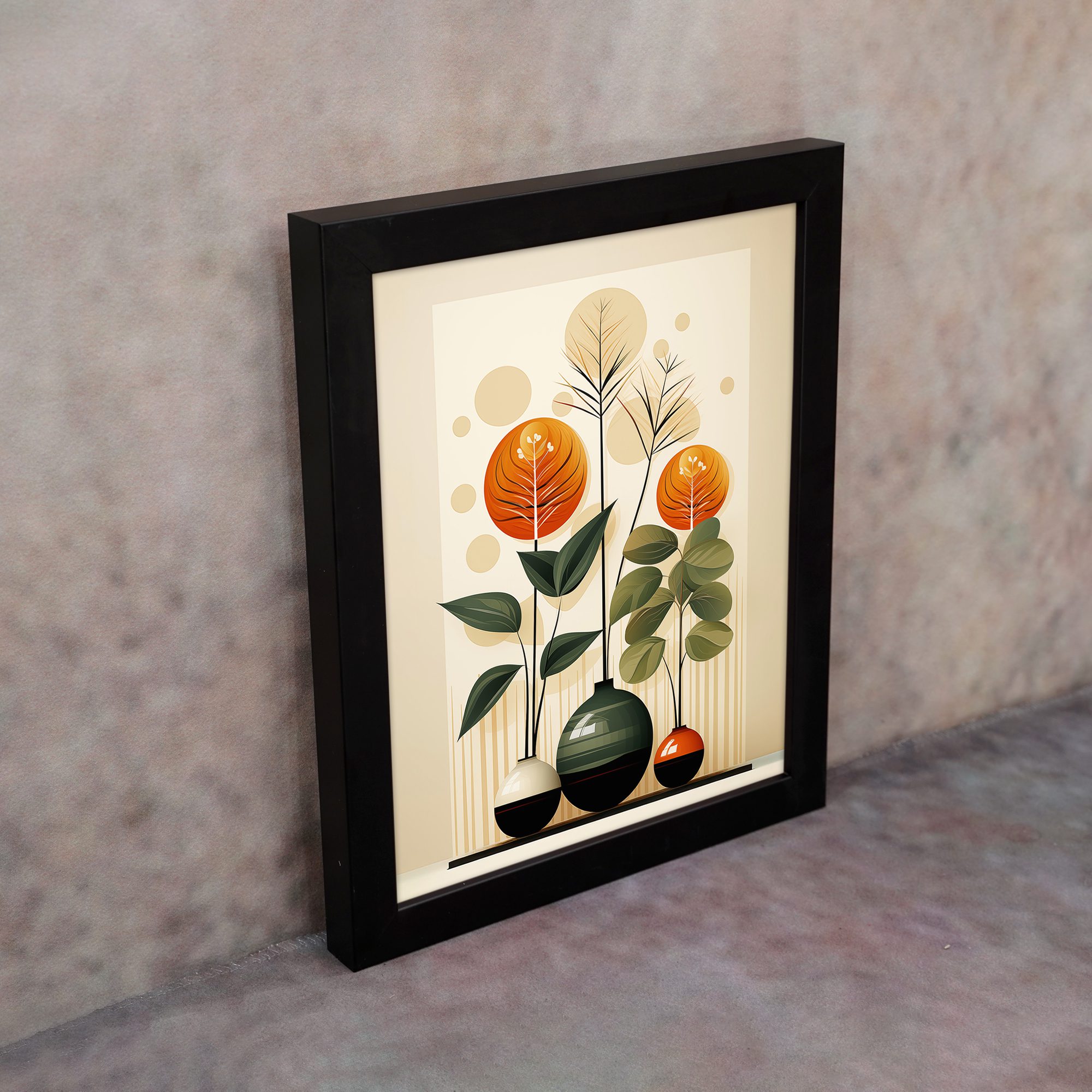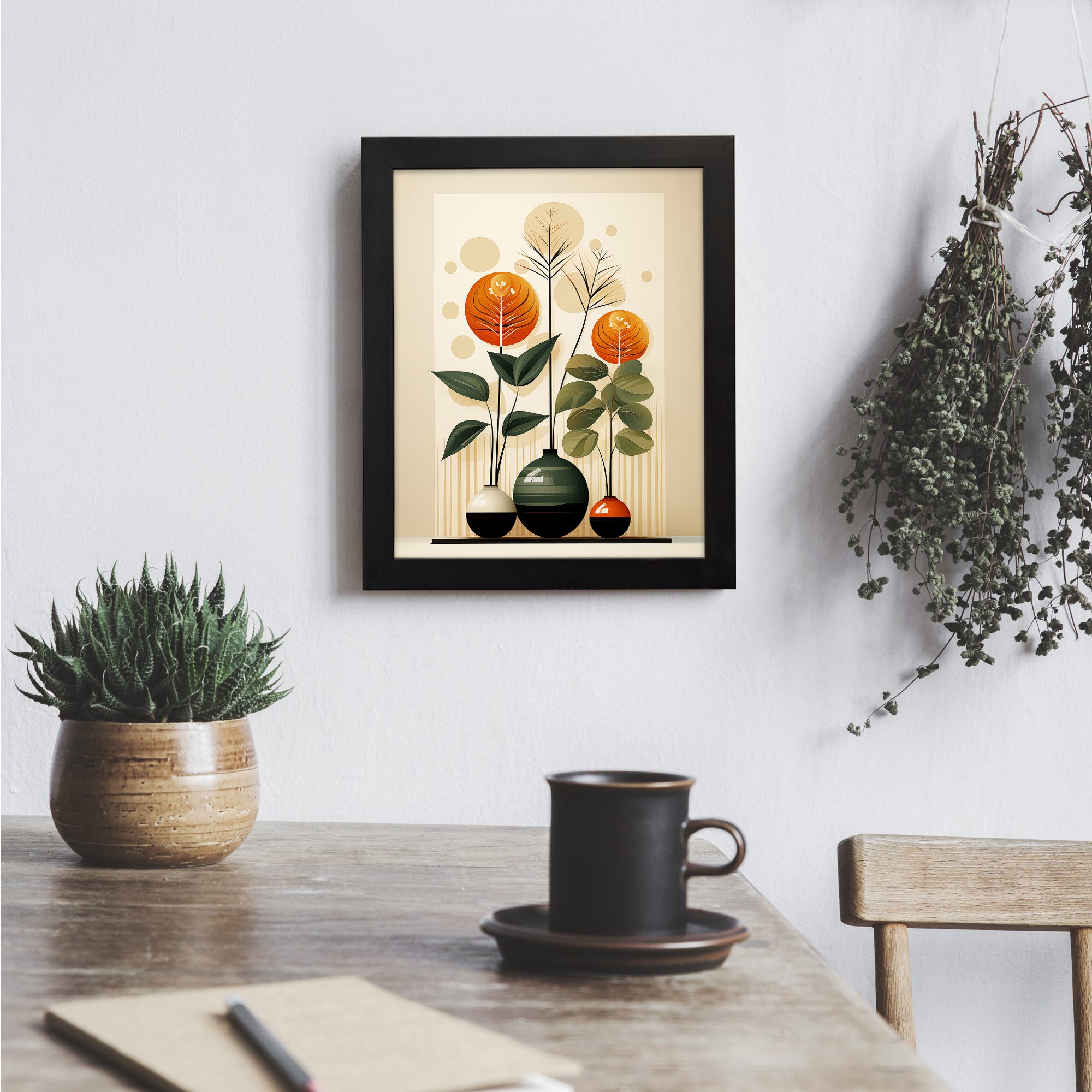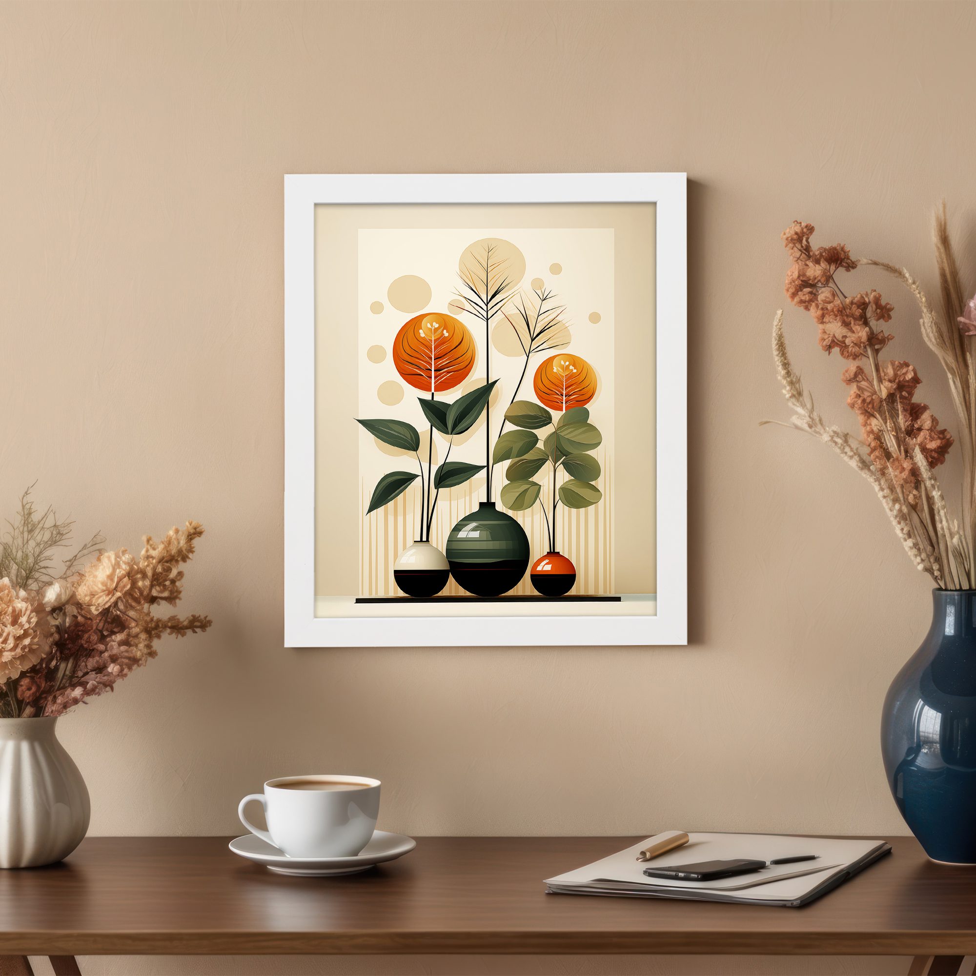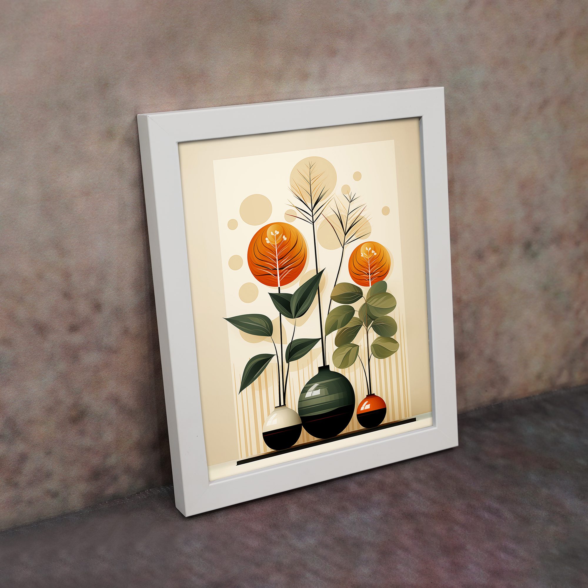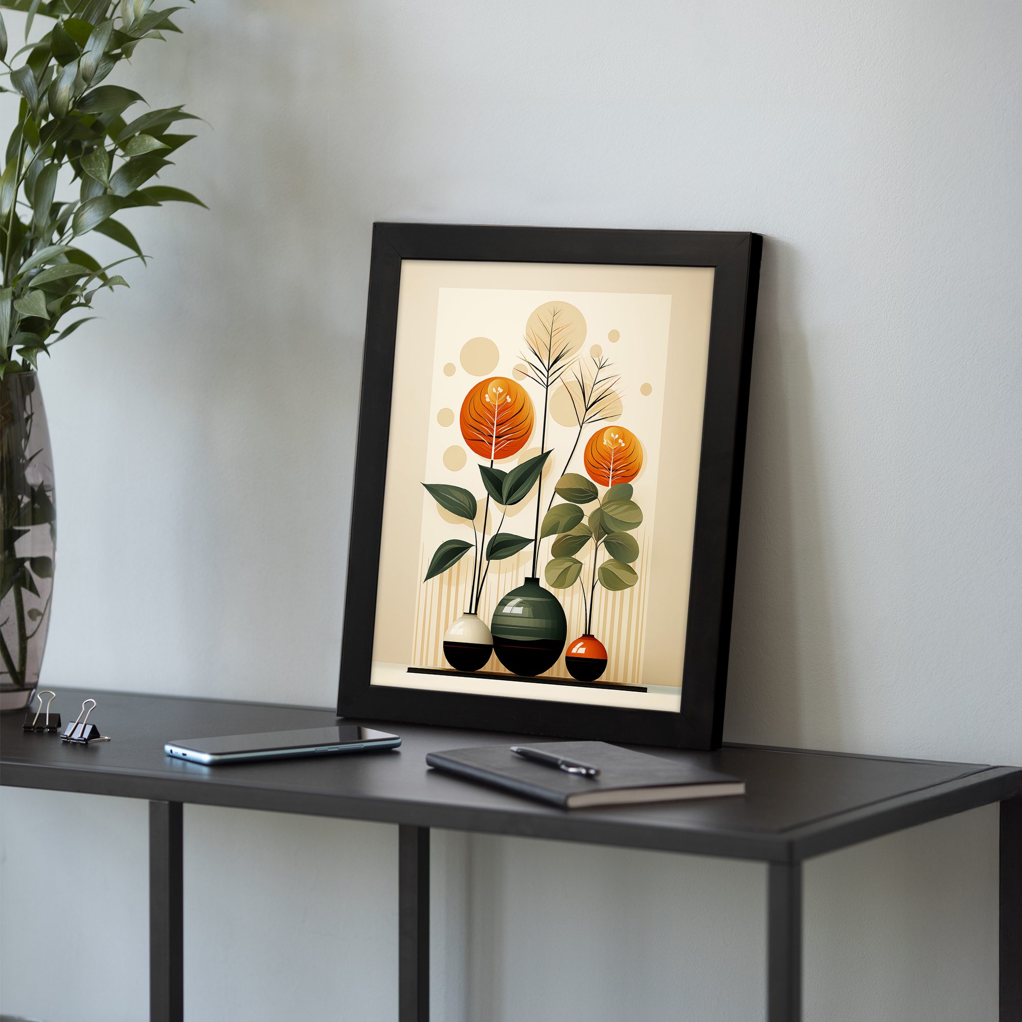 Enhance your space with this elegant Kotart aesthetic modern wall art. This artwork features stylish floral stems arranged in decorative vases with soft earthy tones and circular accents. The clean design and balanced composition create a calm and modern atmosphere.