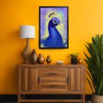 Using special floating frames, this artwork adds an extra touch of elegance to any space, creating a focal point that exudes the splendor of a peacock in a simple yet captivating manner.