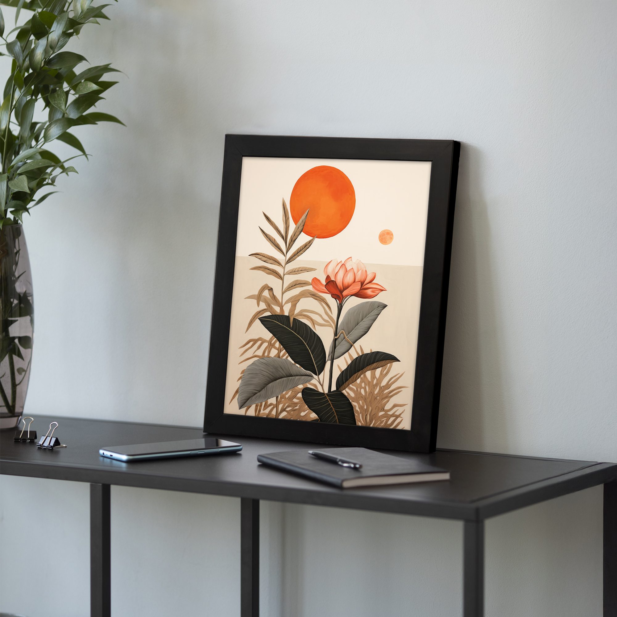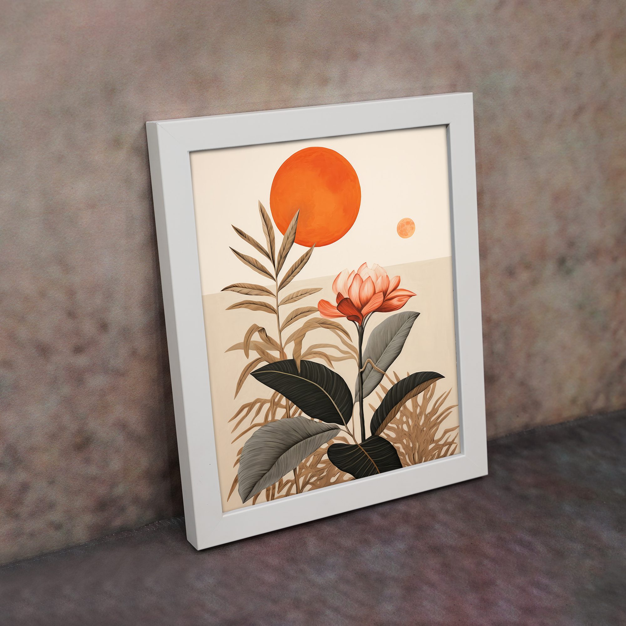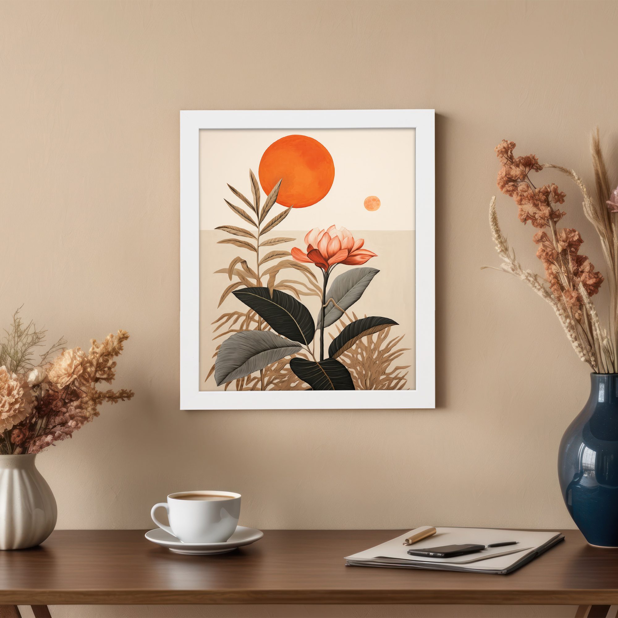 Add a soft and natural touch to your space with this Kotart aesthetic modern wall art. This artwork features a delicate flower with leafy stems placed under a warm glowing sun. The combination of earthy tones and gentle design creates a calm and elegant look.