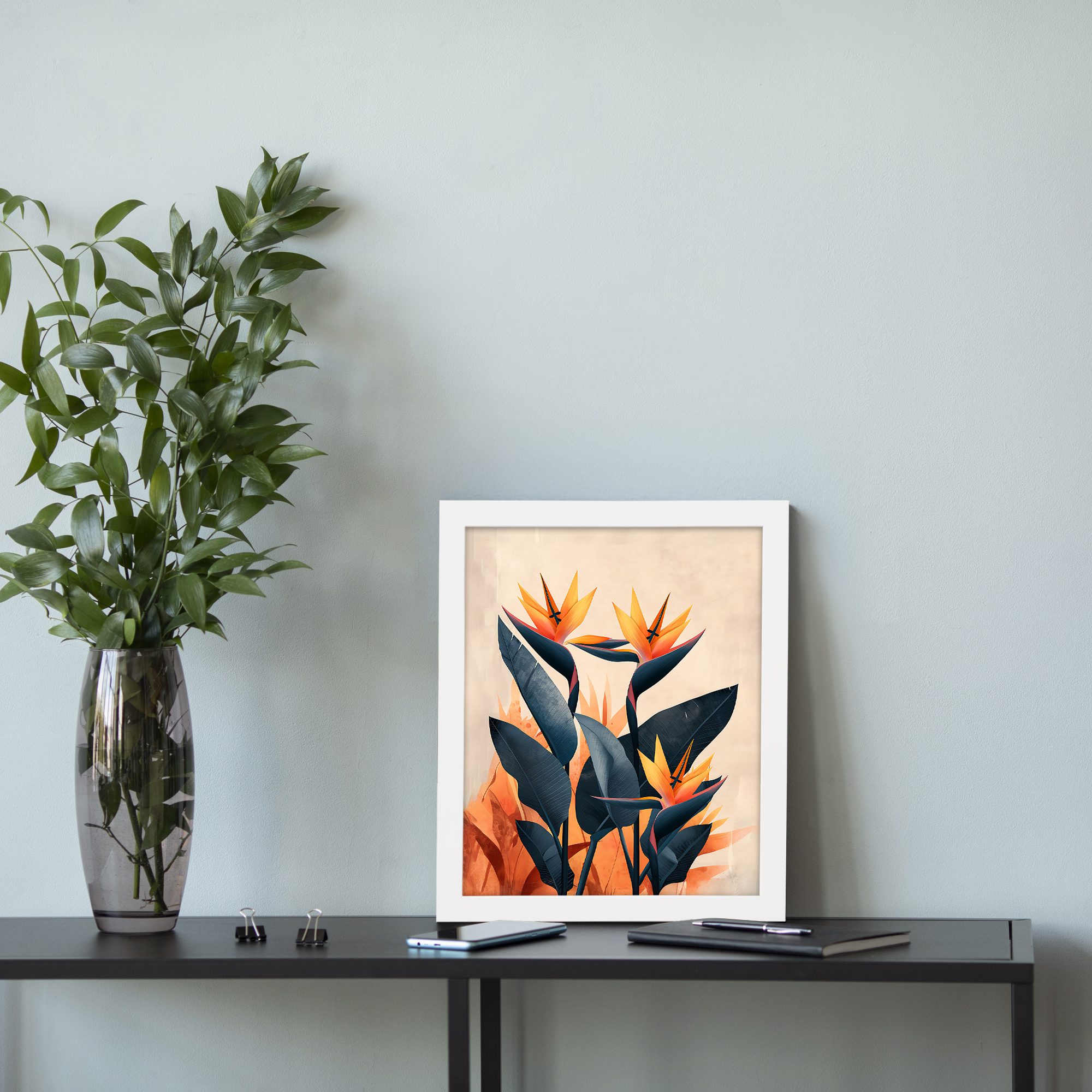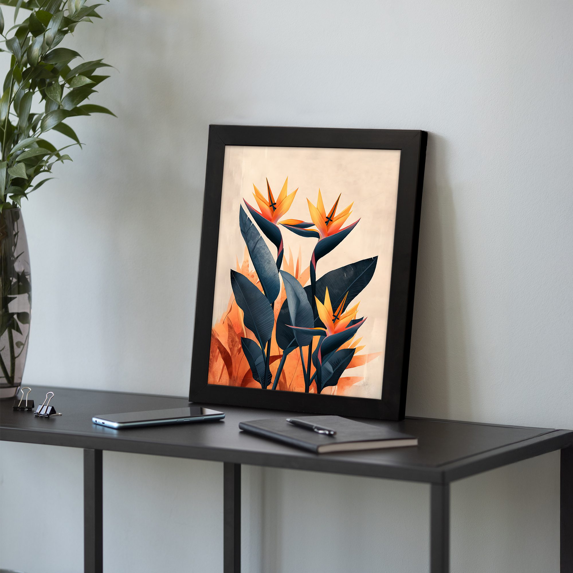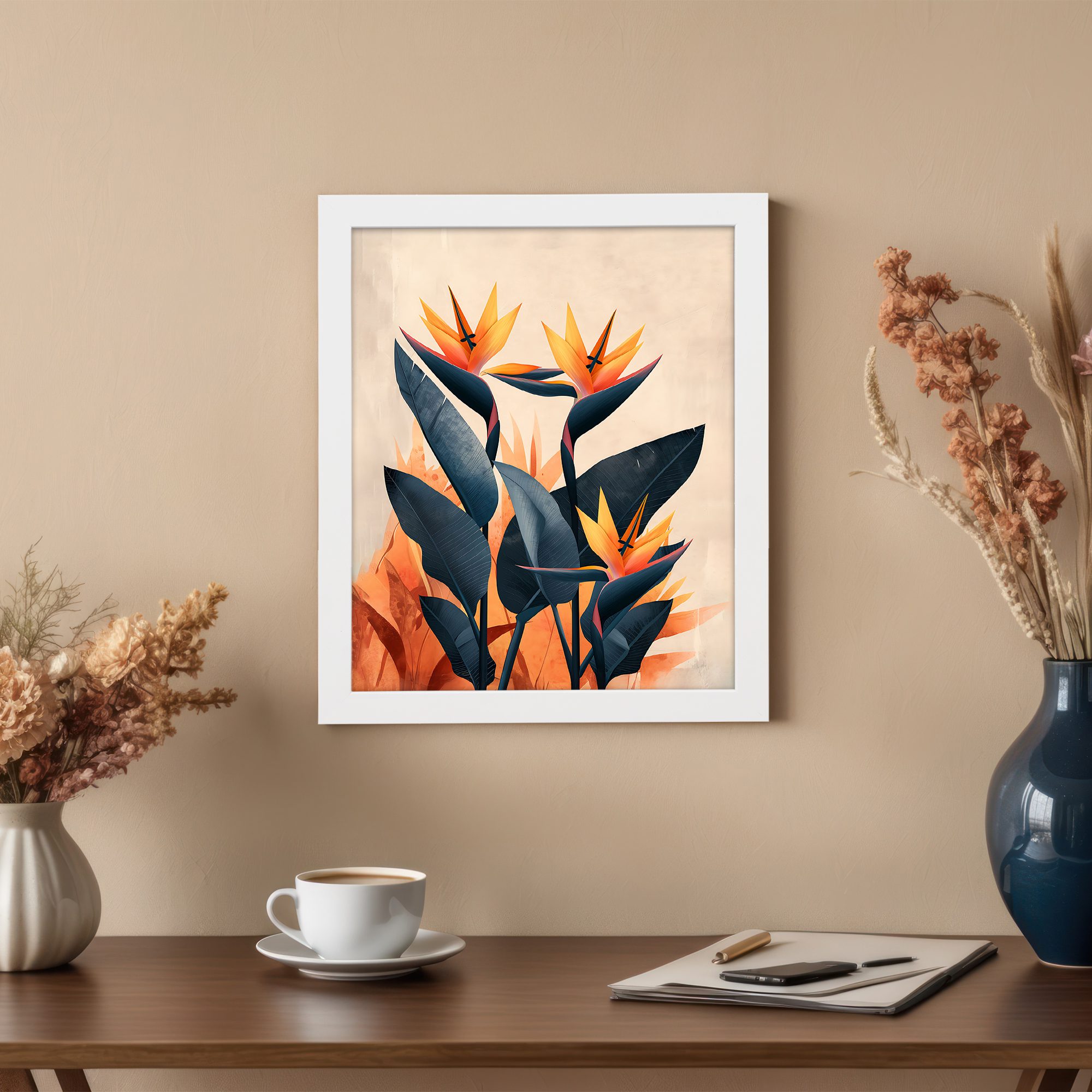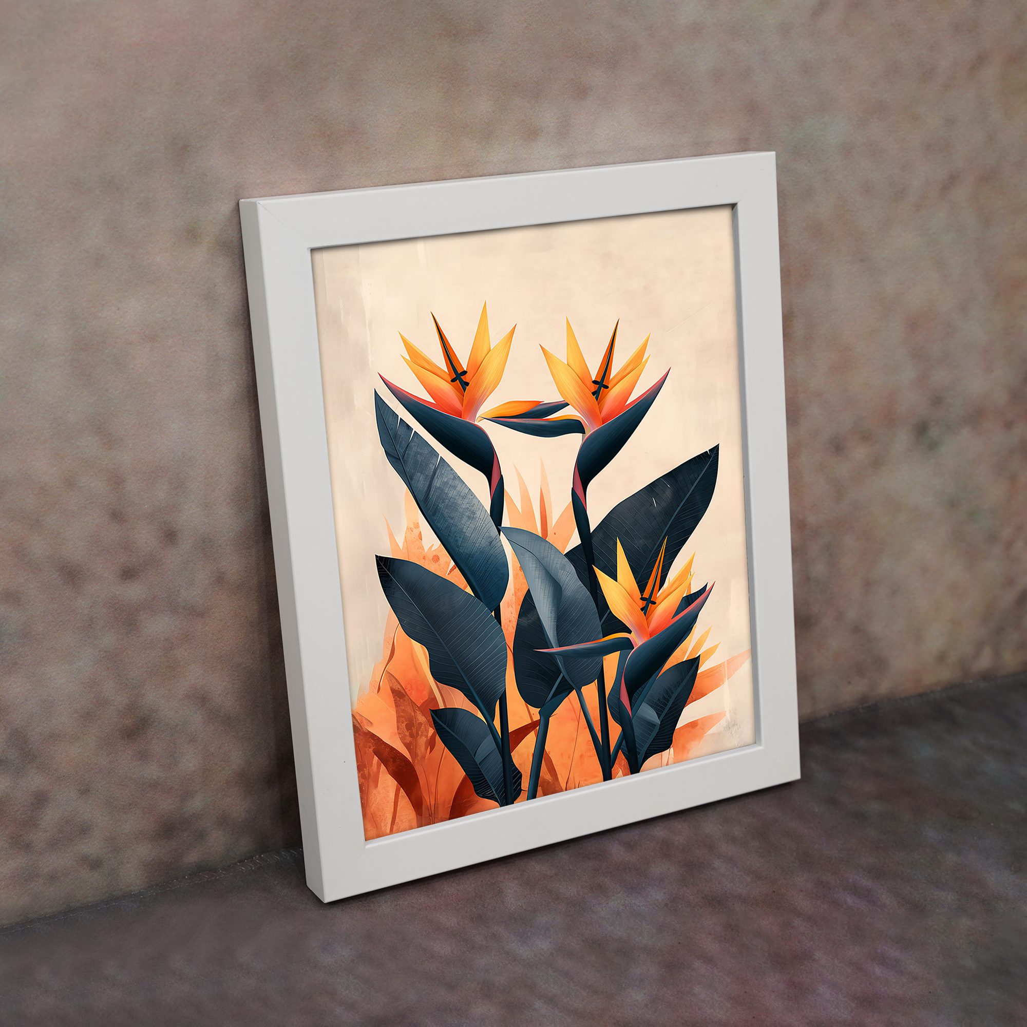 Give your walls a vibrant and stylish upgrade with this Kotart aesthetic modern wall art. This artwork features tropical flowers with bold shapes and rich orange and deep blue tones. The design brings a lively and artistic feel that instantly stands out.