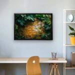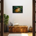 Our artworks are given a unique touch through a process called ‘floating canvas.’ This means the canvas, which is like a special kind of material, is stretched and fixed onto a frame. It’s not just hanging flat on the wall or stuck in a traditional frame; it looks like it’s floating in the air, giving your space a modern and stylish feel. This method adds a cool visual effect and makes the art stand out because it’s not just flat against the wall. The canvas is carefully stretched and fixed by hand onto the frame, creating a neat and sophisticated look that adds character to your decor. It’s a simple yet artistic way to make your walls look fantastic!