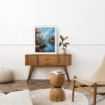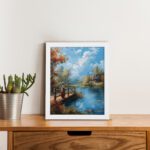 Inspired by impressionist painting art, the design uses smooth brush strokes and soft color blending to capture light and natural beauty. The mix of blue water, green trees, and warm accents creates a balanced and relaxing atmosphere.