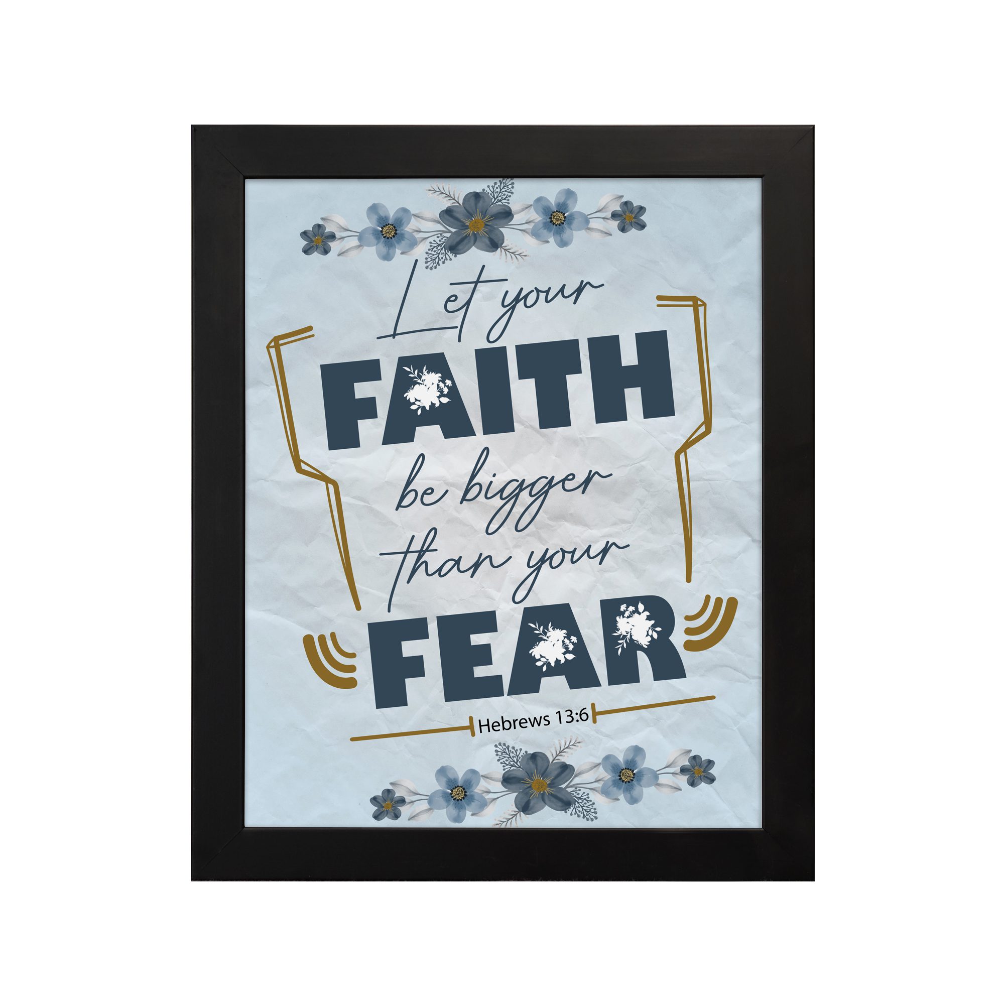 Infidu Let Your Faith Be Bigger Than Your Fear Hebrews 13.6 Christian Wall Art for Christians This gorgeous wall art for Christians highlights Hebrews 13:6, which is a powerful verse that exhorts you to let your faith conquer your fear. The remainder of the text is written in black, making the words “Faith” and “Fear” stand out in bold, dark blue type. This makes the text easy to read and powerful.