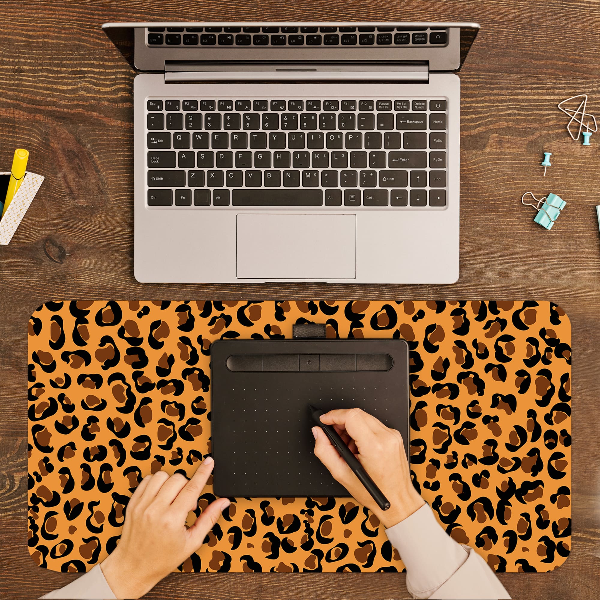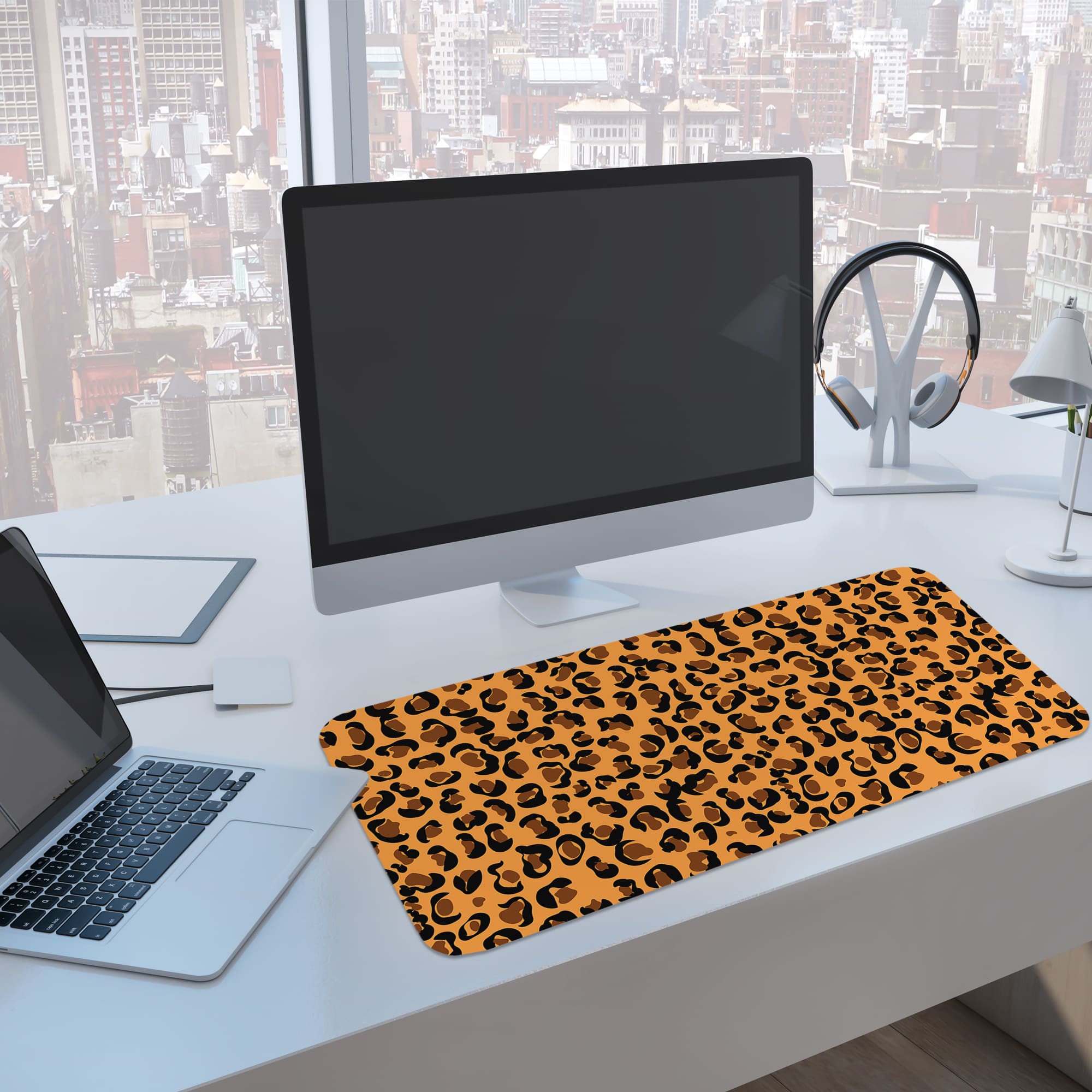 Add a playful and trendy touch to your workspace with this Mini Leopard Print Desk Mat. The design features small, scattered leopard spots on a warm brown background, creating a lively and stylish animal print look.