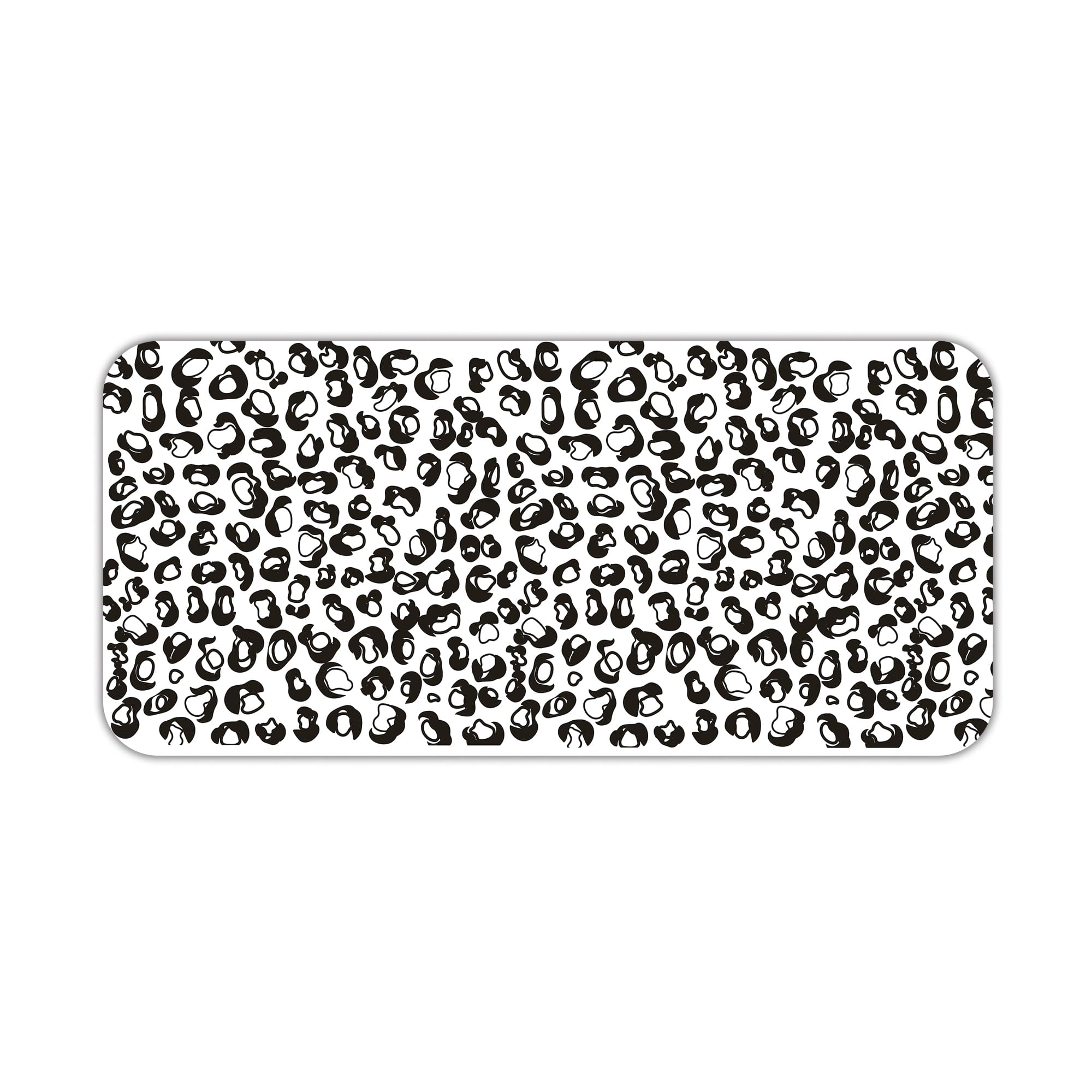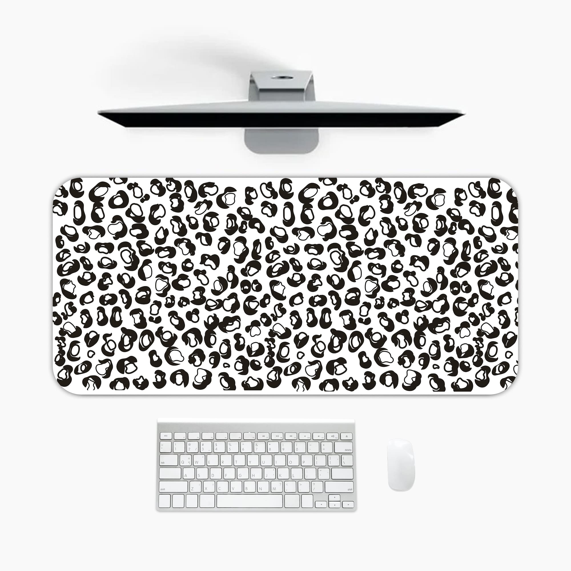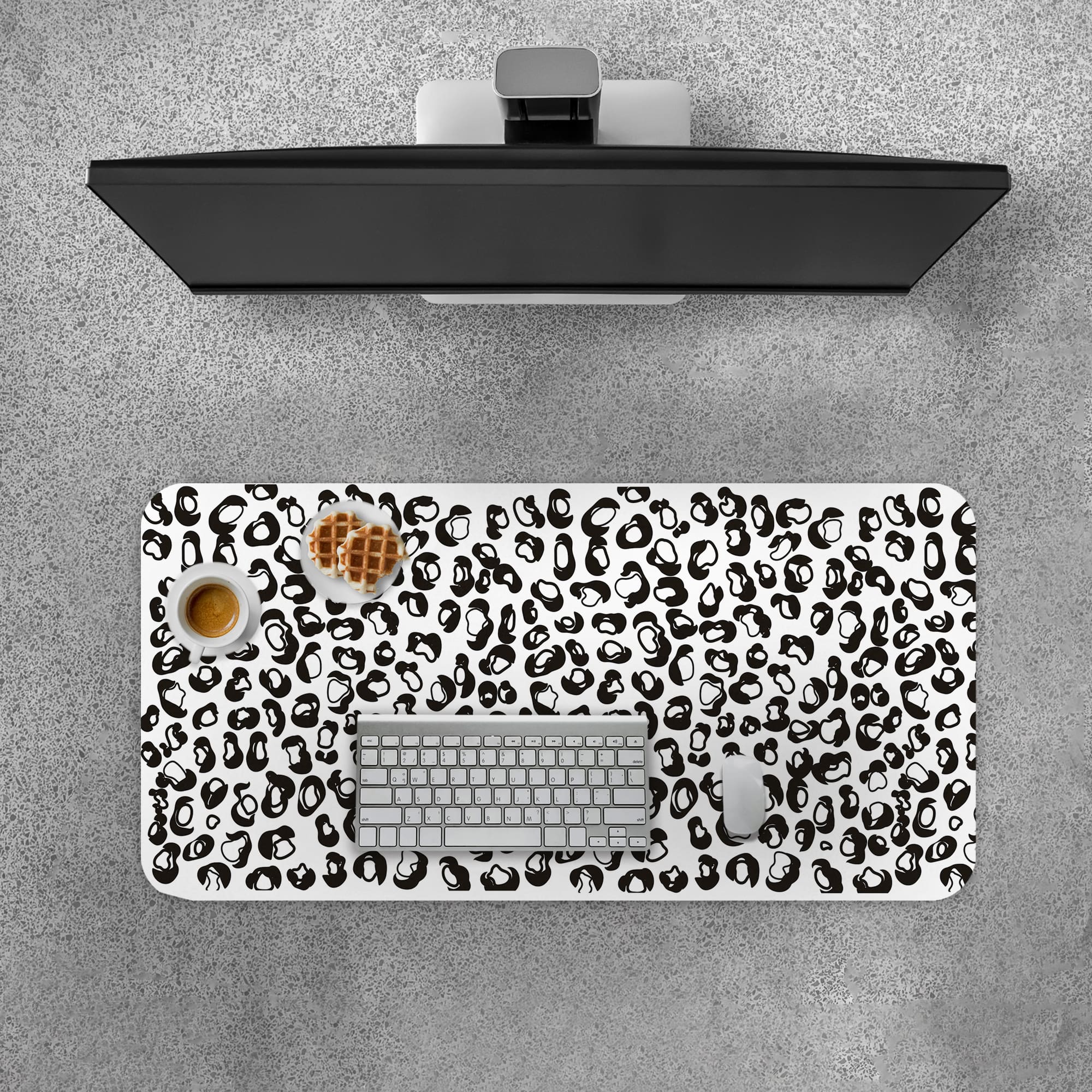 Add a subtle yet stylish edge to your workspace with this Mini Leopard Print Desk Pad. The design features small scattered leopard spots in a clean black and white palette, creating a balanced and modern animal print look.
