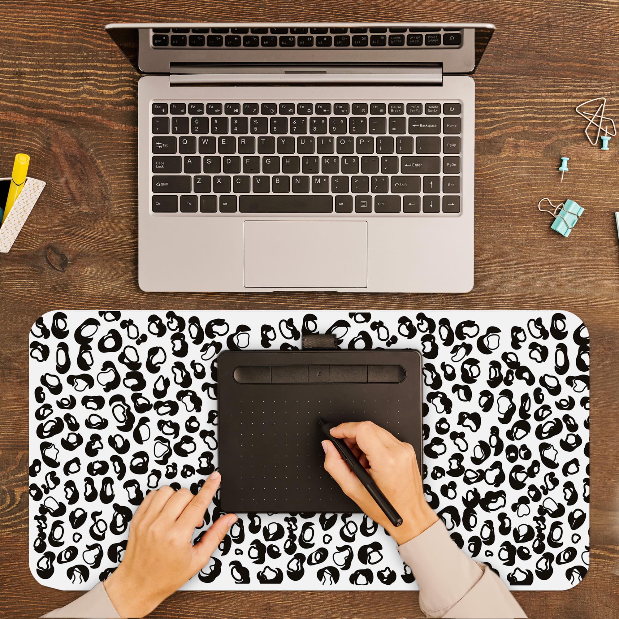 Infidu Mini Leopard Print Desk Pad Black White Pattern Surface – mpd684