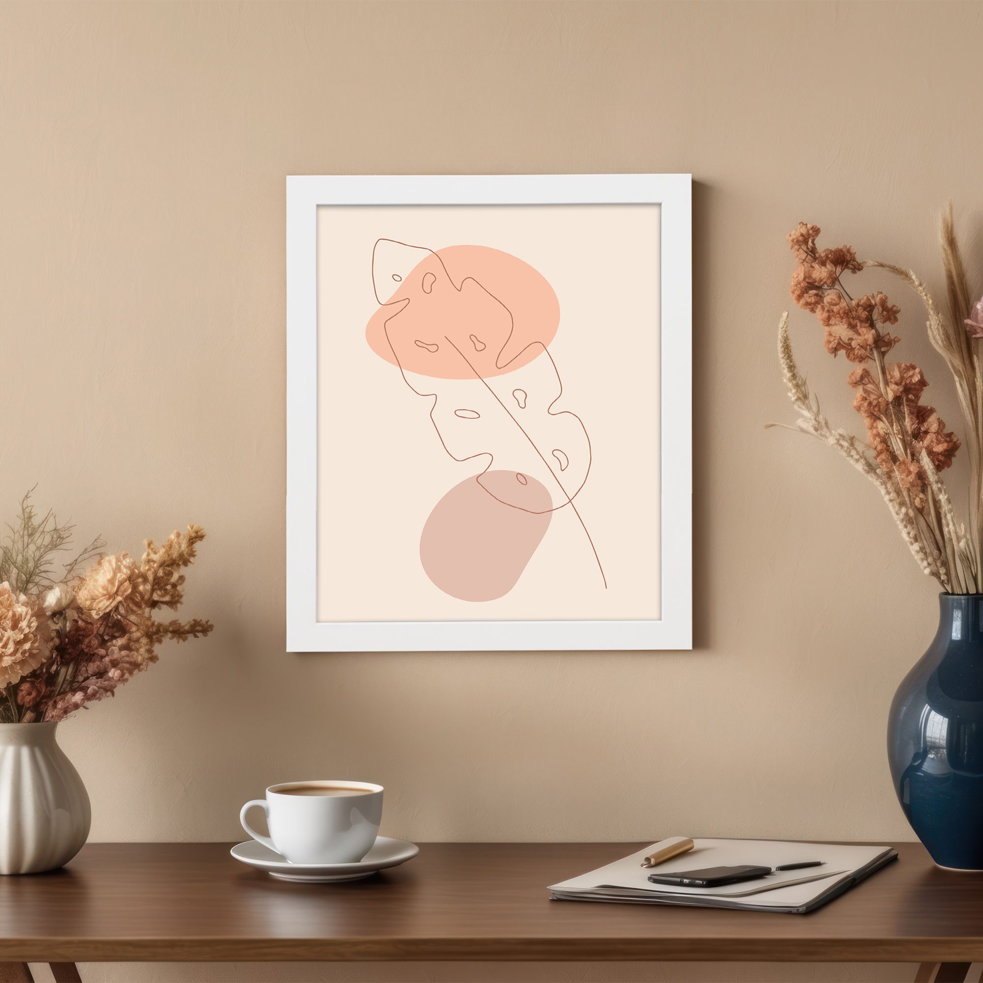 The use of warm beige and soft peach tones adds a gentle and refined feel. The flowing lines and open space give the artwork a clean and contemporary aesthetic, perfect for modern interiors.