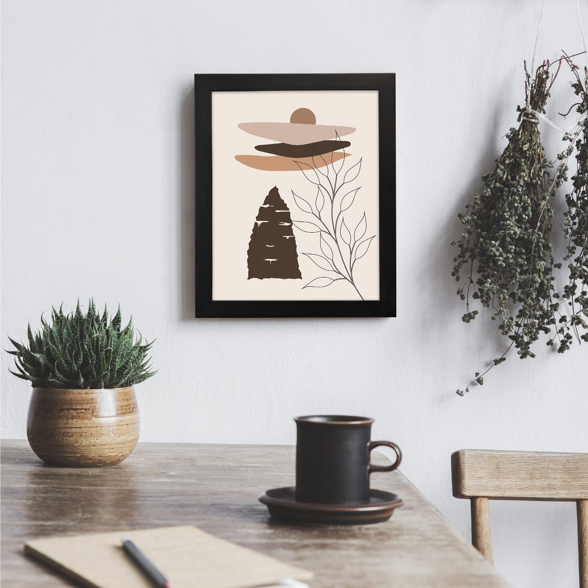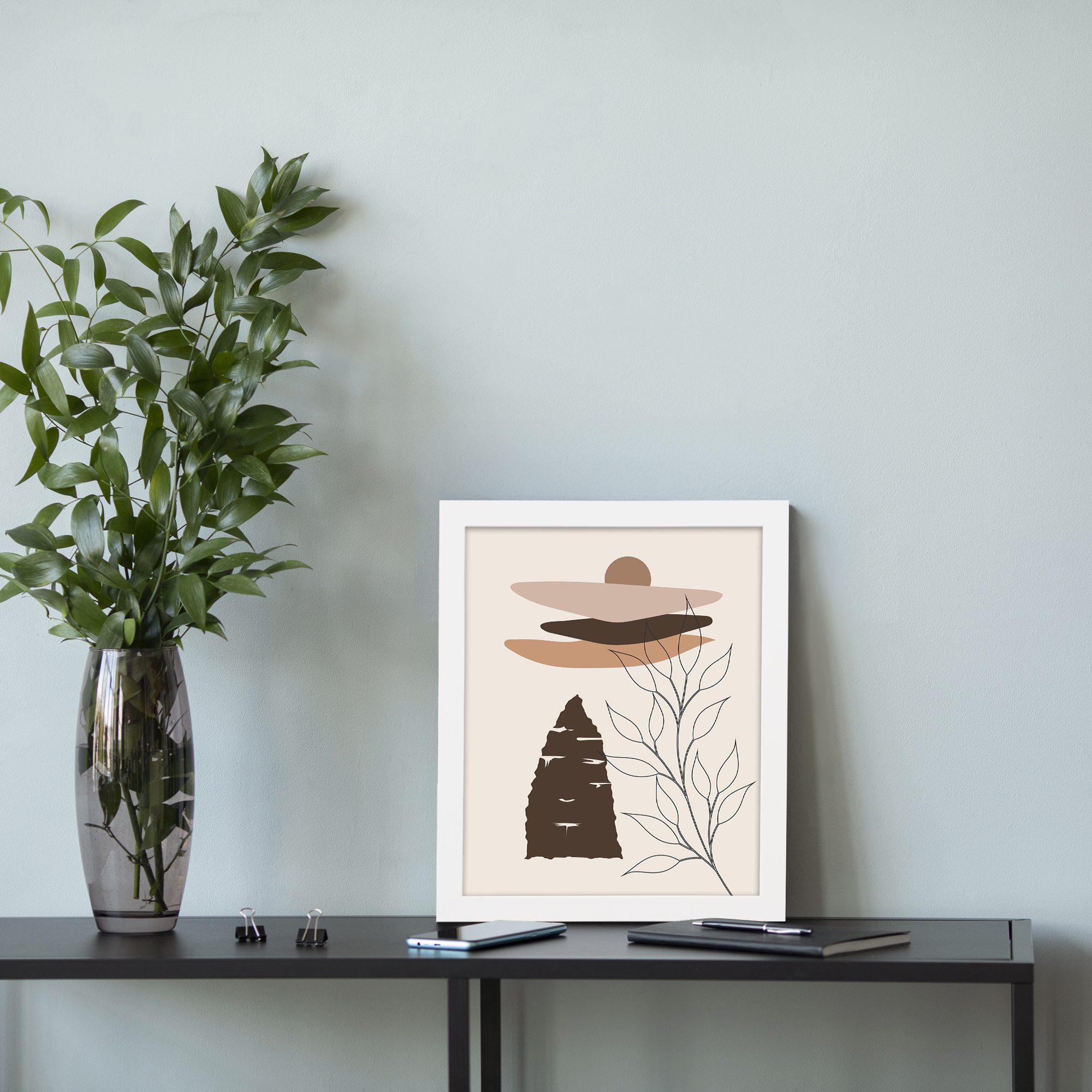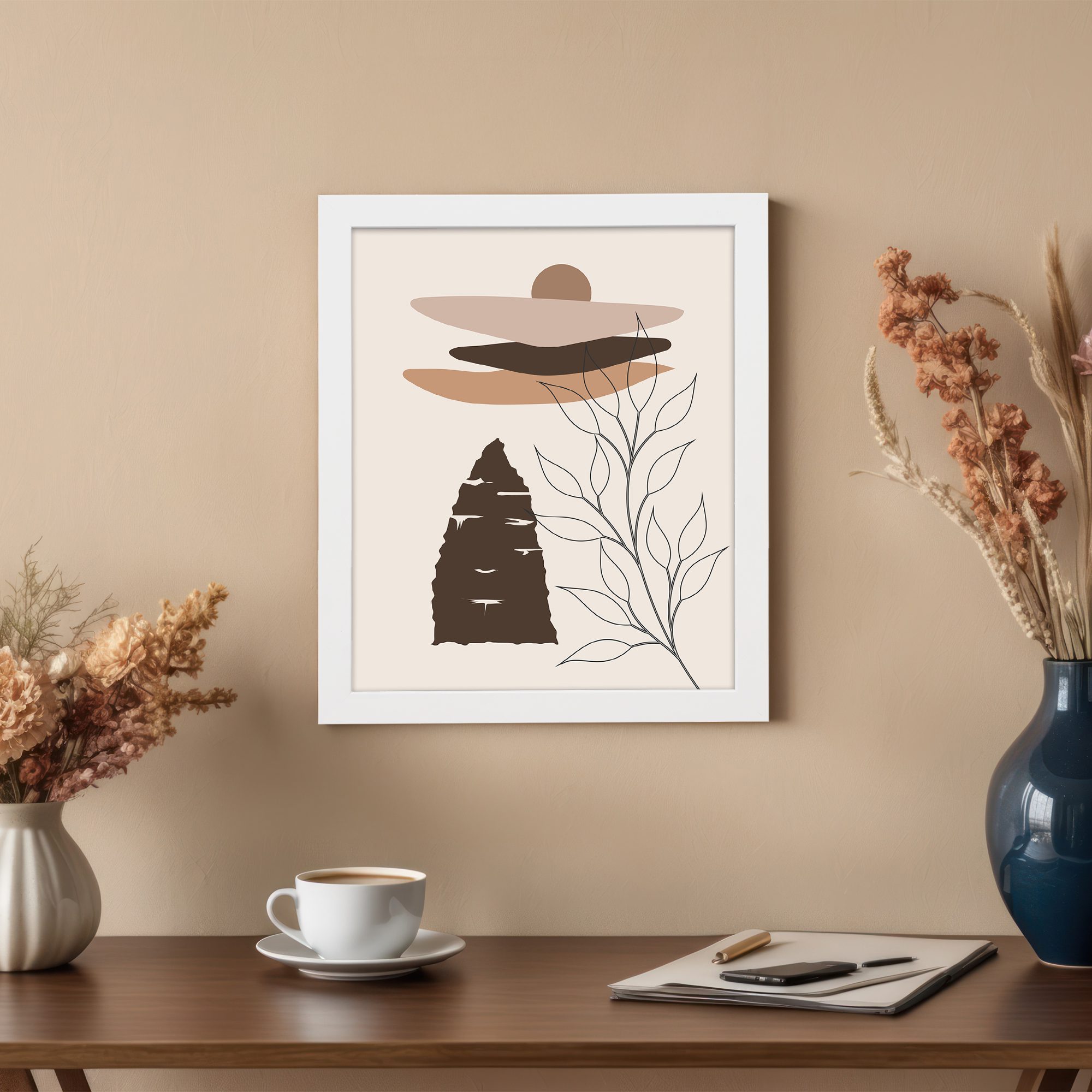 Create a calm and modern atmosphere in your space with this Minimalist Wall Art. The design blends abstract landscape elements with a delicate botanical line illustration, forming a balanced and artistic composition.