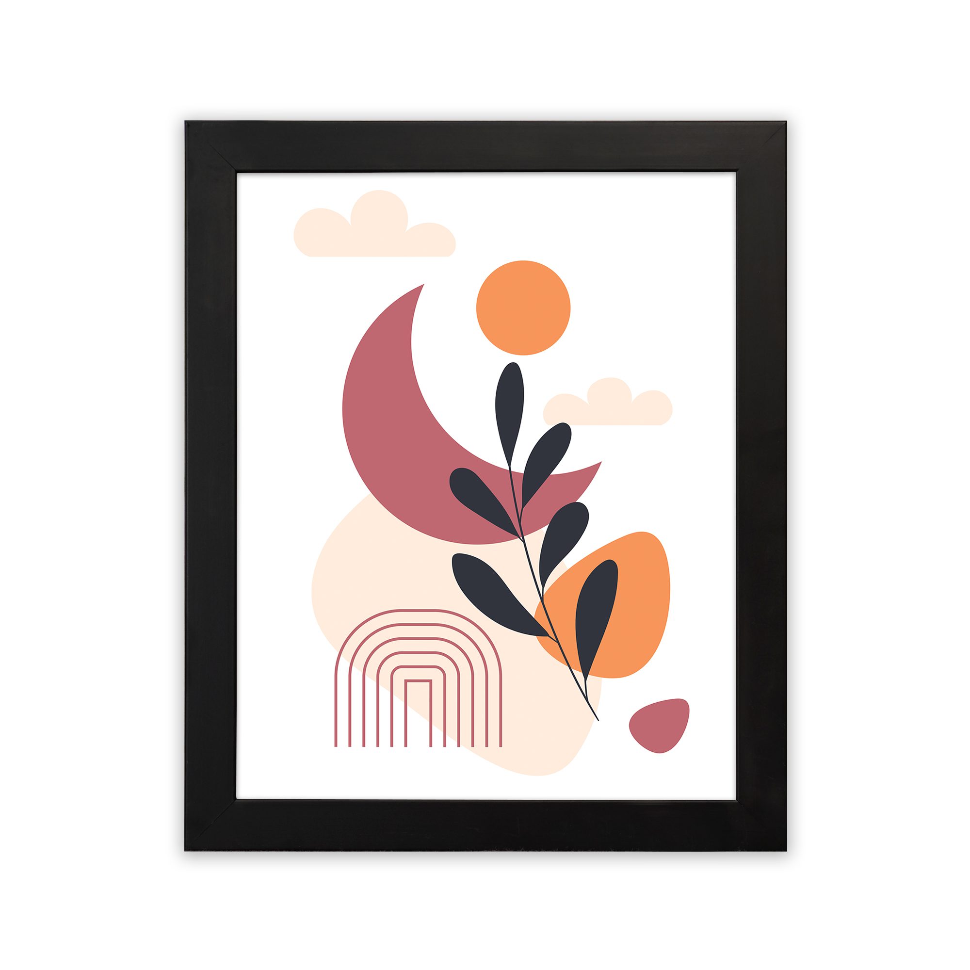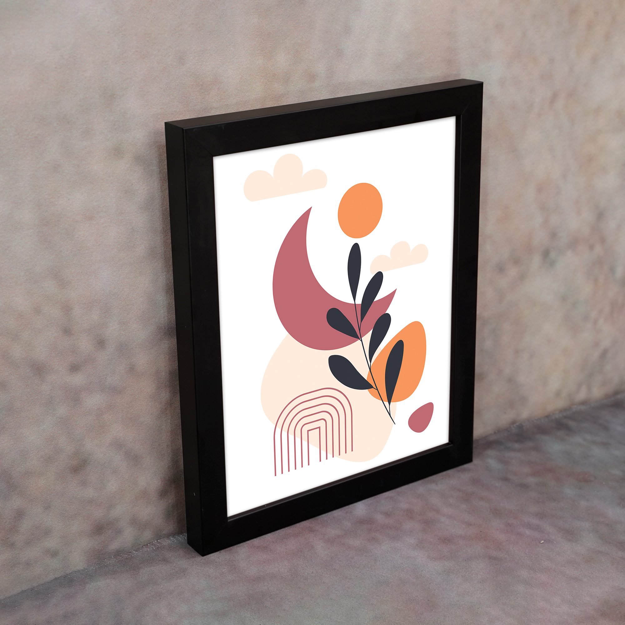 Add a vibrant and creative touch to your space with this Minimalist Wall Art. The design features a bold botanical leaf combined with playful abstract shapes, arch patterns, and subtle sky elements, creating a lively and modern composition.