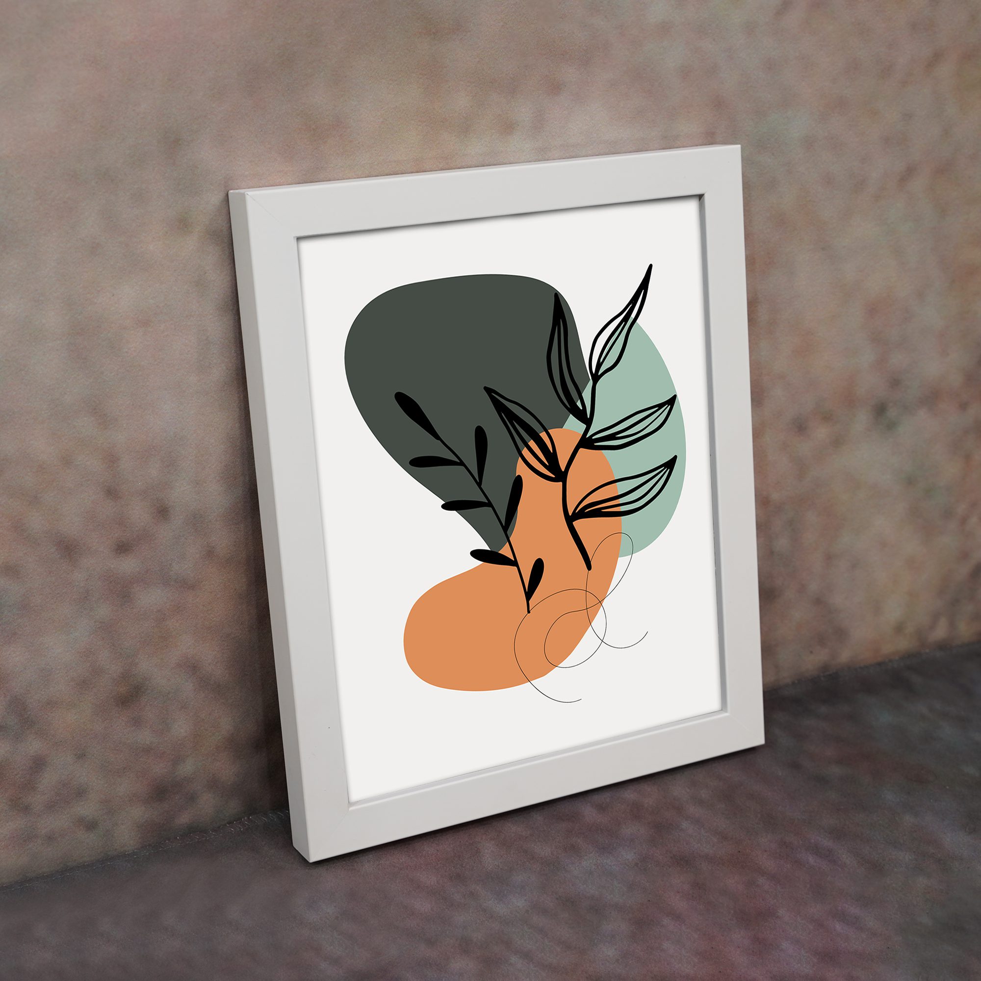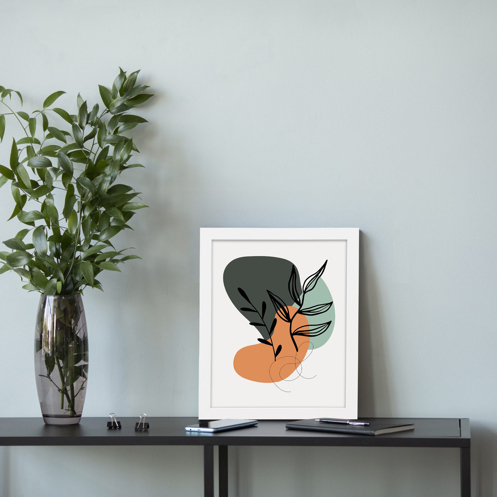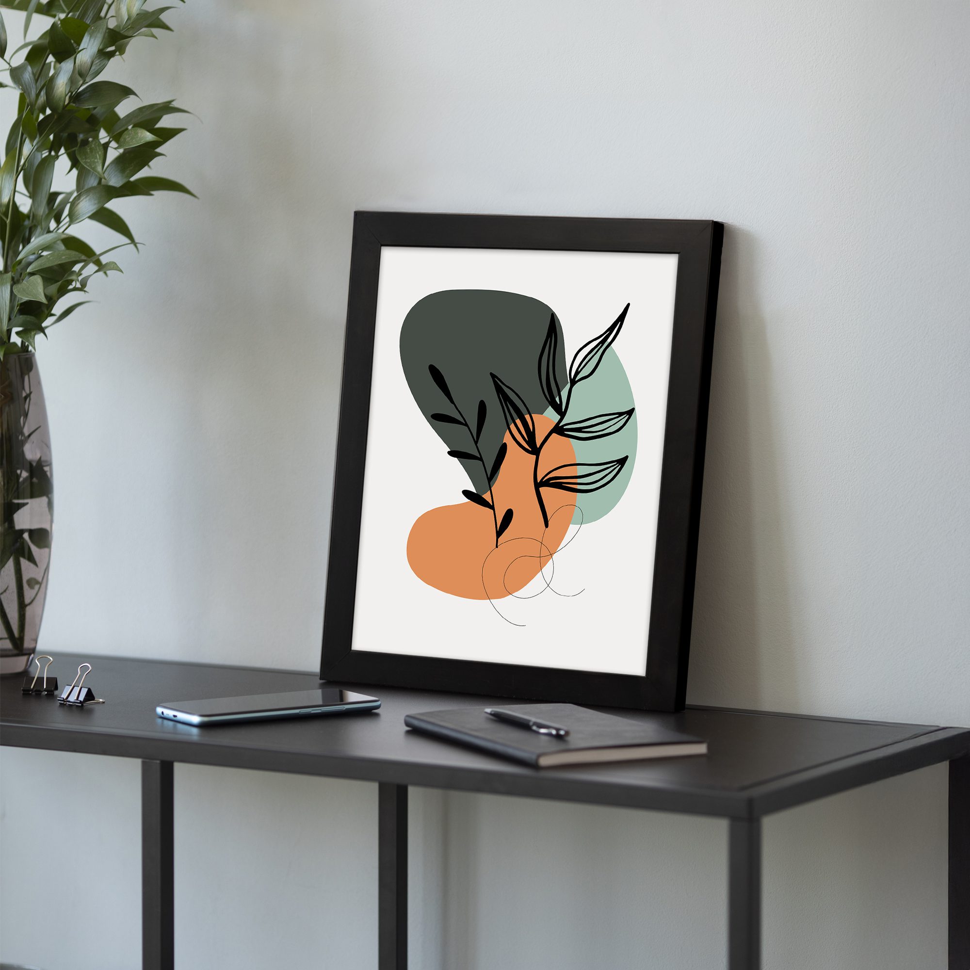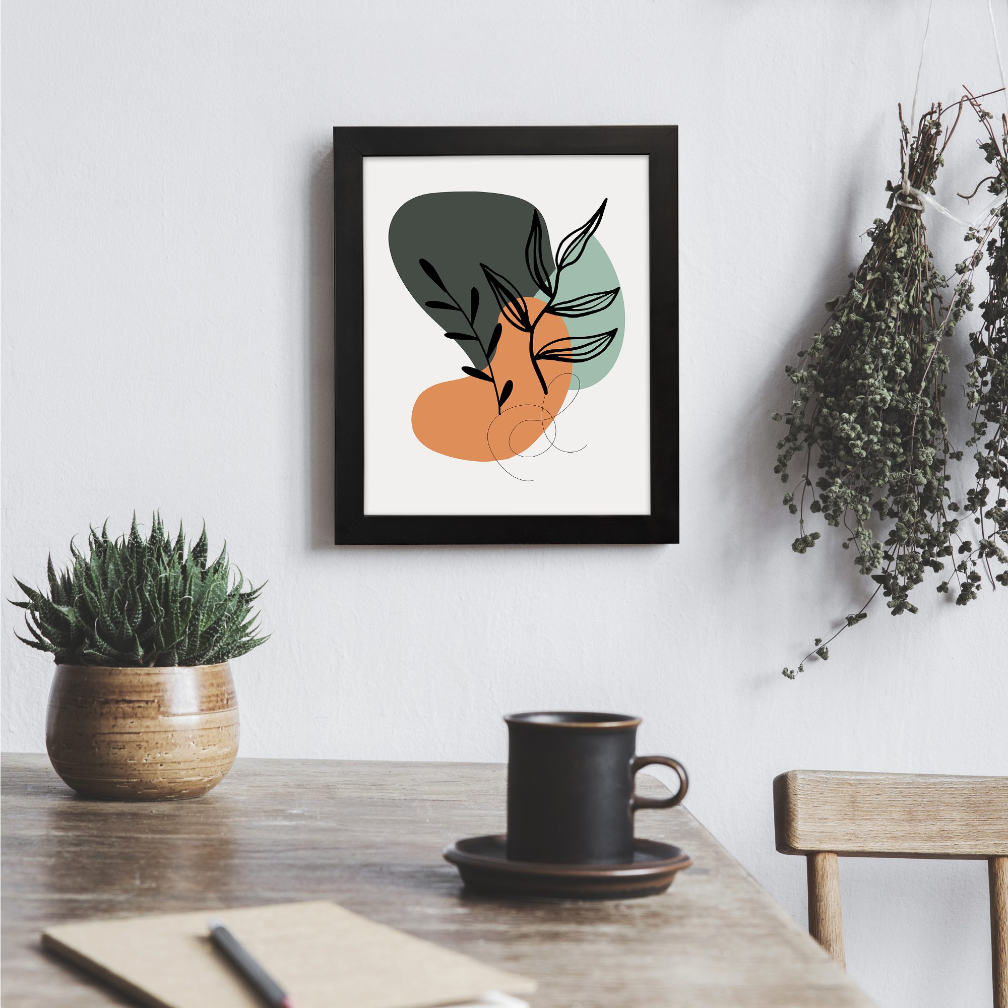 Add a bold and contemporary touch to your space with this Minimalist Wall Art. The design features a flowing botanical leaf illustration layered over abstract shapes, creating a dynamic and modern composition.