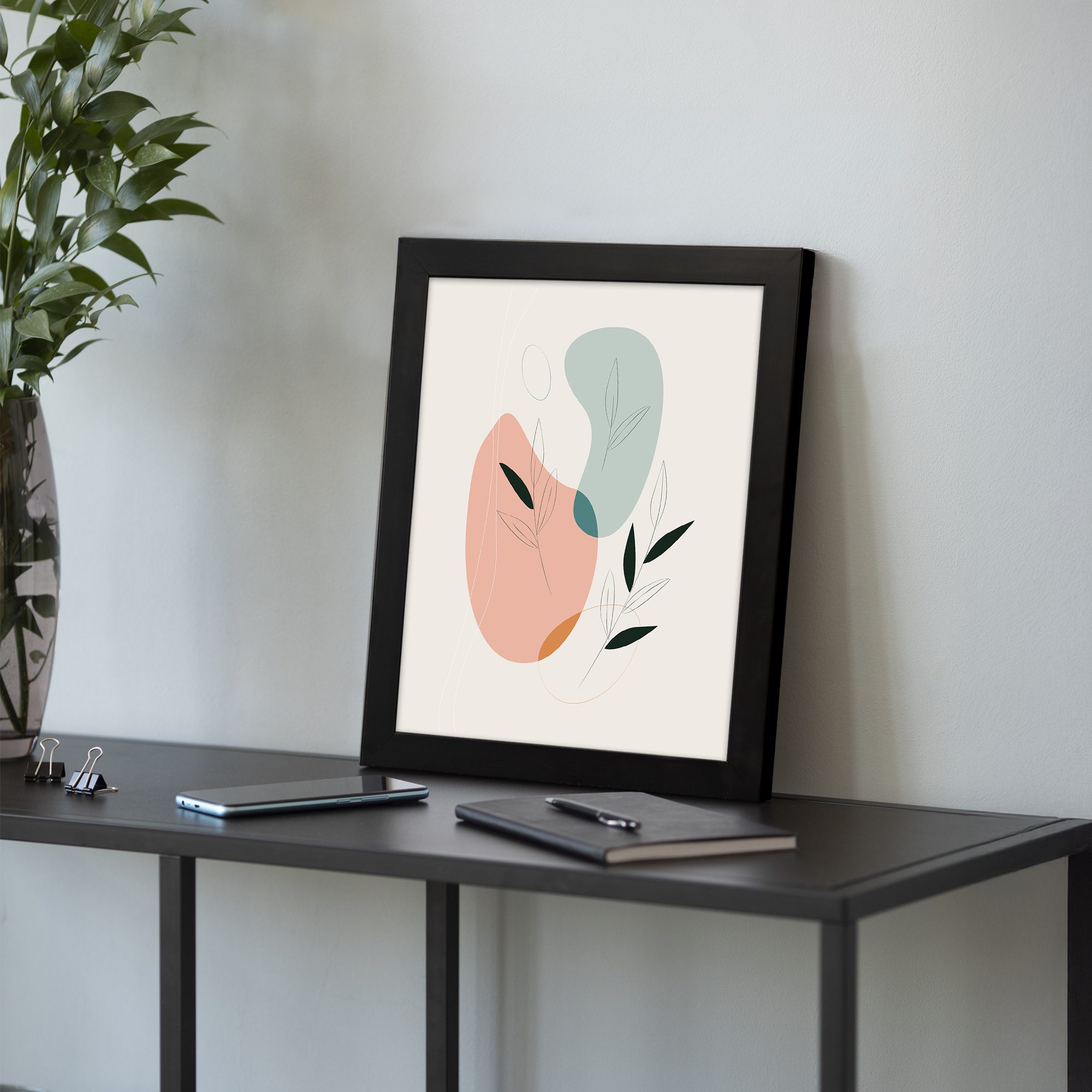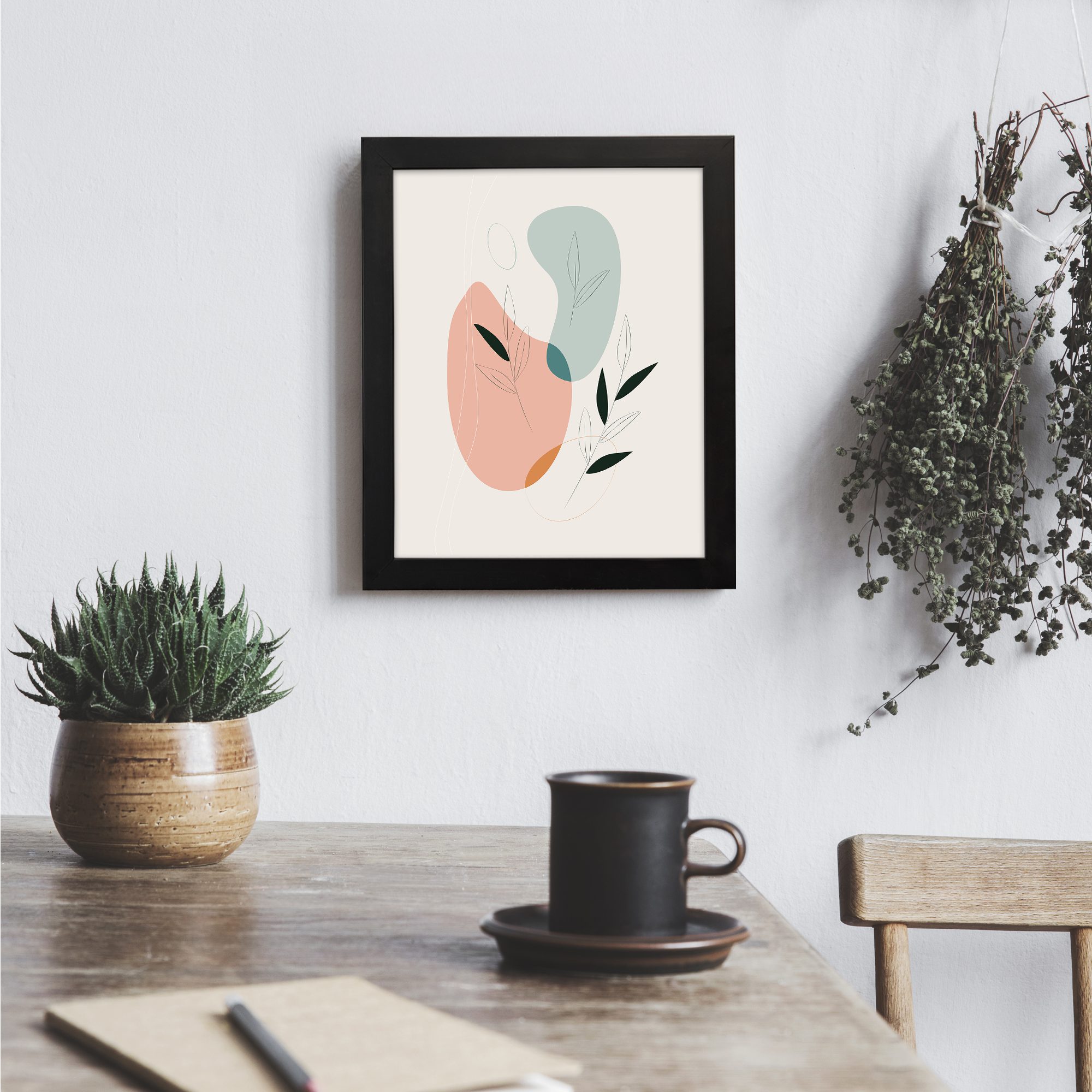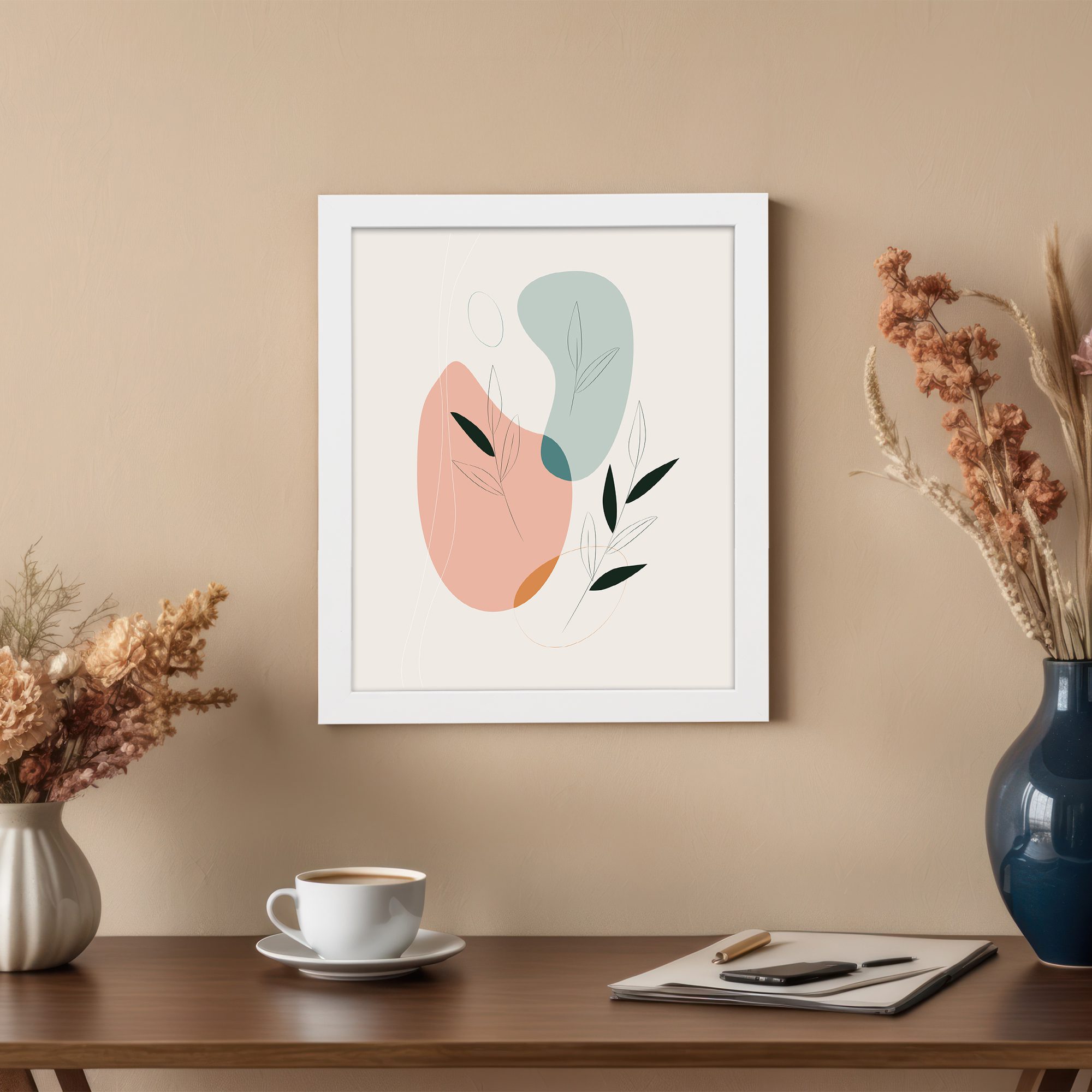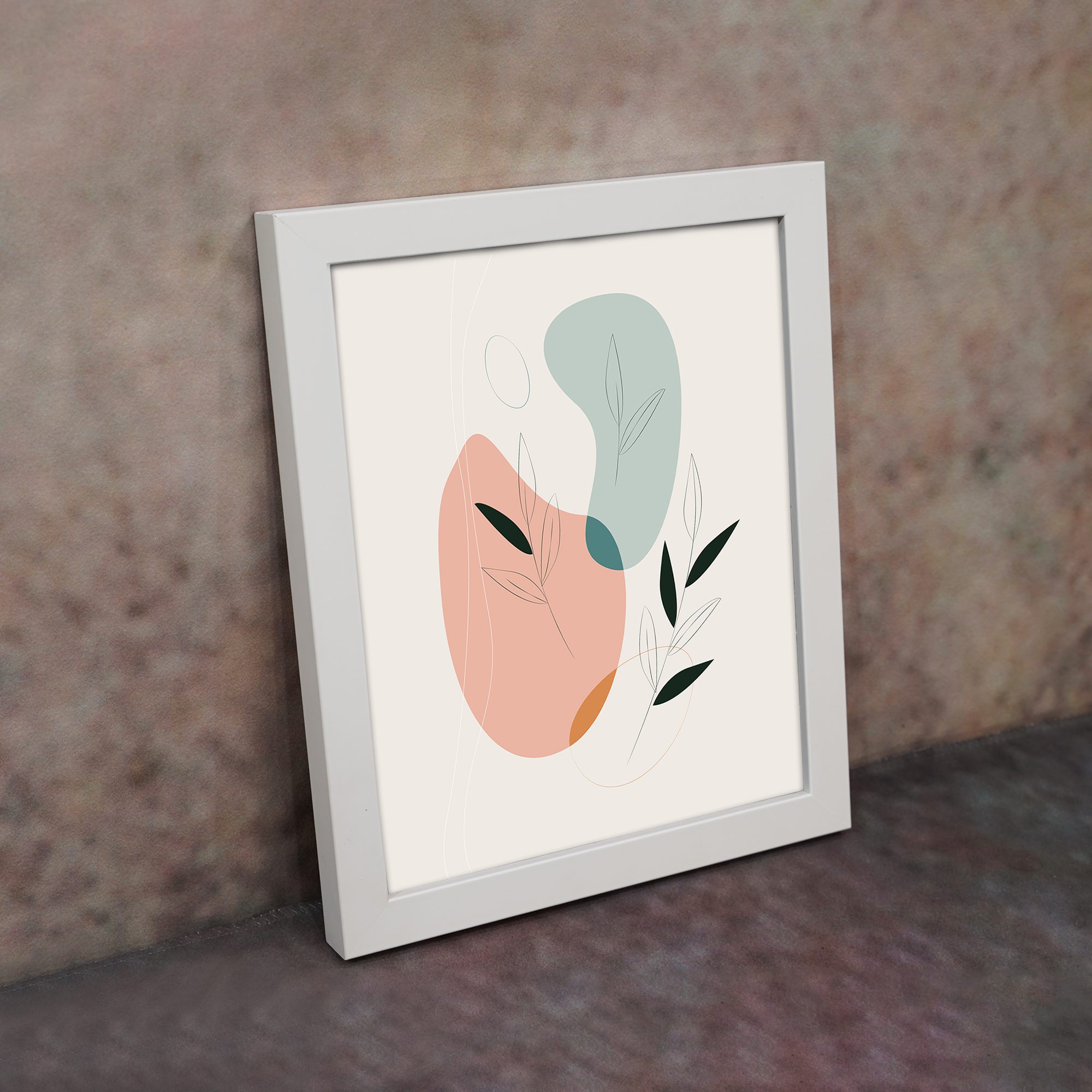 Add a soft and modern artistic touch to your space with this Minimalist Wall Art. The design features smooth abstract shapes combined with subtle botanical leaf accents, creating a clean and visually pleasing composition.