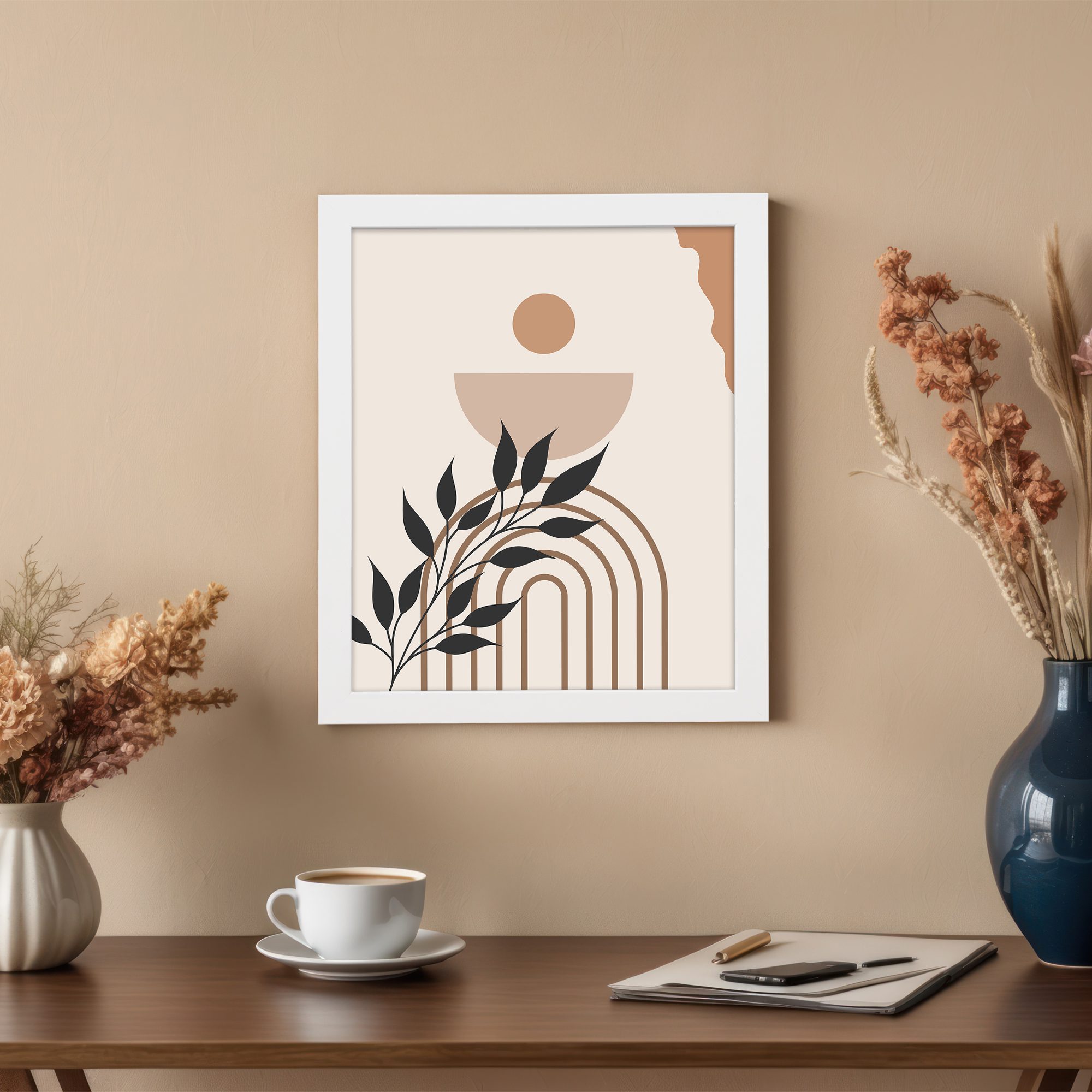 Add a calm and contemporary touch to your space with this Minimalist Wall Art. The design features flowing arch patterns combined with a bold leaf silhouette and soft abstract shapes, creating a clean and balanced composition.