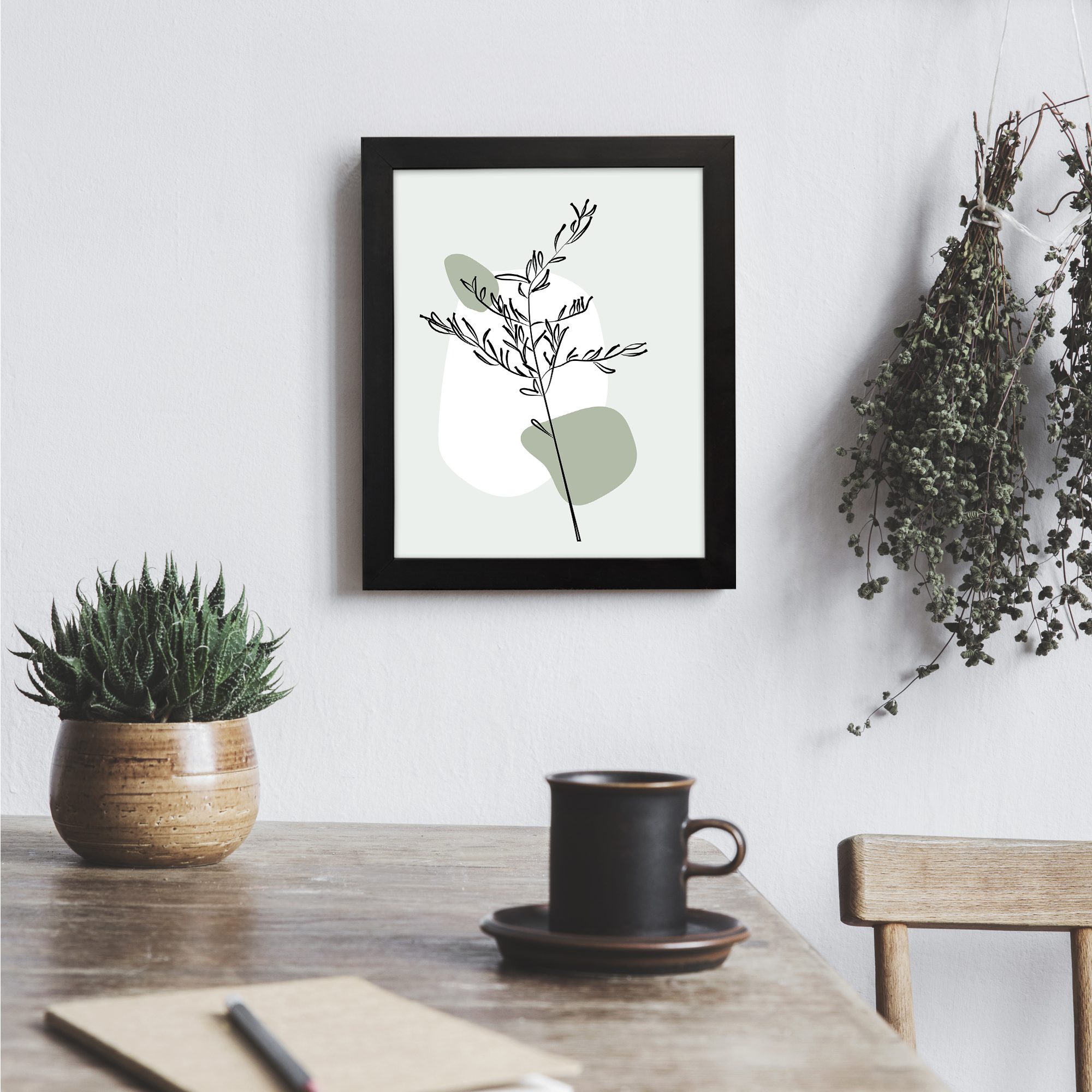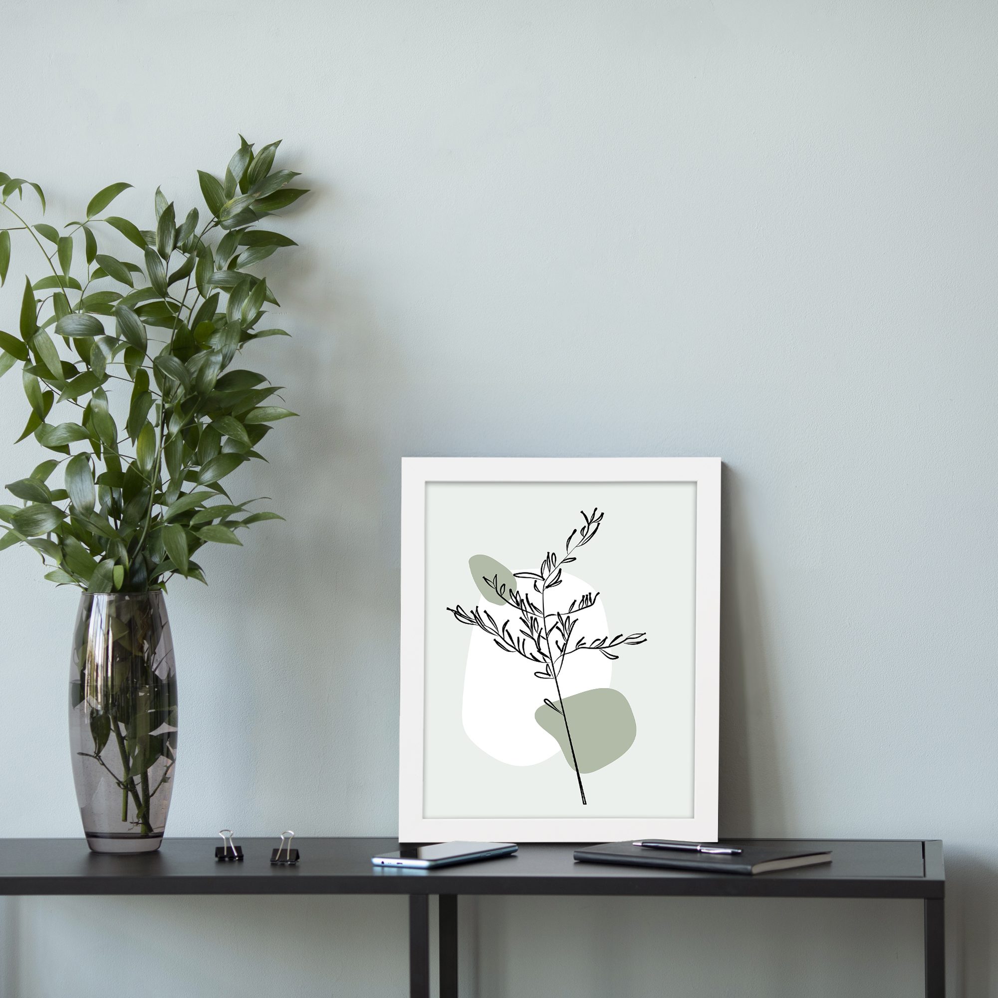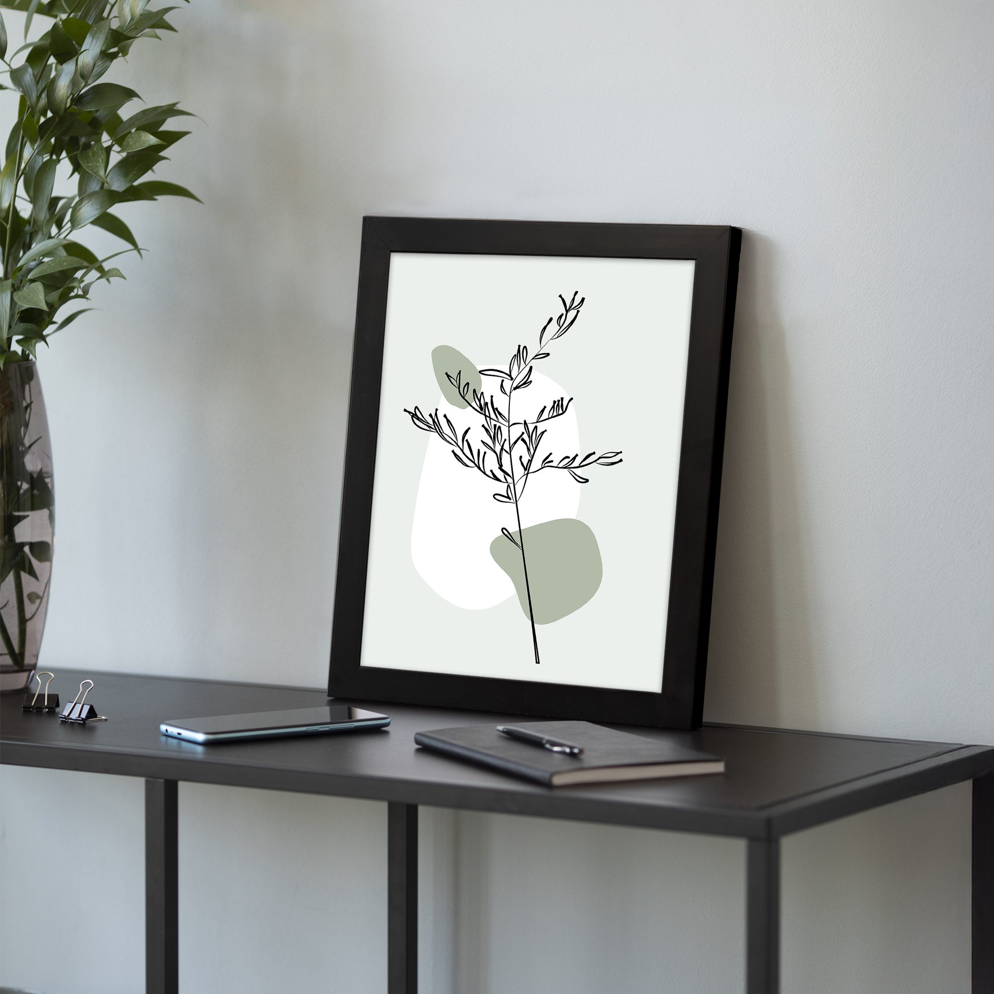 The subtle green tones combined with open space give the artwork a fresh and refined feel. Its simple design blends easily with any interior style, making it perfect for modern homes and workspaces.