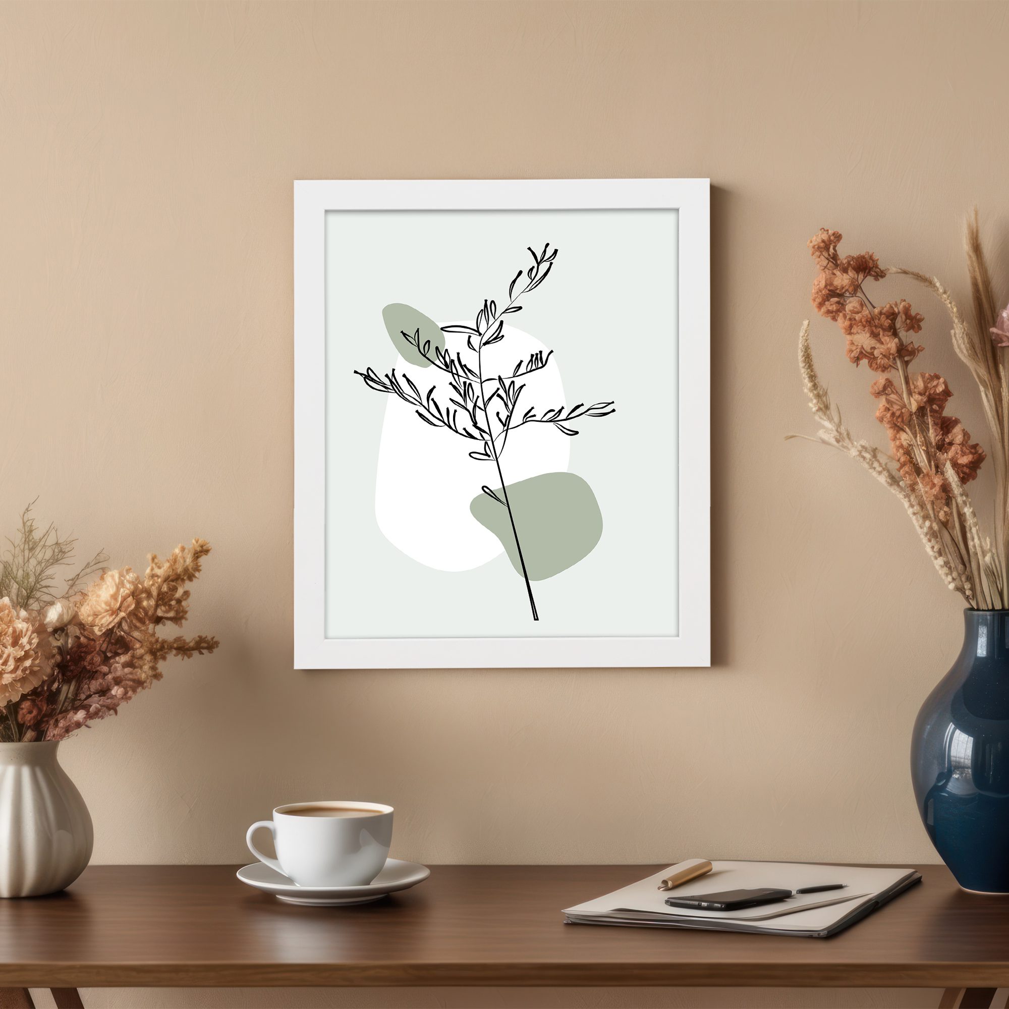 Bring a calm and elegant touch to your space with our Minimalist Wall Art. This design features a simple botanical line art illustration with soft abstract shapes in the background. The clean lines and minimal composition create a peaceful and modern look.