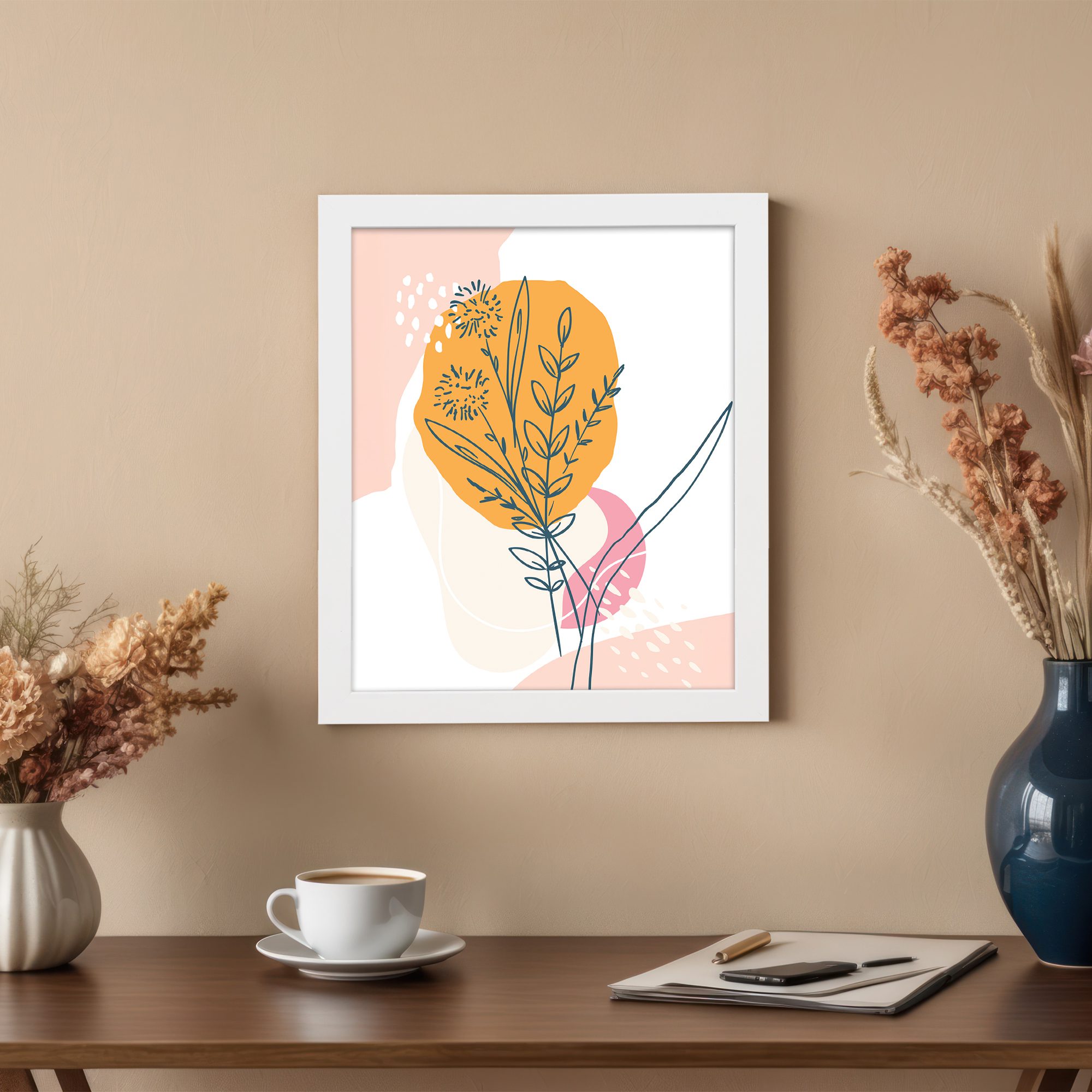 Bring a fresh and artistic touch to your space with our Minimalist Wall Art. This design features a delicate botanical line art illustration layered over bold abstract shapes. The composition is clean yet expressive, creating a modern and stylish aesthetic.