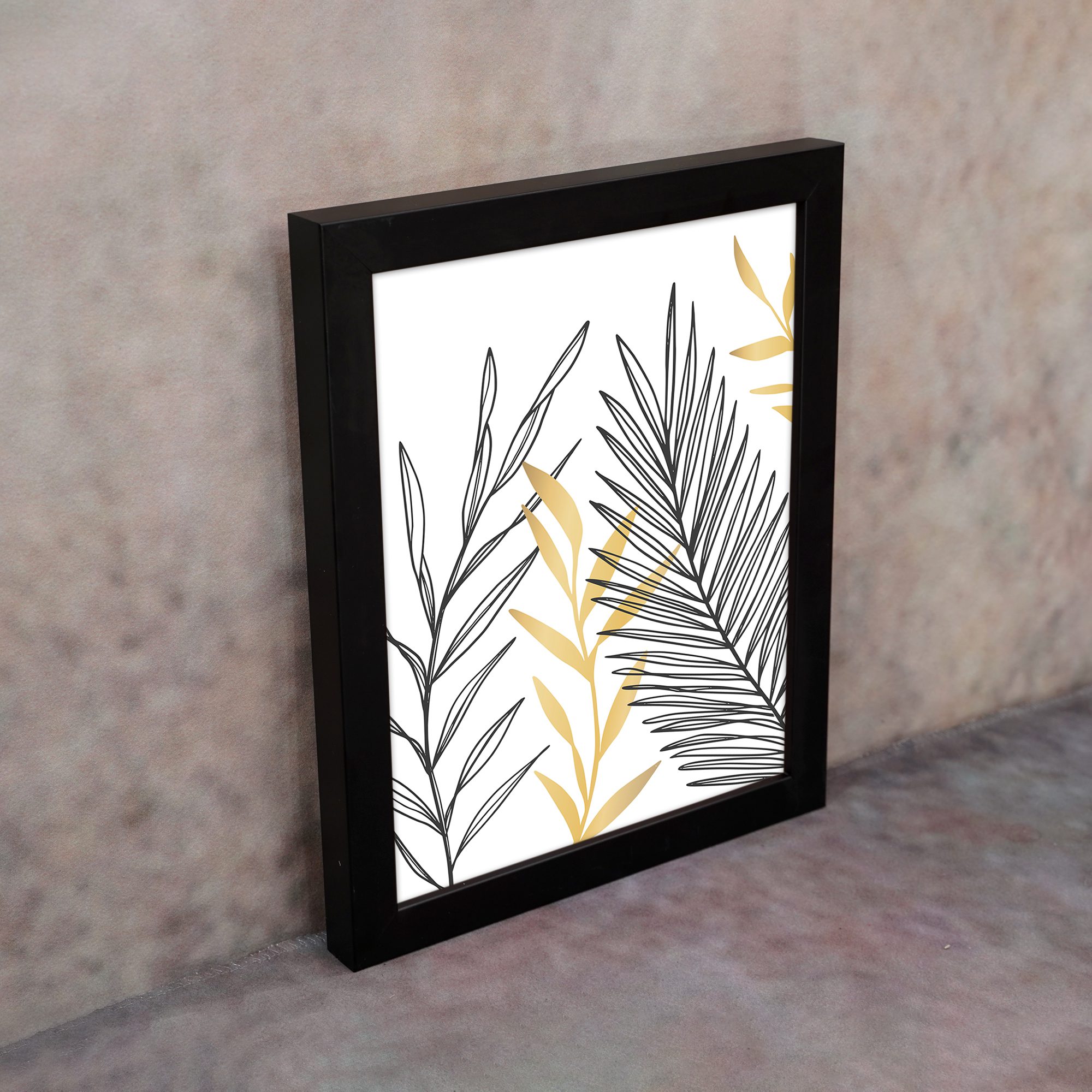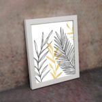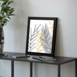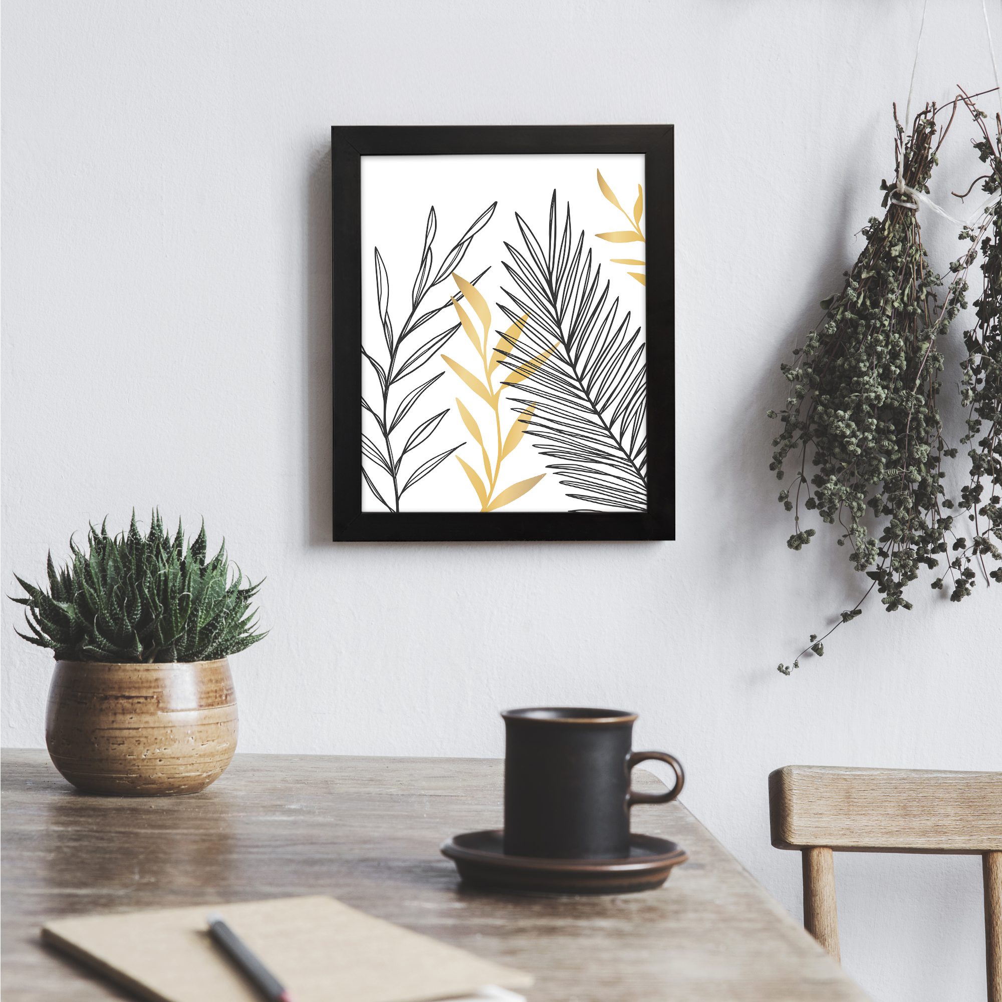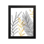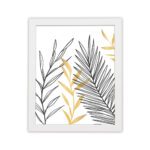 The color palette includes a light neutral background with black line foliage and soft mustard yellow leaf accents, creating a subtle contrast while maintaining a modern minimal look. The mix of fine line detailing and highlighted leaves adds depth and visual interest.