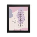 The color palette features a light neutral base with soft mauve, blush pink, and muted lavender tones, enhanced by thin black line detailing, creating a gentle contrast and calming visual flow. The dual plant composition adds subtle depth while keeping the design minimal.