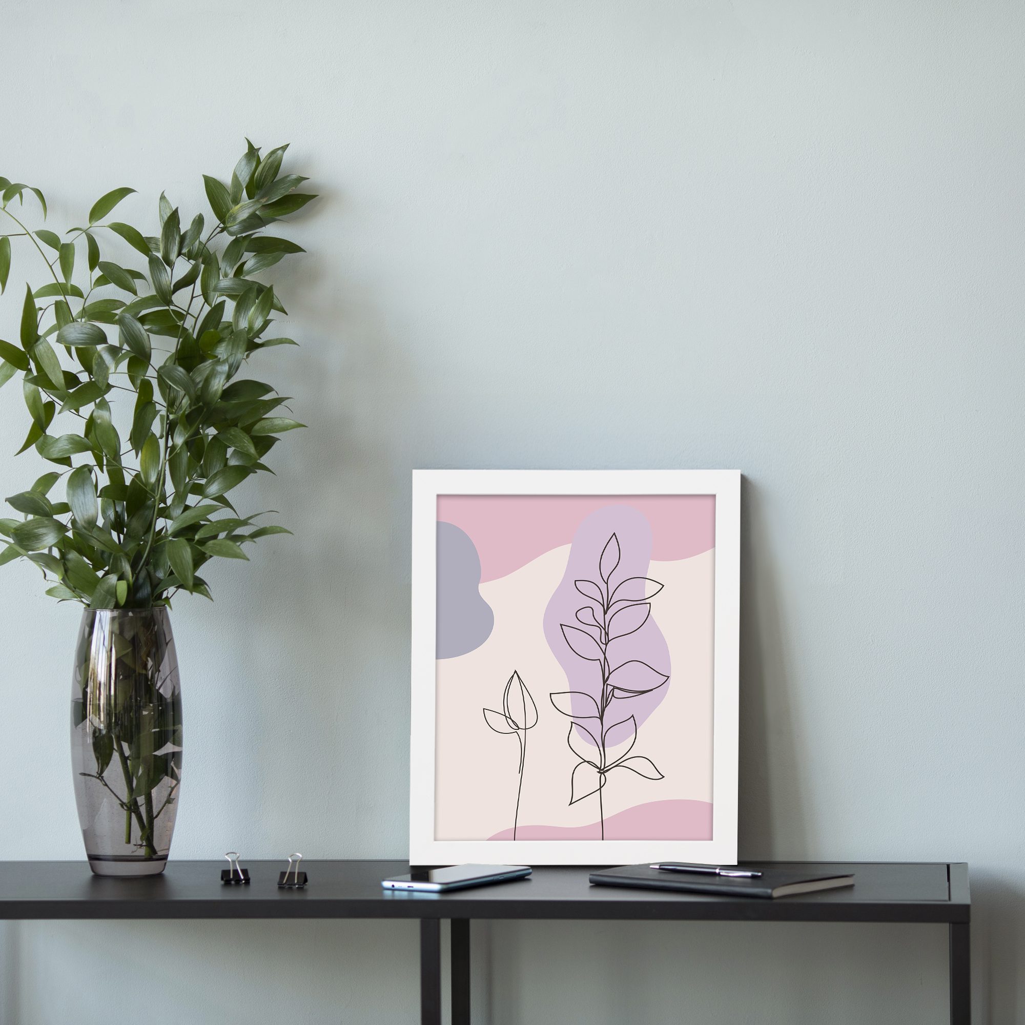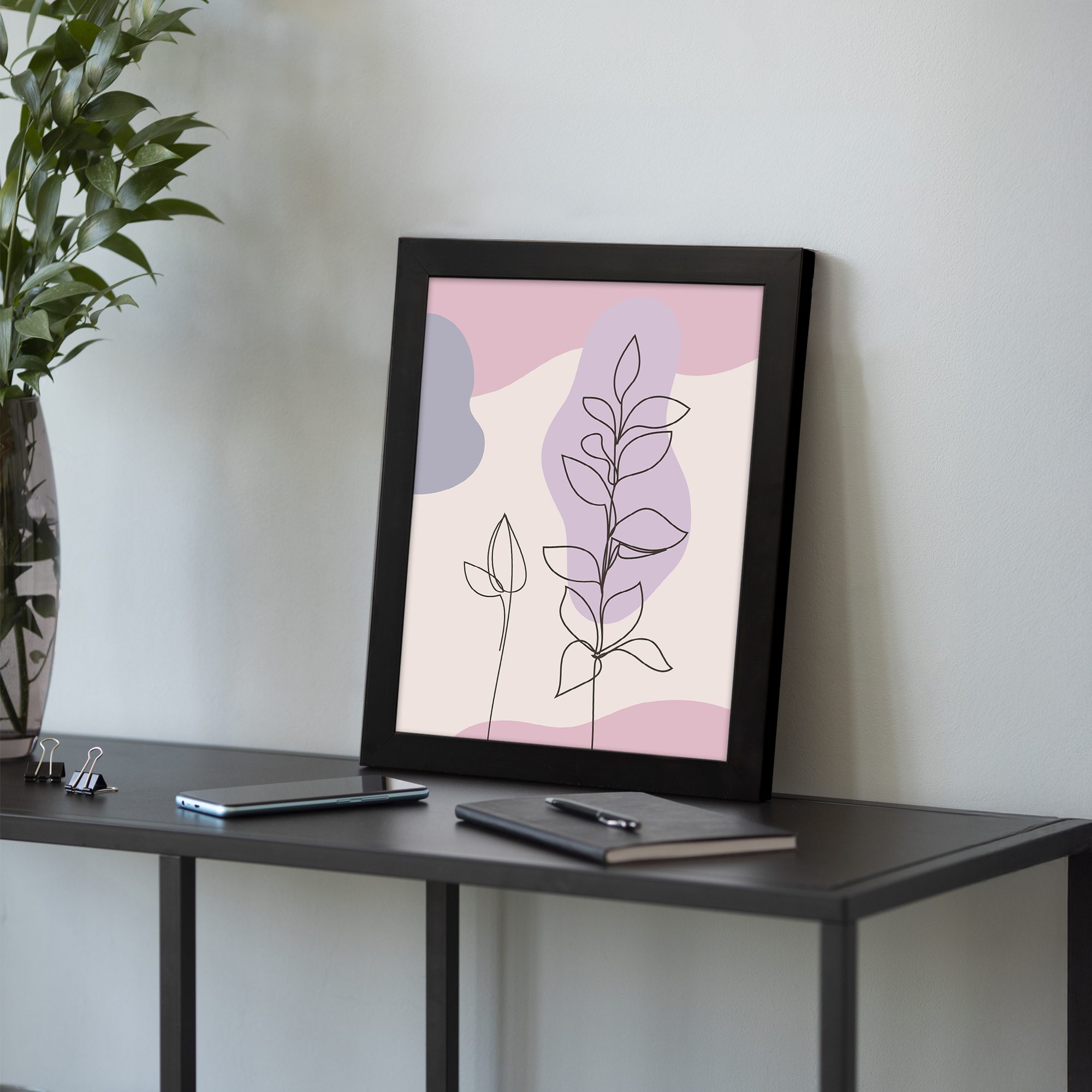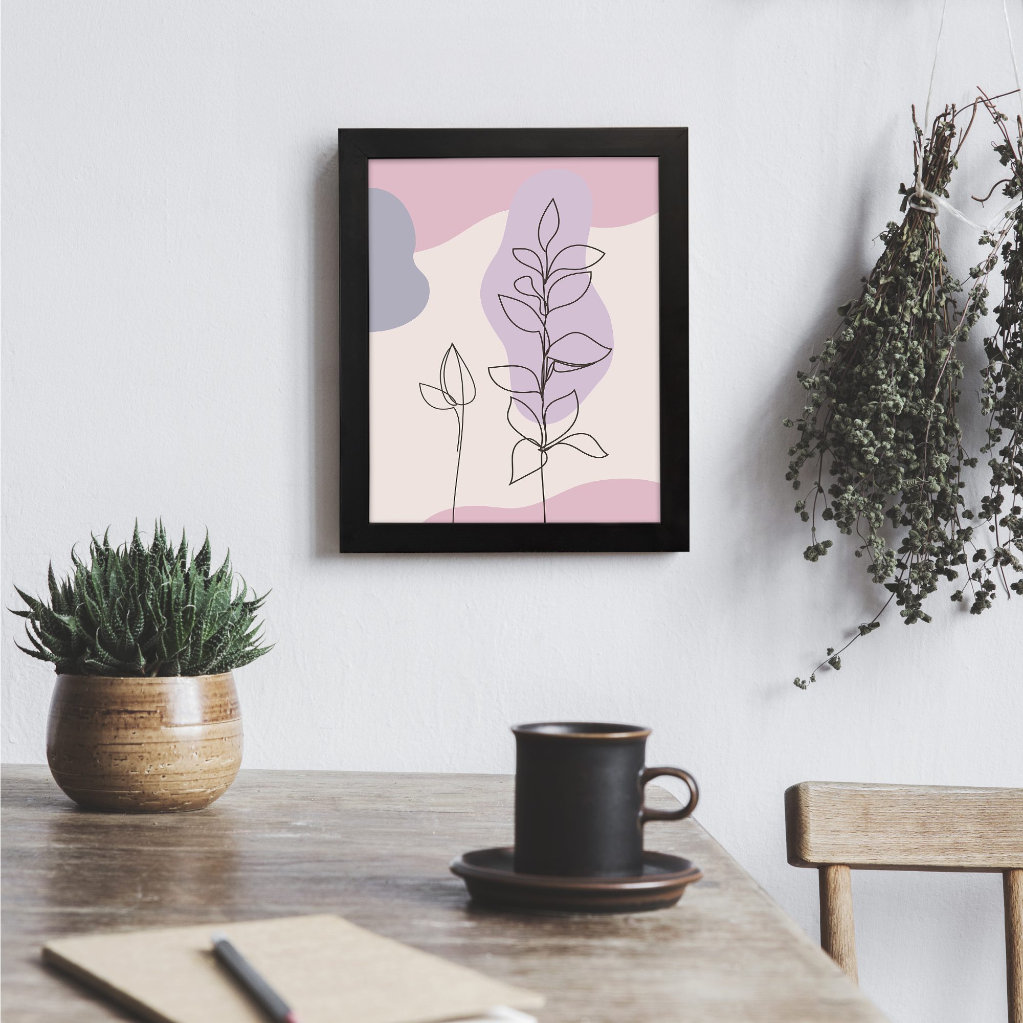 Refresh your space with a soft and modern aesthetic using this Minimalist Wall Art. The design showcases two delicate botanical stems drawn in fine line style, set against smooth abstract shapes for a clean and balanced look.