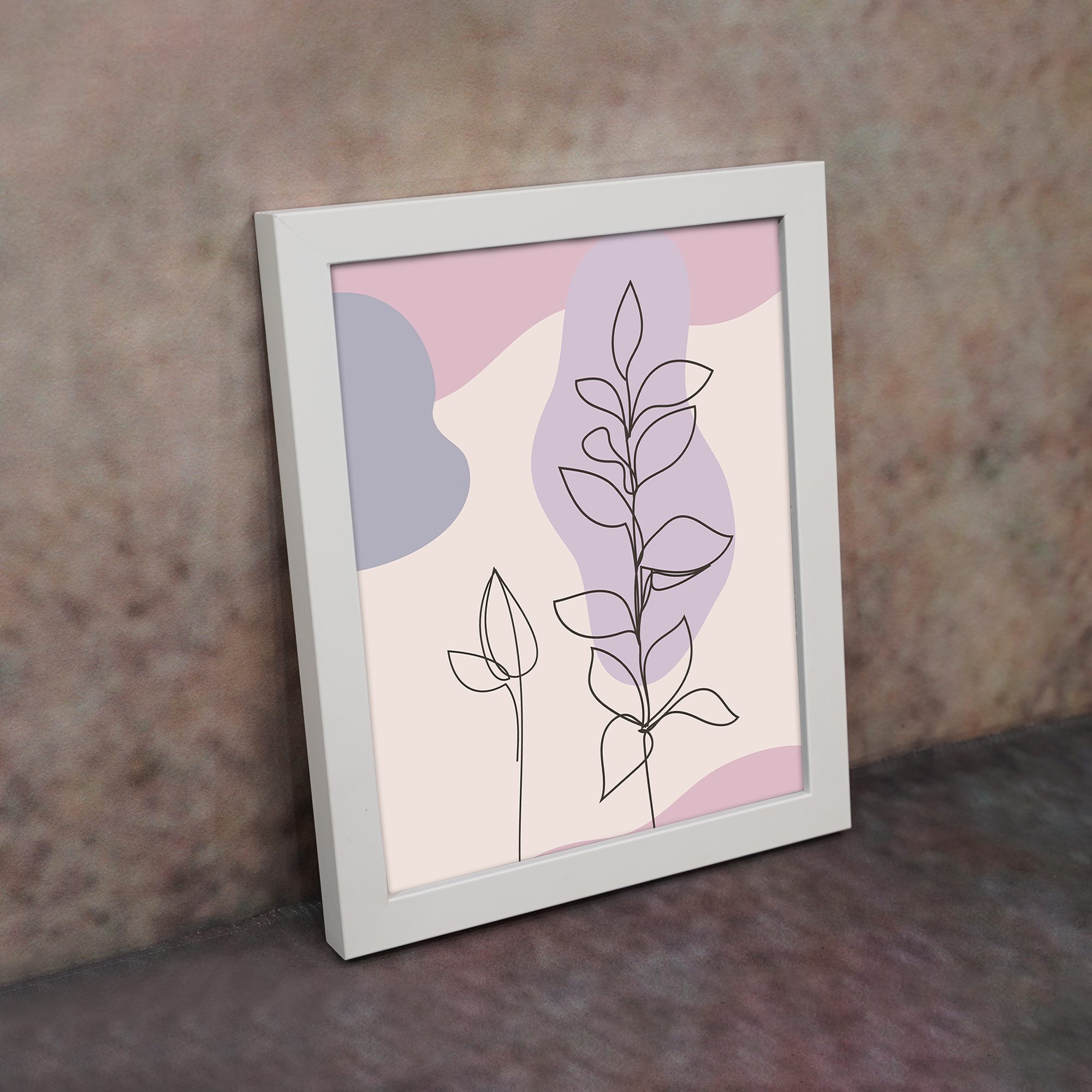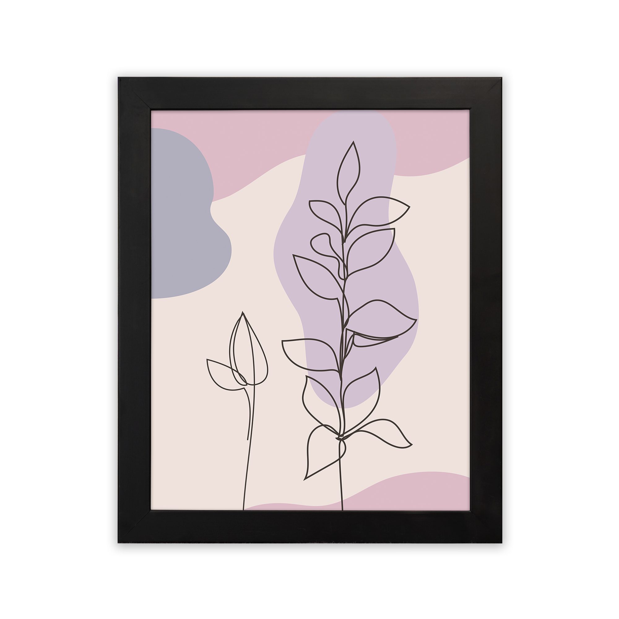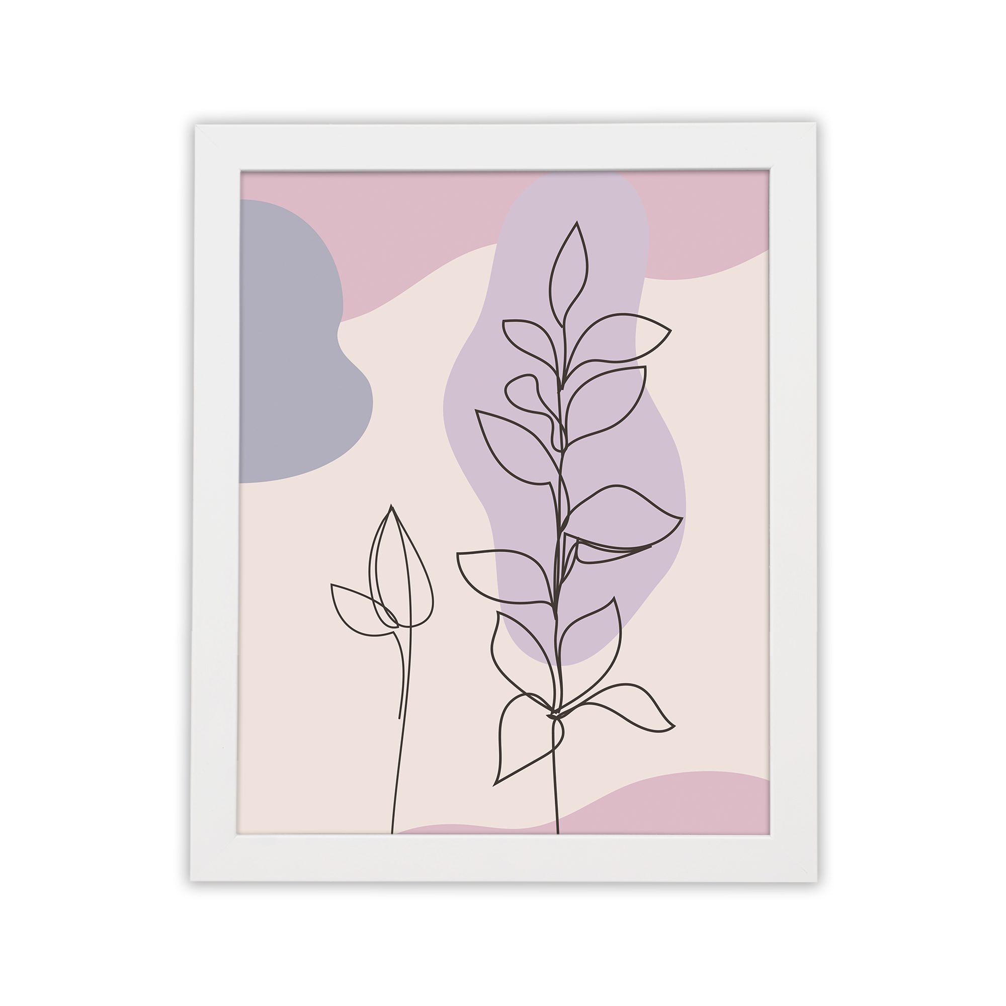 Bring a soft and elegant touch to your space with this Minimalist Wall Art. The design features two delicate botanical stems illustrated in fine line style, layered over smooth abstract shapes for a clean and modern composition.