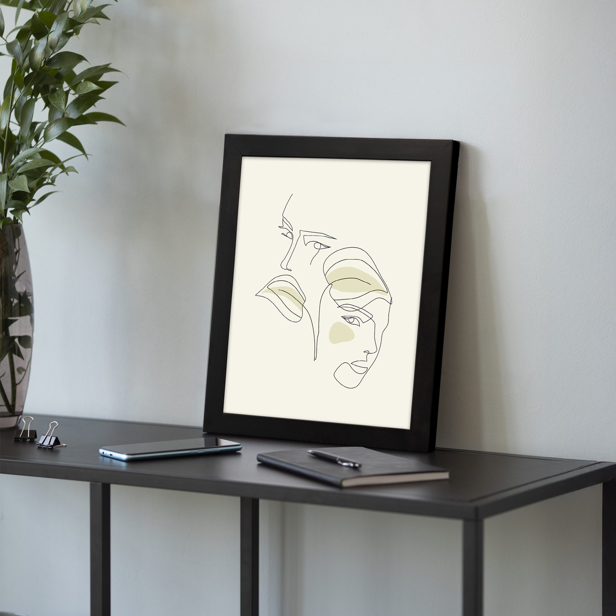 Bring a calm and modern touch to your space with our Minimalist Wall Art. This design features two abstract faces drawn in a continuous line style, creating a simple yet expressive composition. The overlapping lines give a balanced and artistic feel.