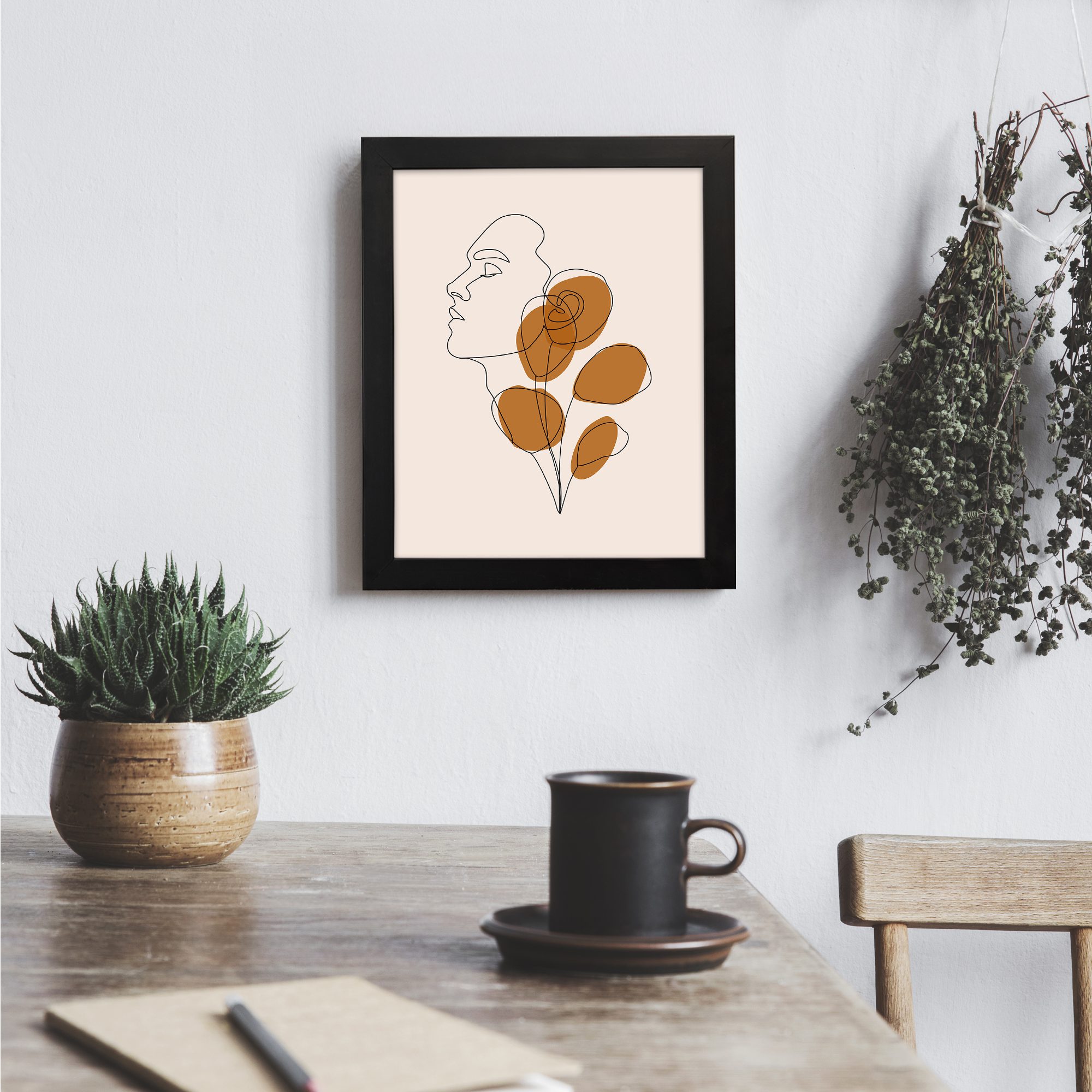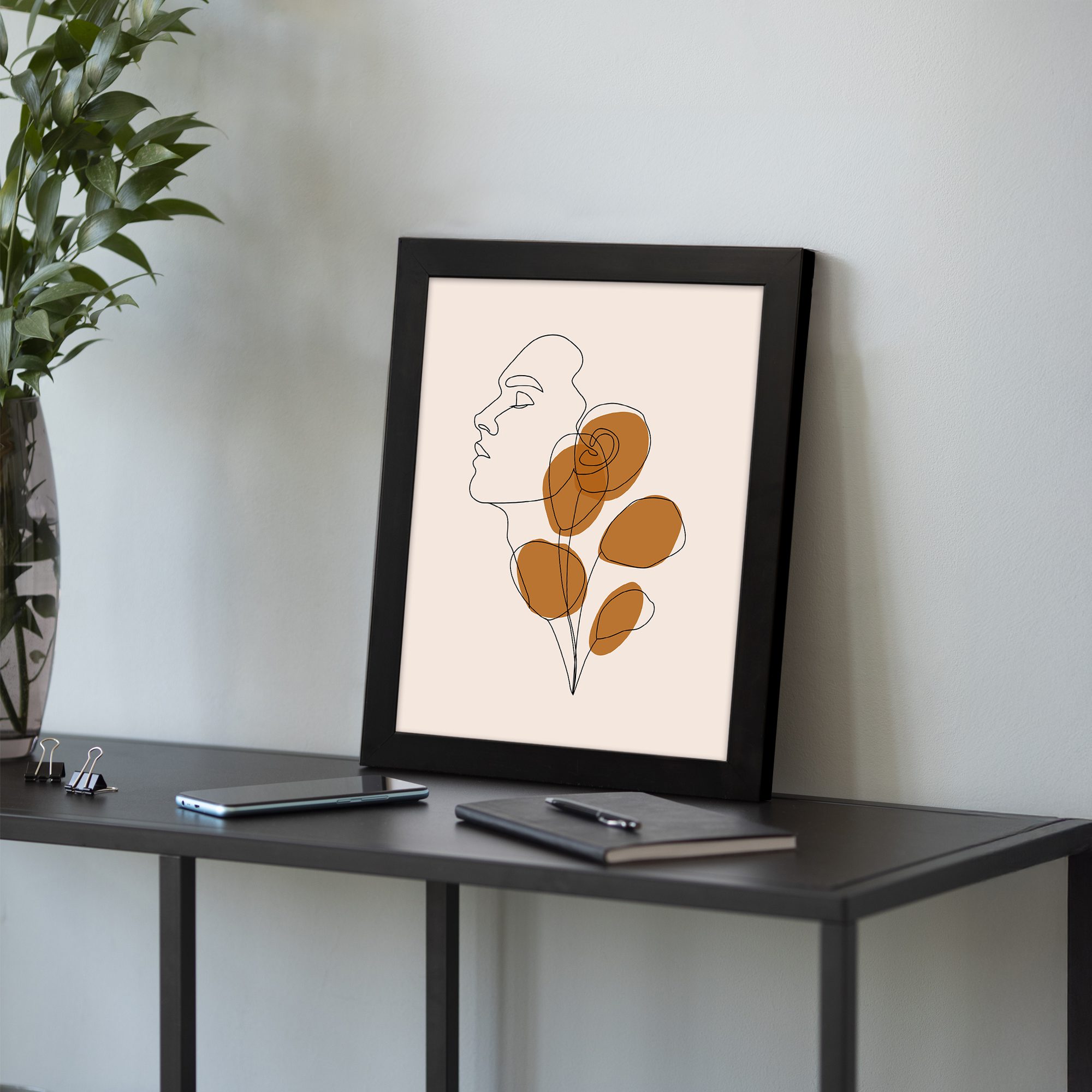 Infidu Minimalist Wall Art Face Botanical Line Frame - Modern Decor - mla56