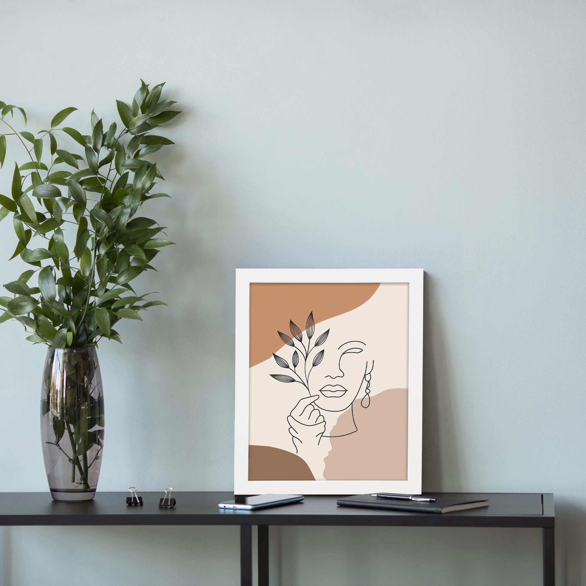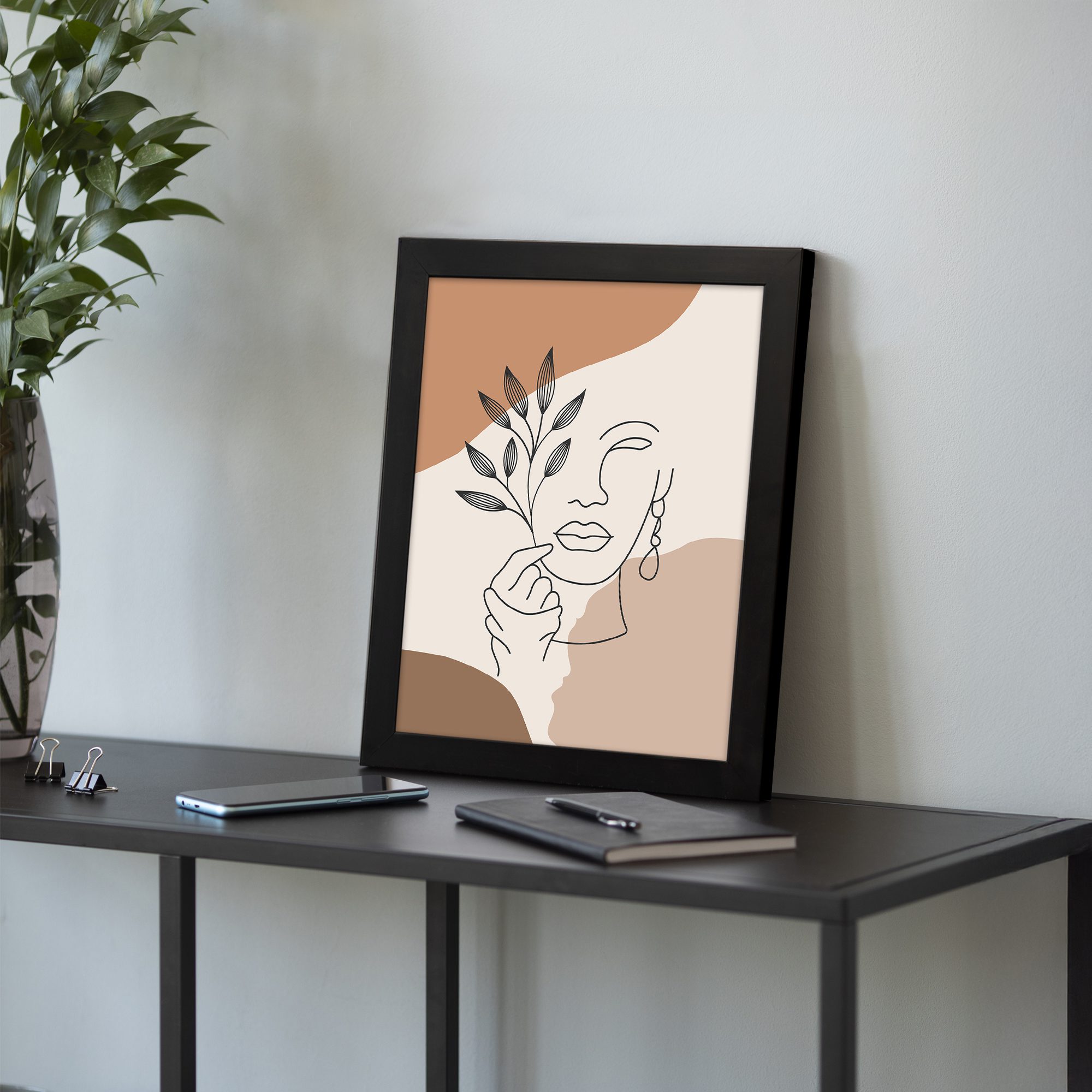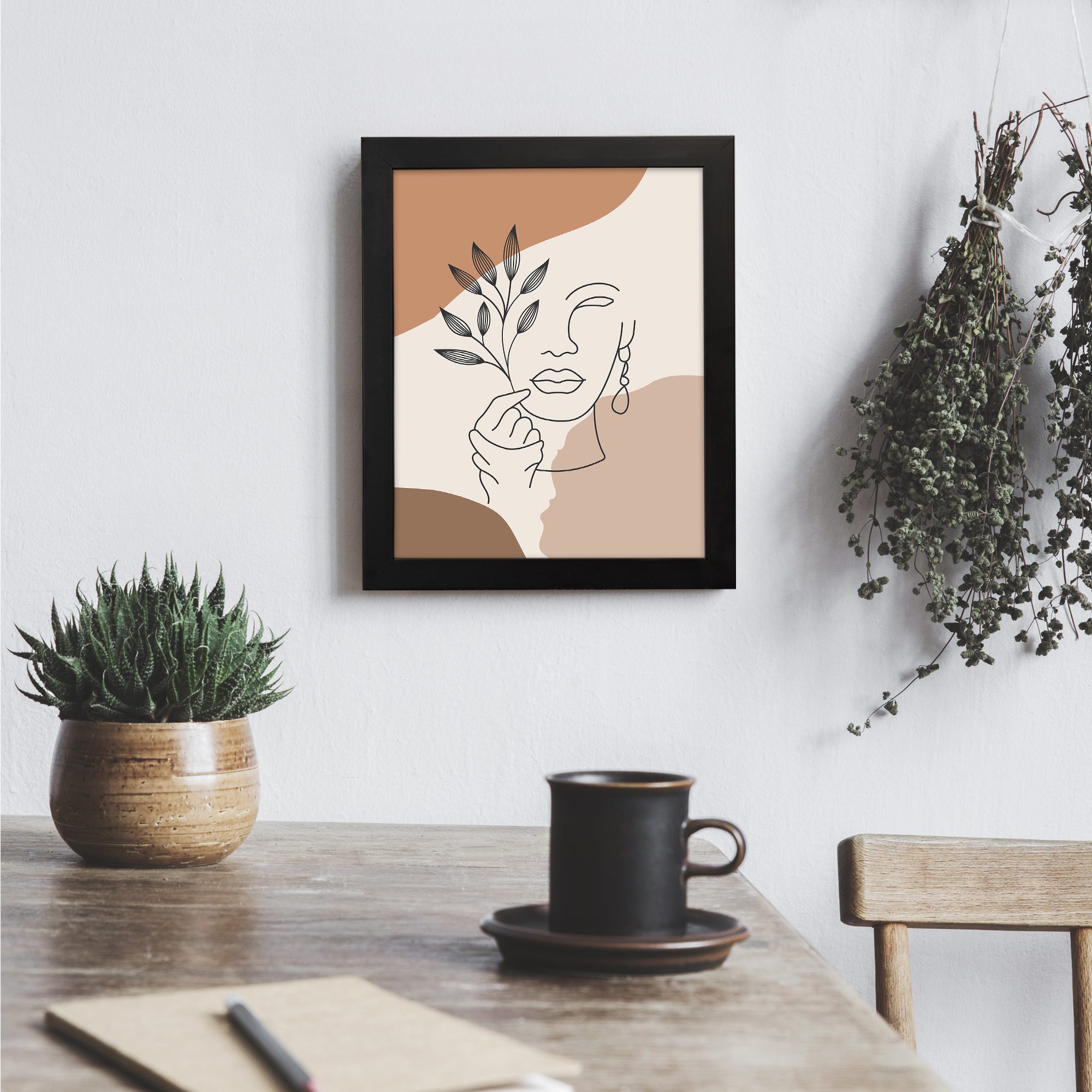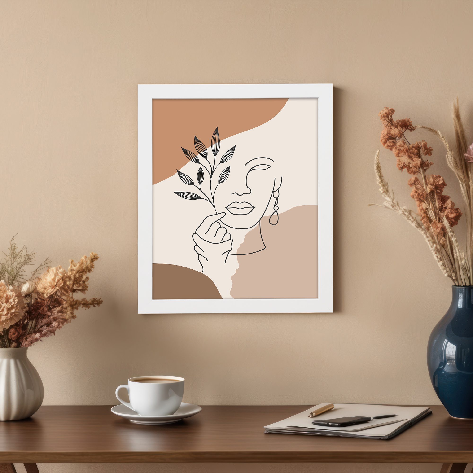 Add a stylish and expressive touch to your space with this Minimalist Wall Art. The design combines a graceful face line illustration with a delicate botanical element, creating a modern and artistic composition.