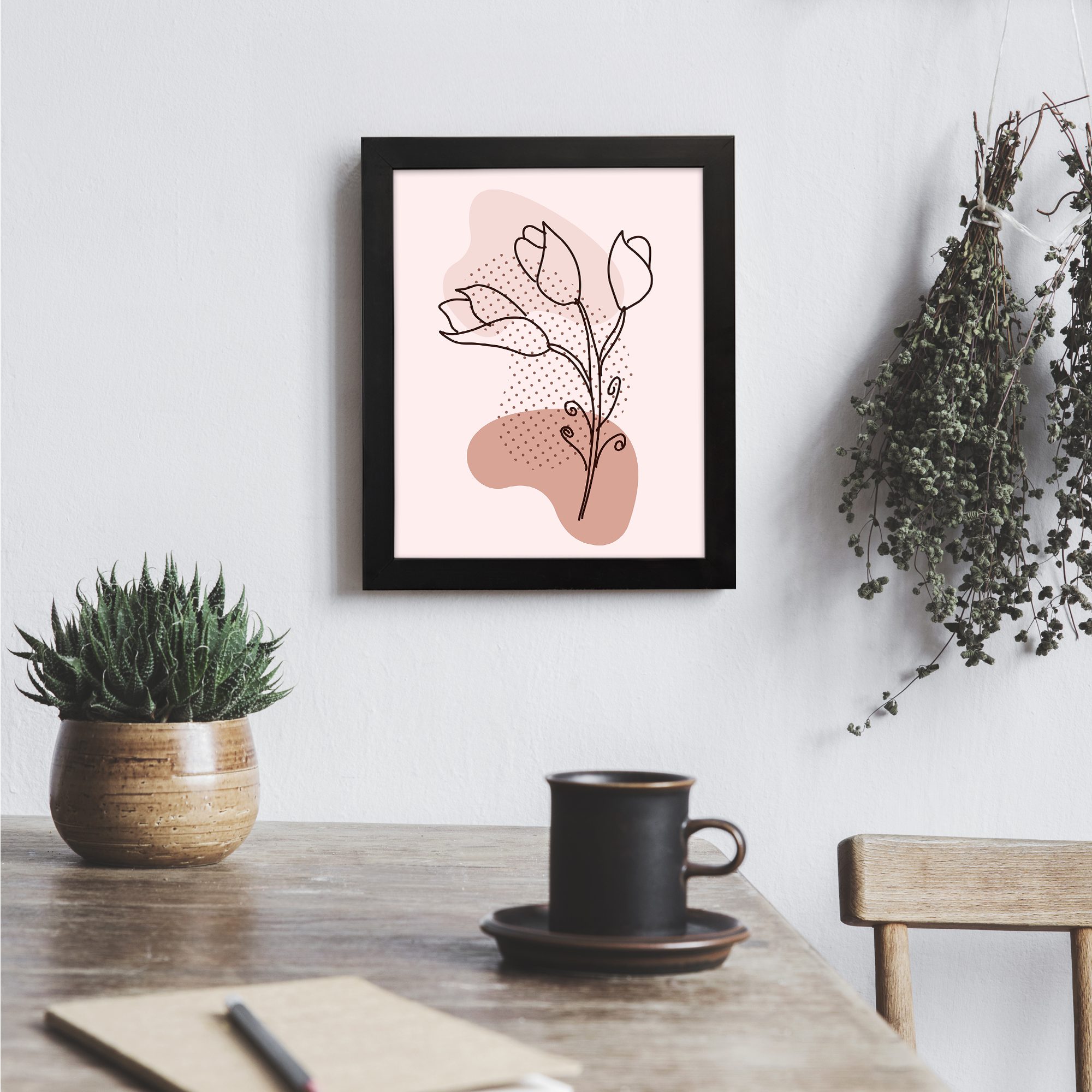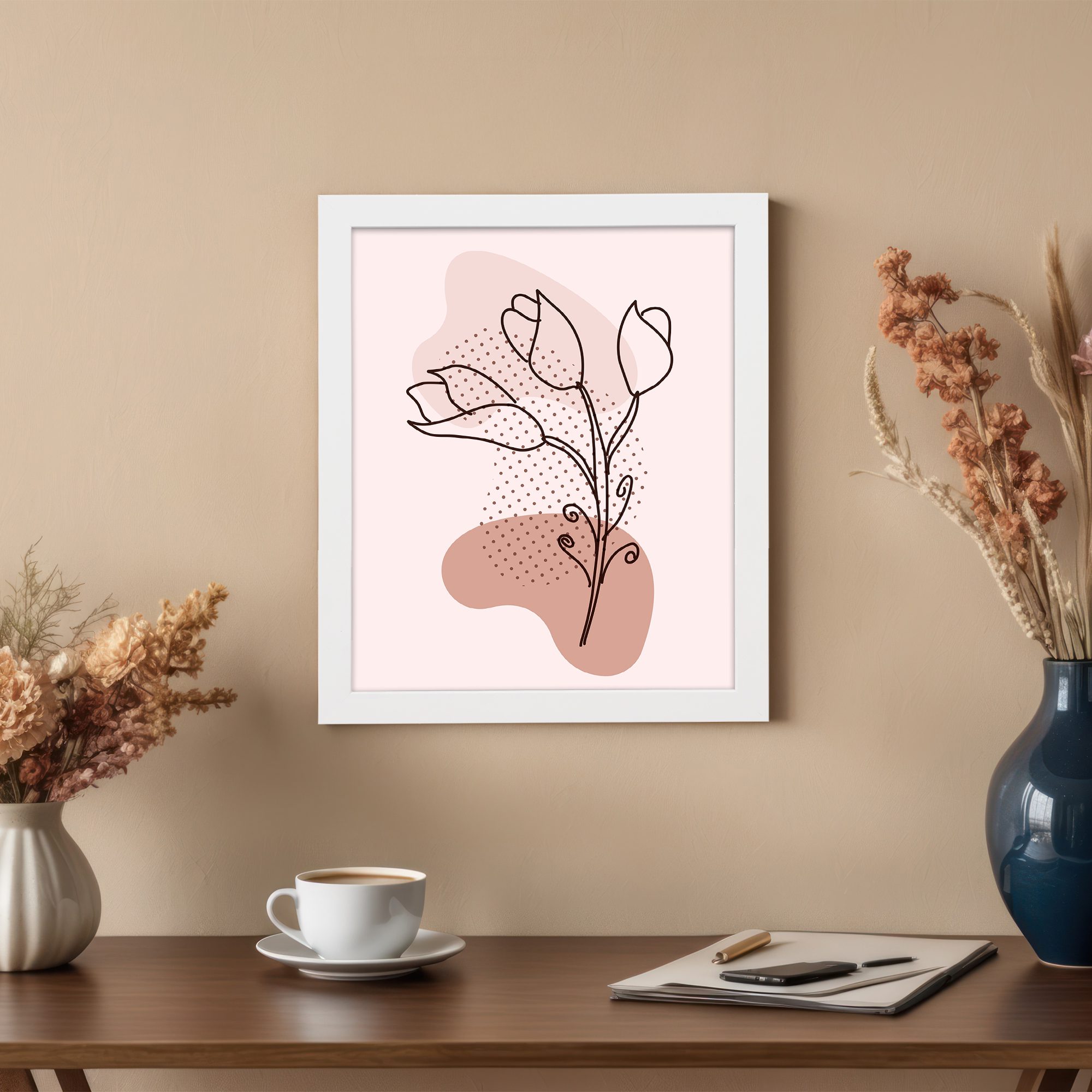 Bring a soft and artistic feel to your space with our Minimalist Wall Art. This design features delicate floral line art enhanced with abstract shapes and dotted textures, creating a clean yet expressive composition.