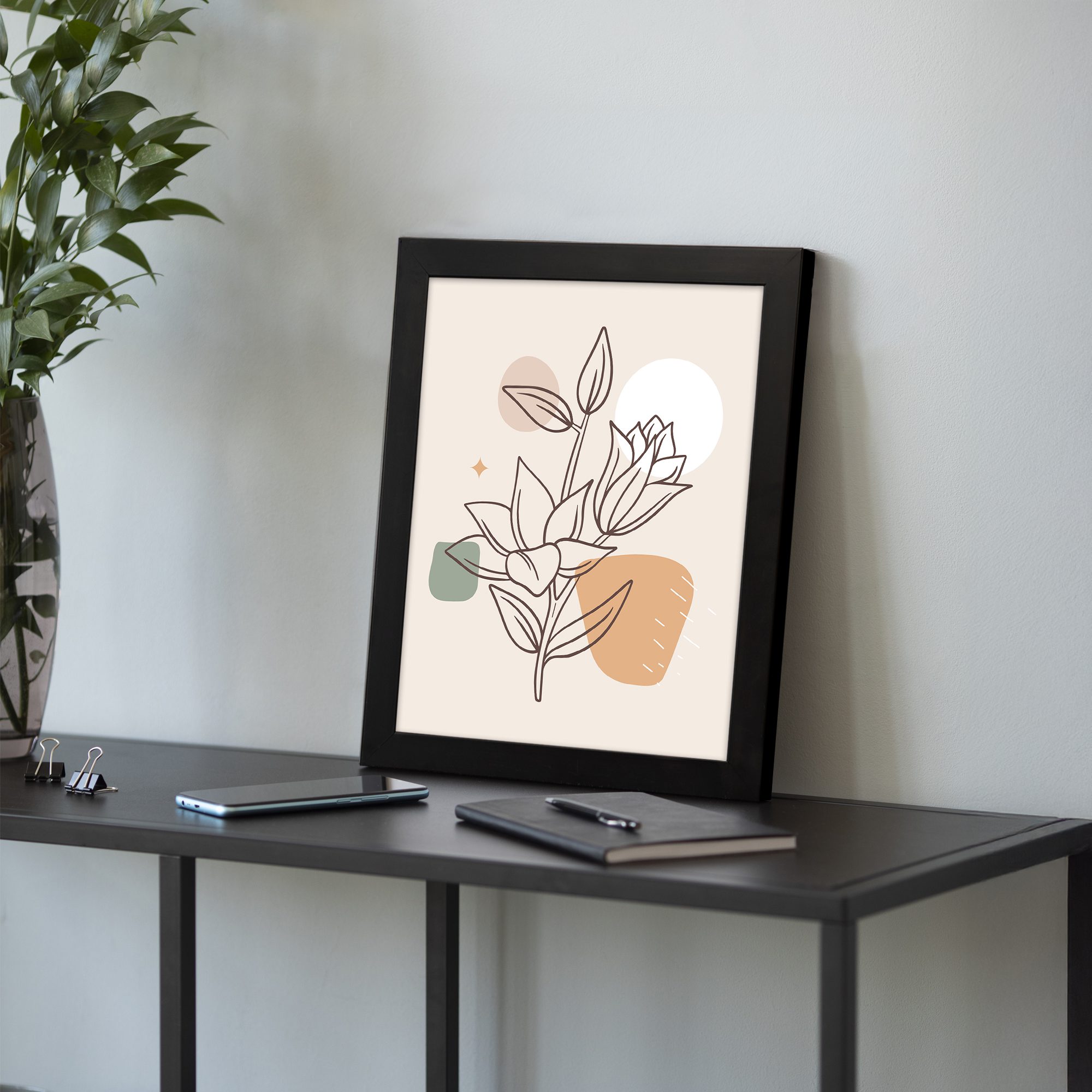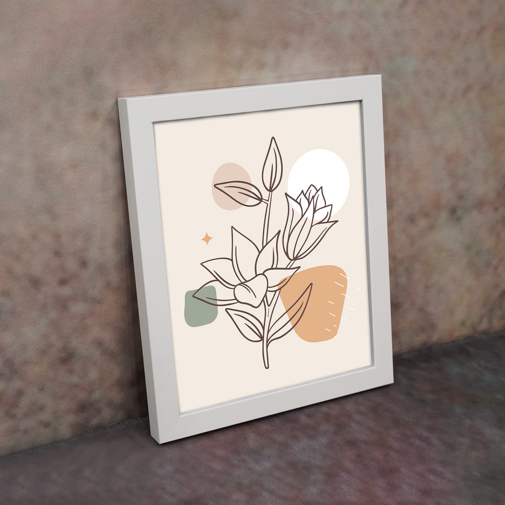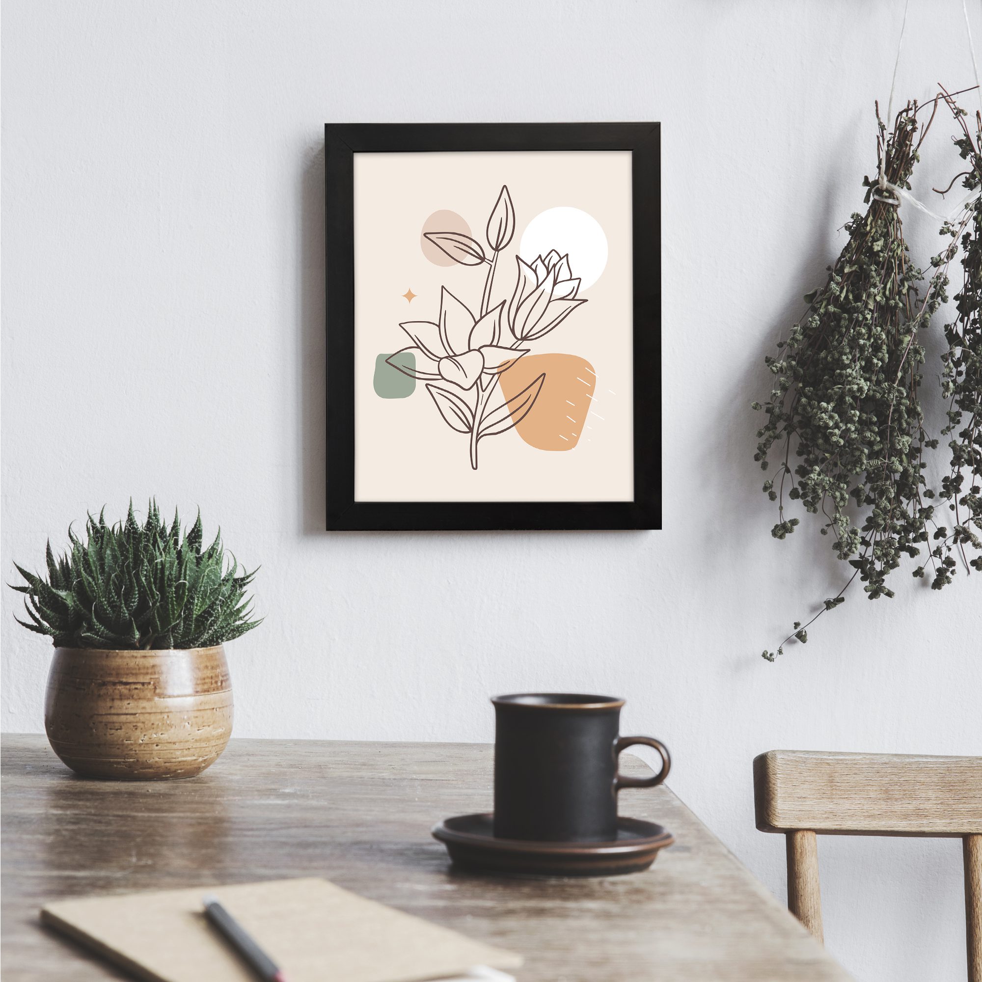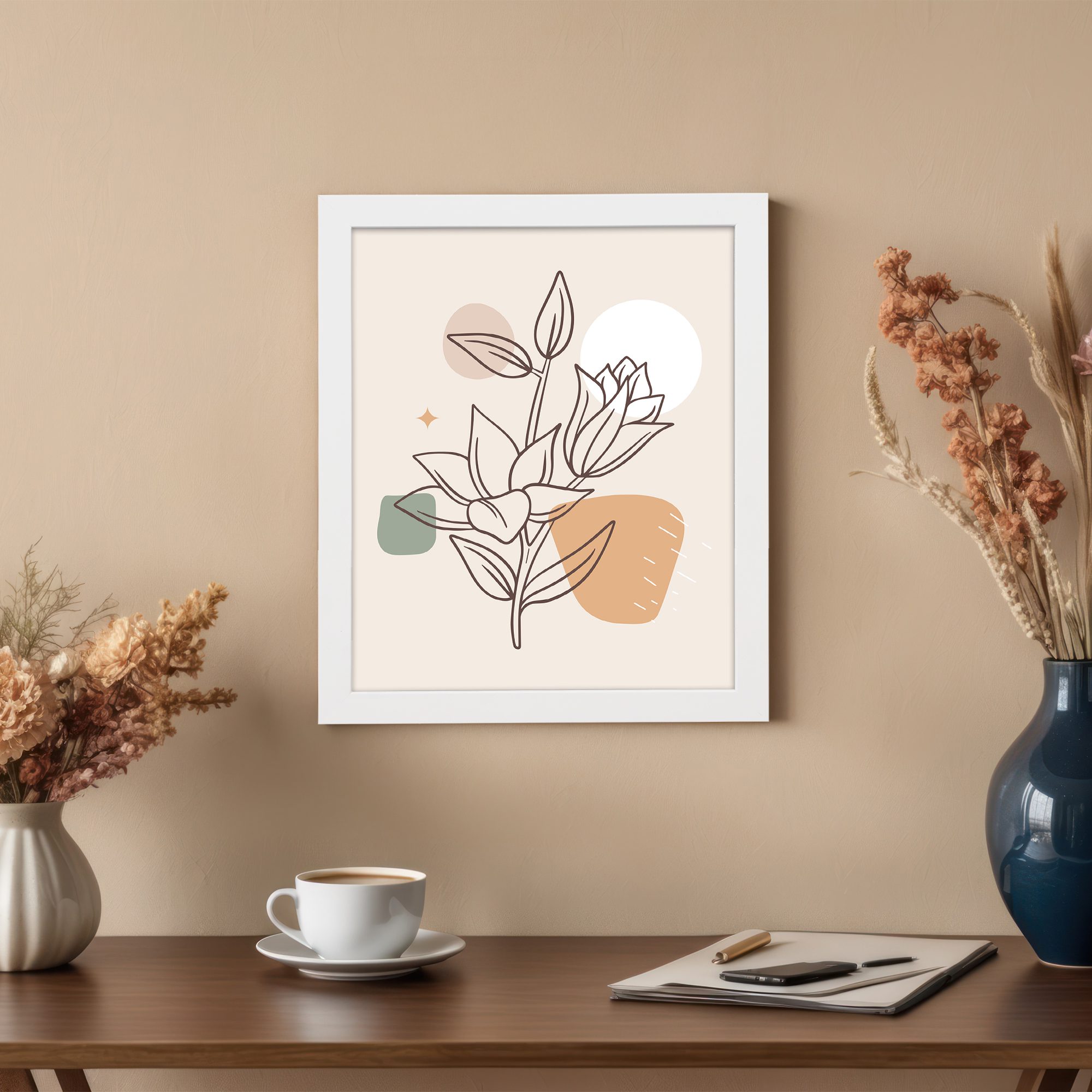 Add a refined and elegant touch to your space with this Minimalist Wall Art. The design features a detailed floral illustration in fine line style, layered over soft abstract shapes and subtle accent elements for a clean and modern composition.
