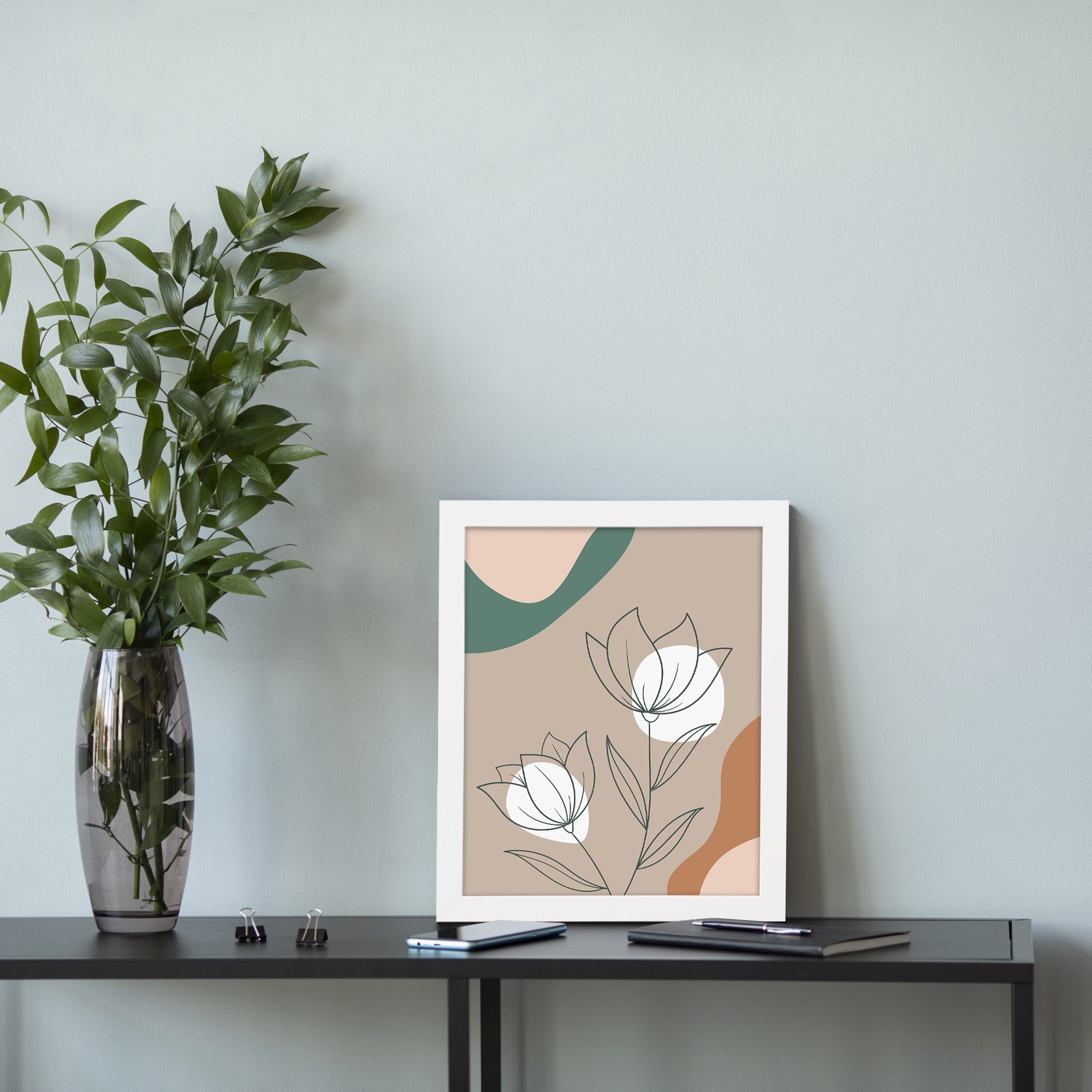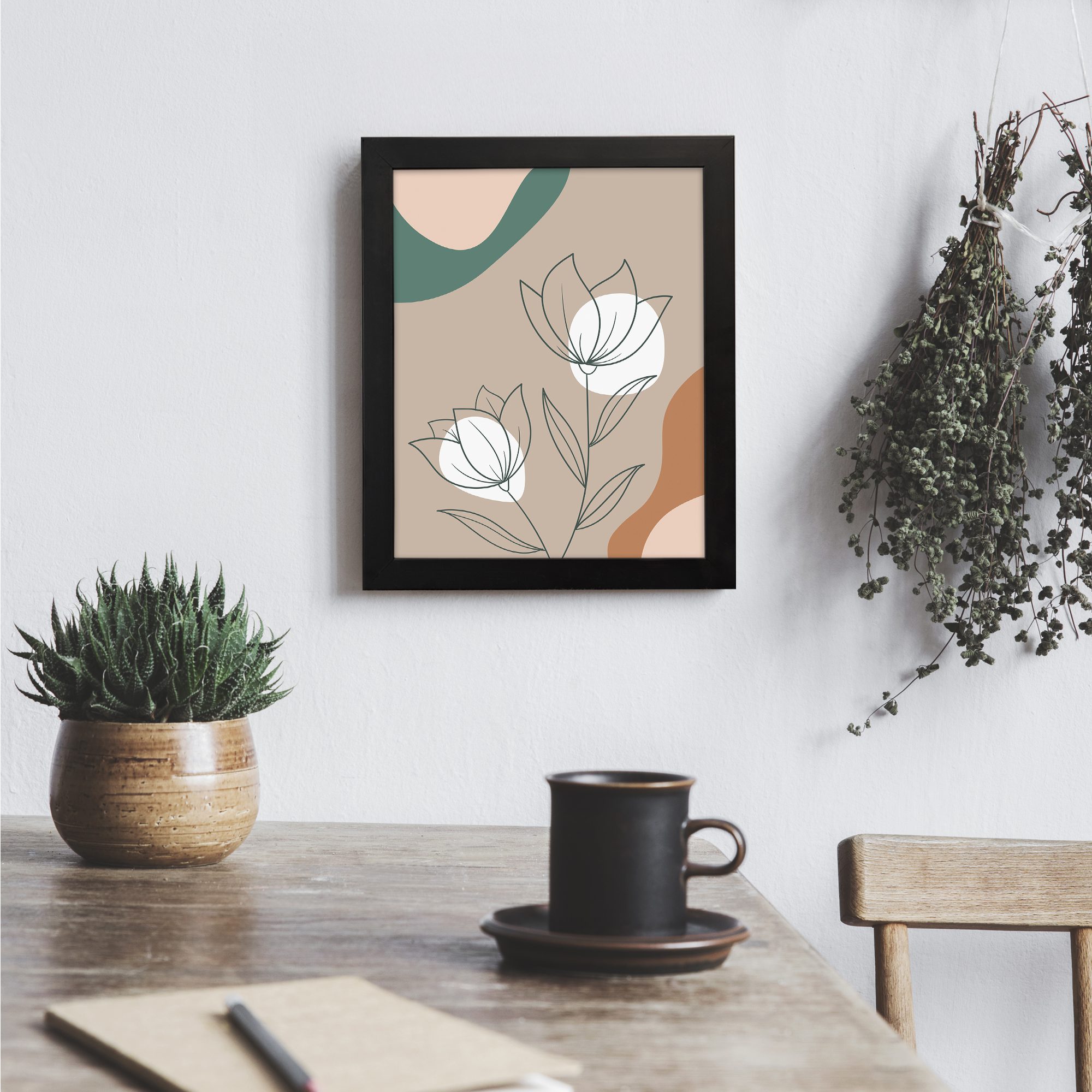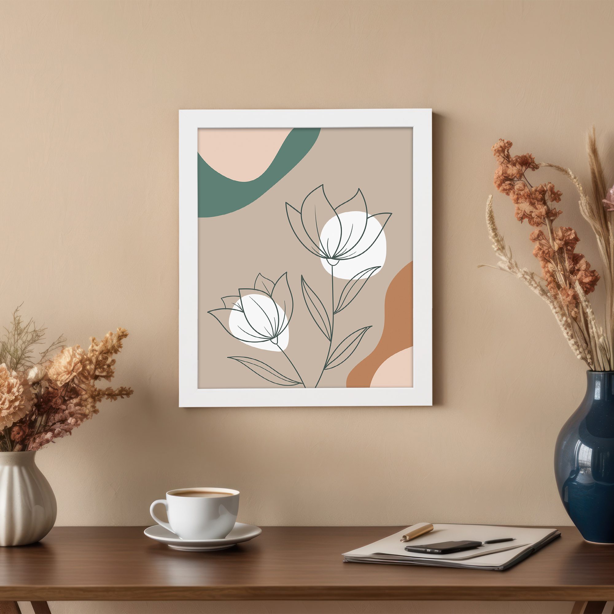 Bring a soft and elegant touch to your space with our Minimalist Wall Art. This design features two floral line art illustrations combined with flowing abstract shapes in the background. The composition is clean and well-balanced, creating a calm and modern aesthetic.