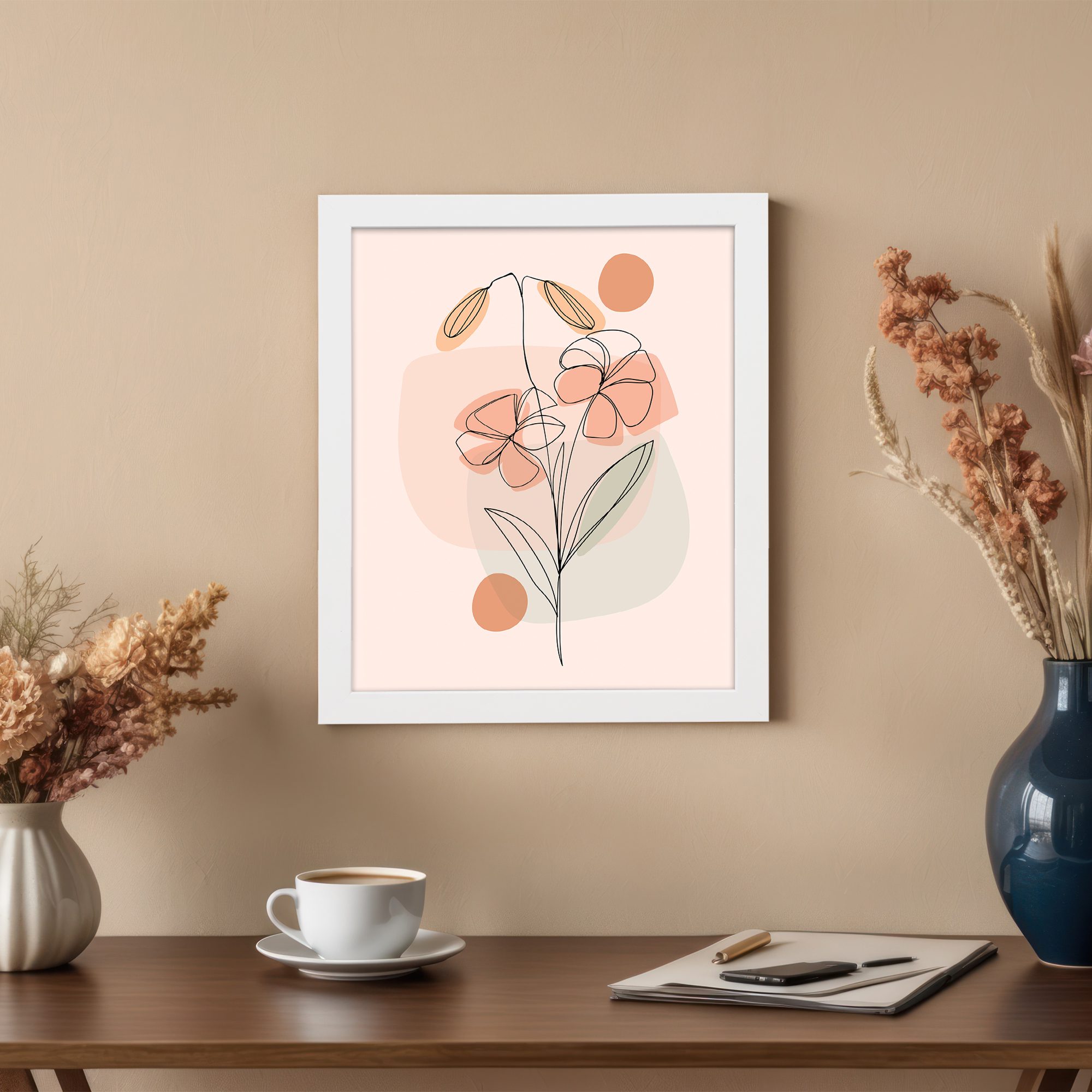 Bring a soft and elegant touch to your space with our Minimalist Wall Art. This design features a delicate floral line art illustration combined with smooth abstract shapes and circular accents. The composition is clean and balanced, creating a calm and modern aesthetic.