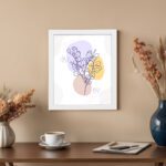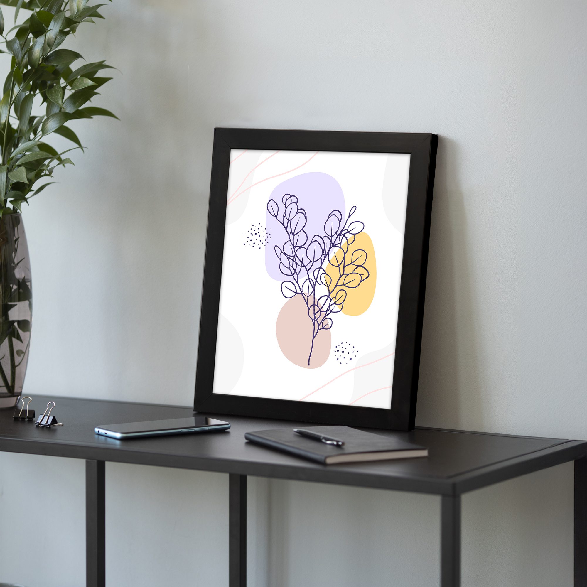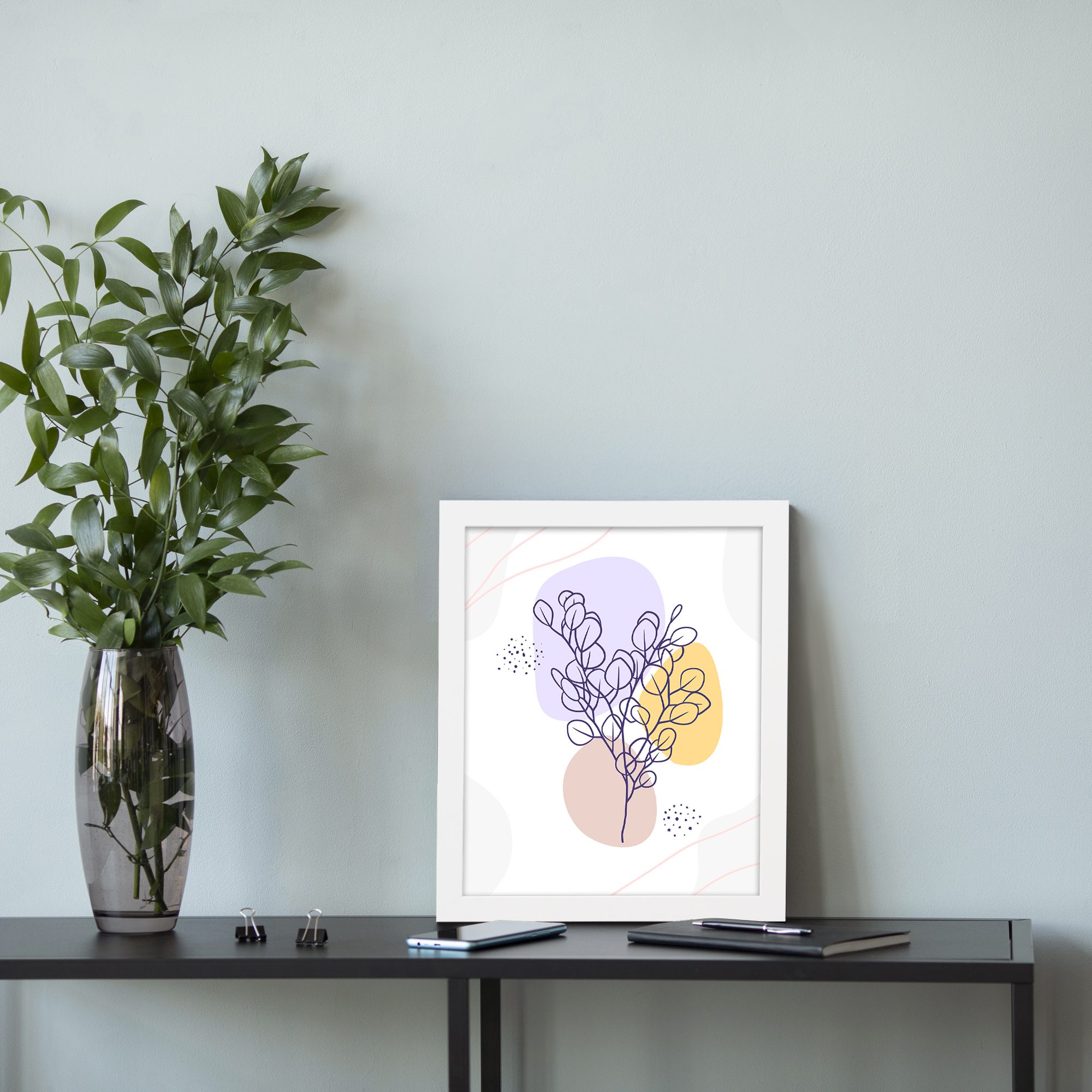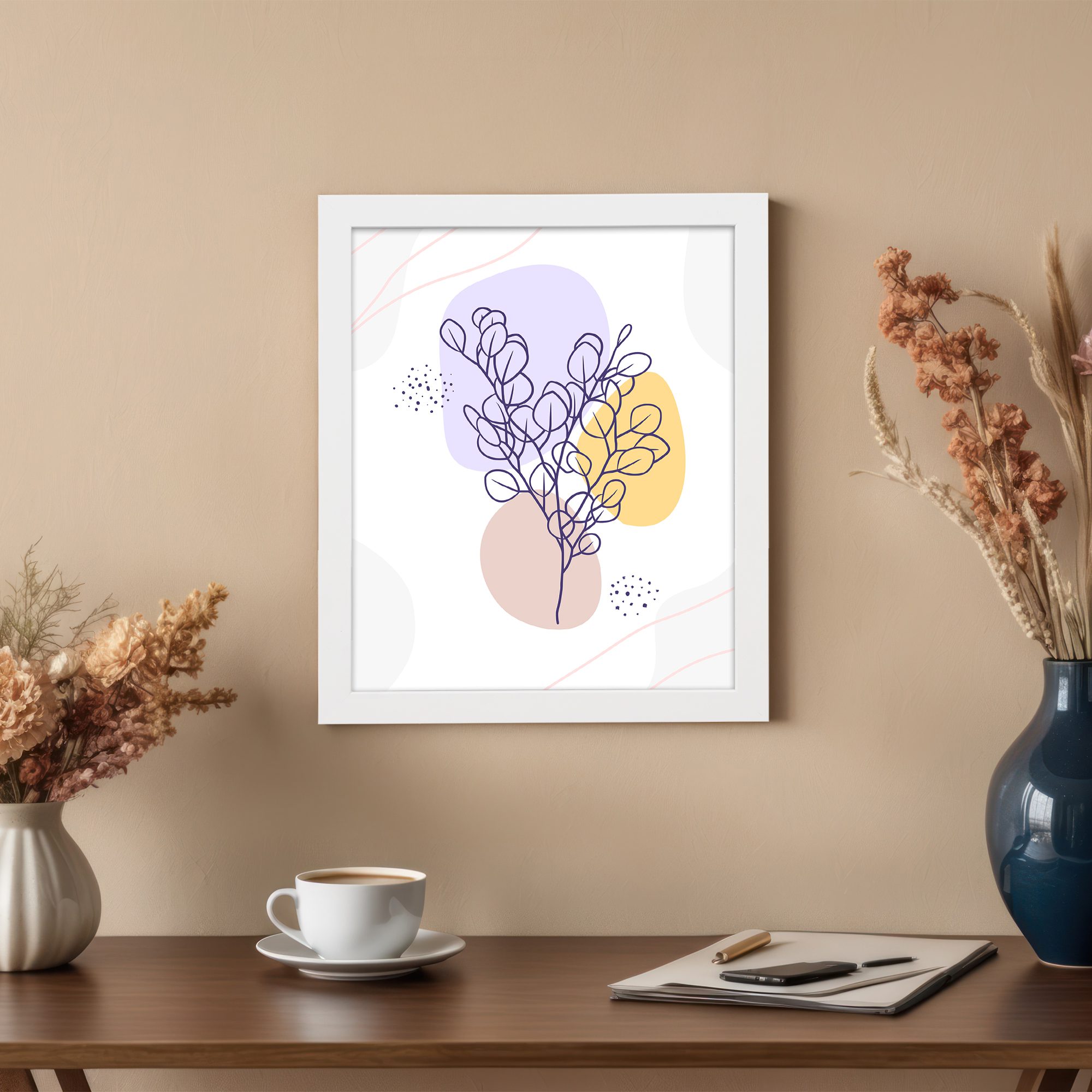 Bring a playful yet elegant vibe to your space with this Minimalist Wall Art. The design features a delicate floral branch drawn in fine line style, layered over soft abstract shapes and subtle dotted textures.