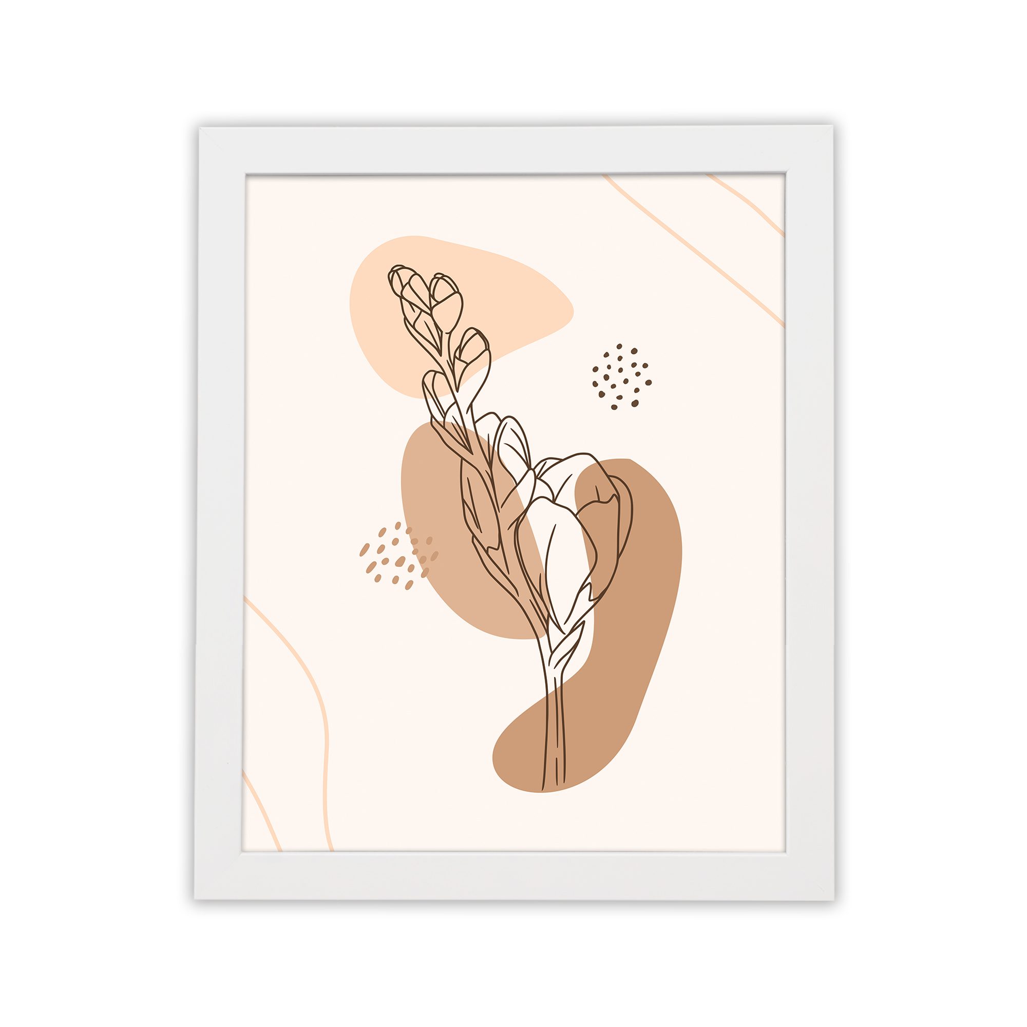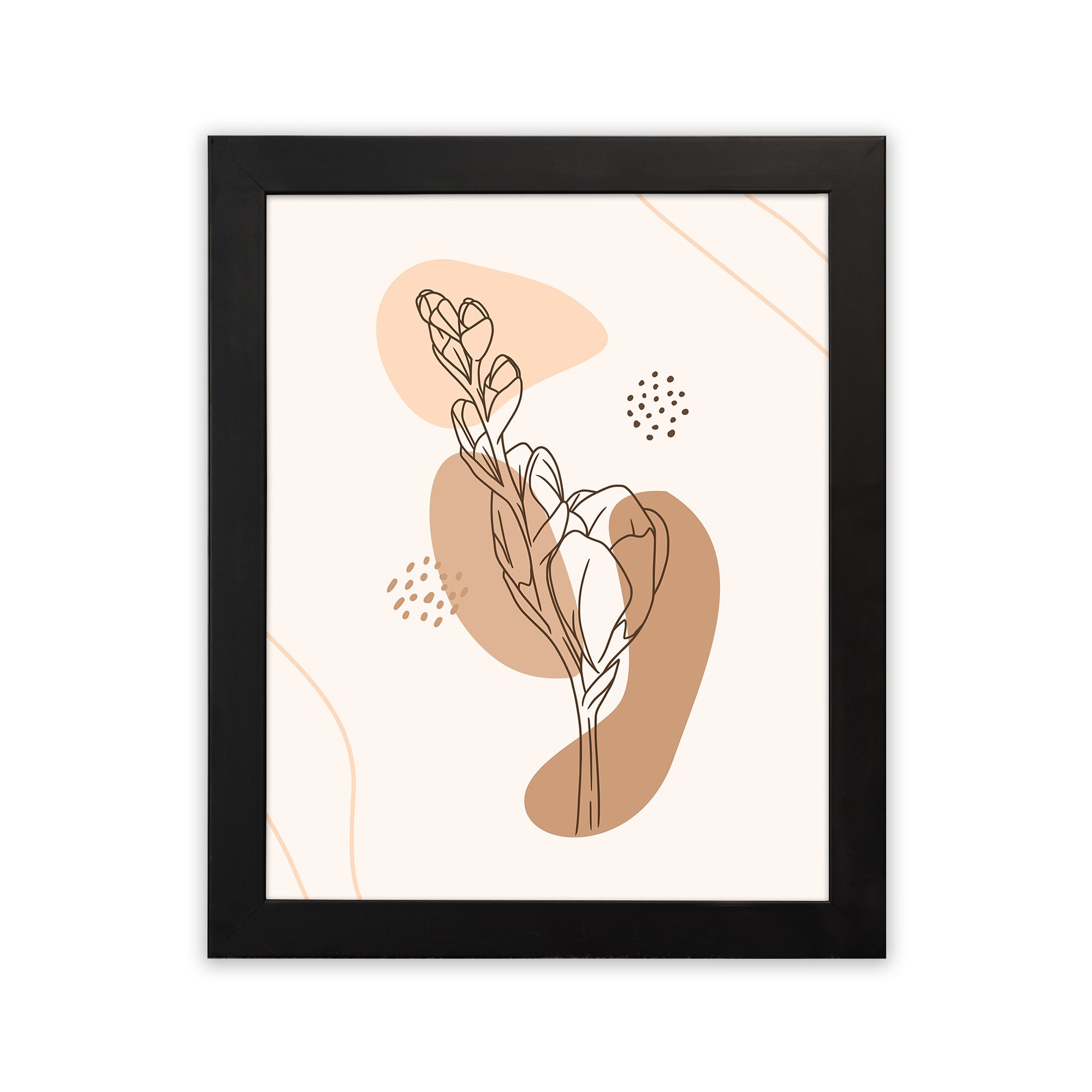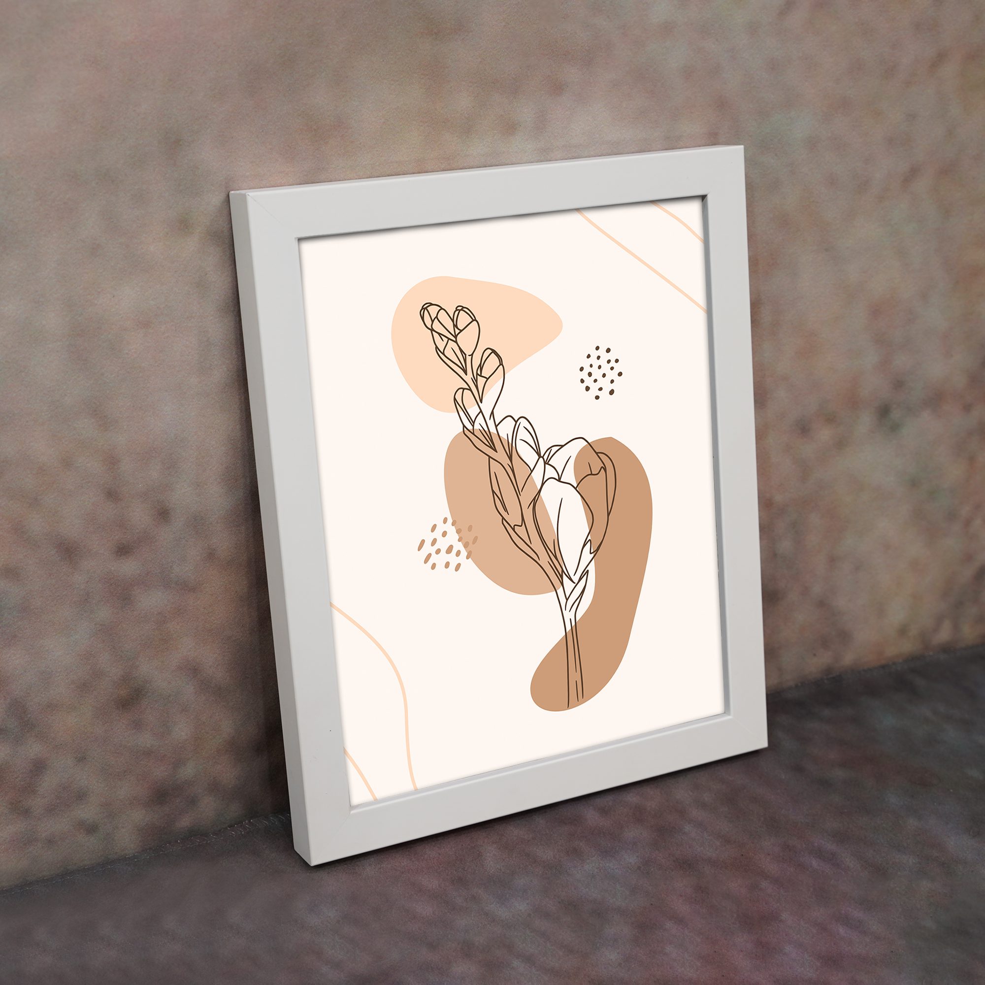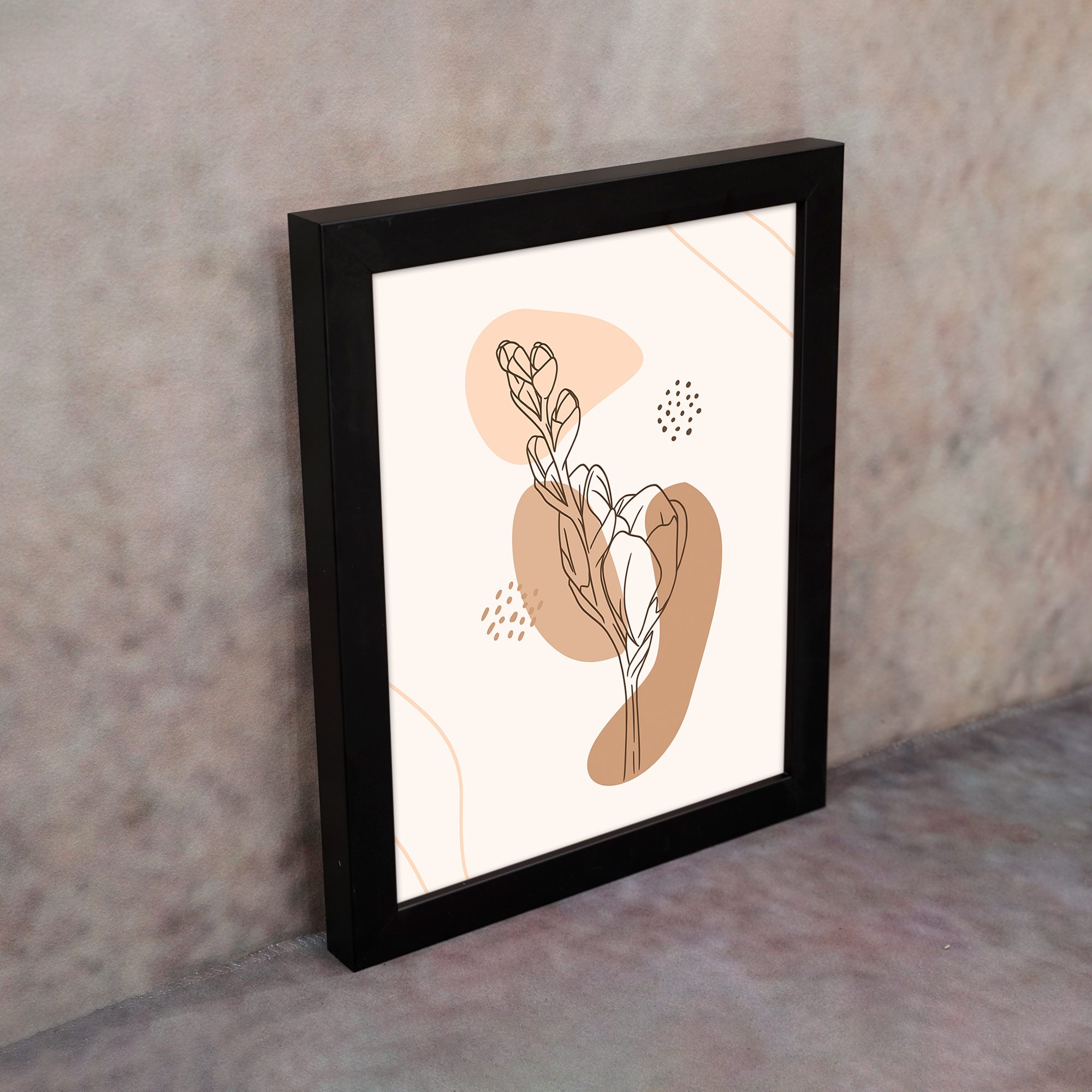 Add a soft and artistic touch to your space with this Minimalist Wall Art. The design features a delicate botanical leaf stem illustrated in fine line style, layered over organic abstract shapes with subtle dotted accents for a balanced and modern composition.
