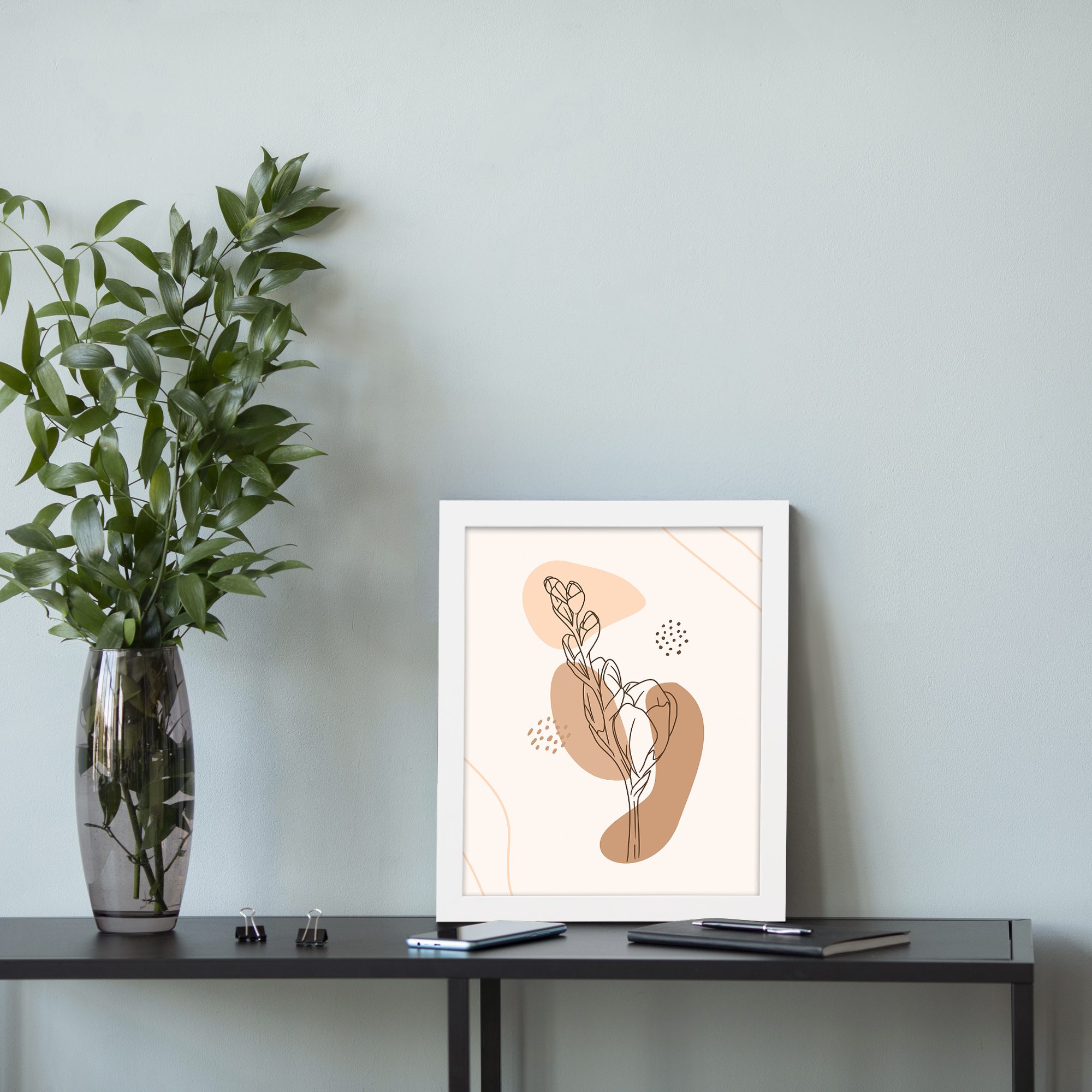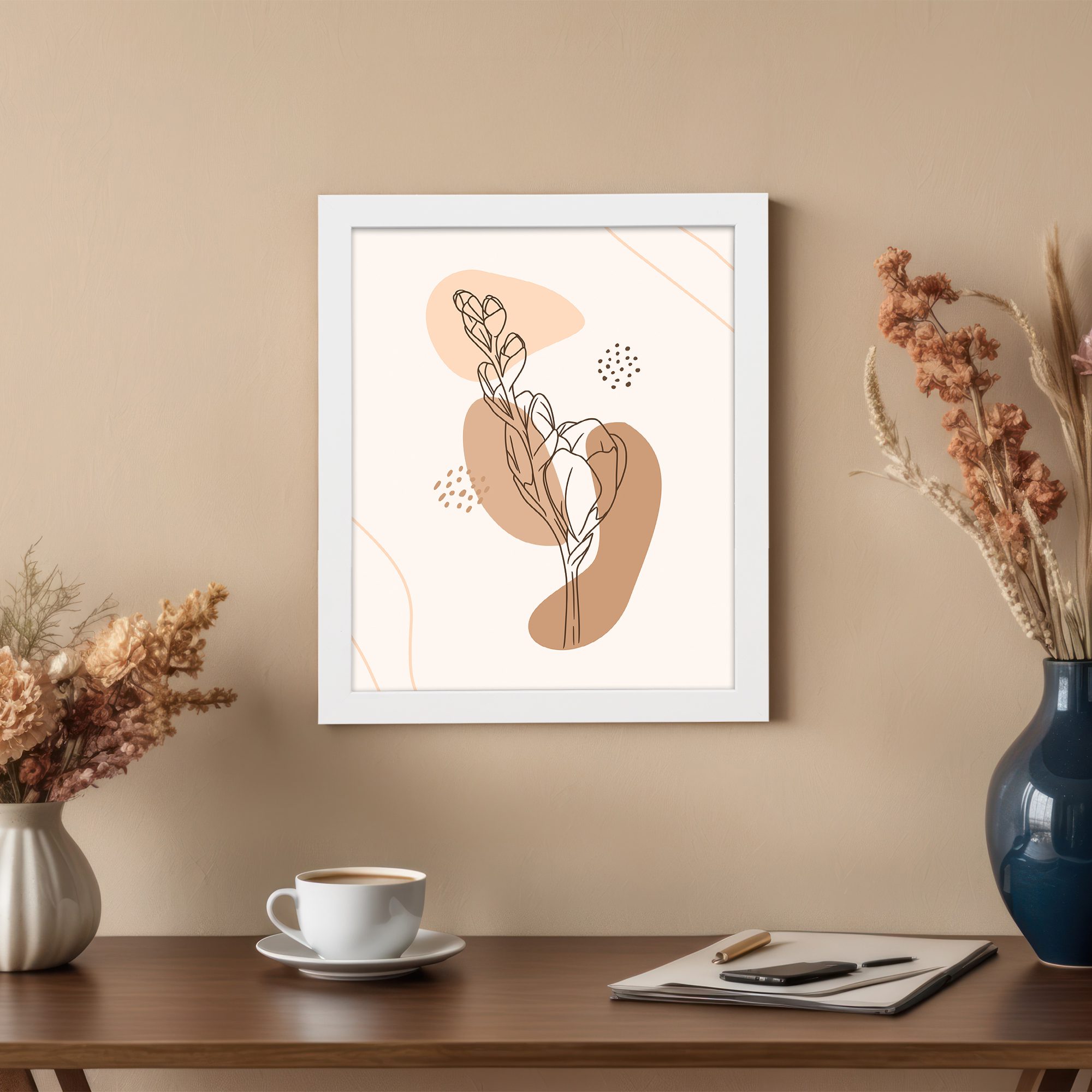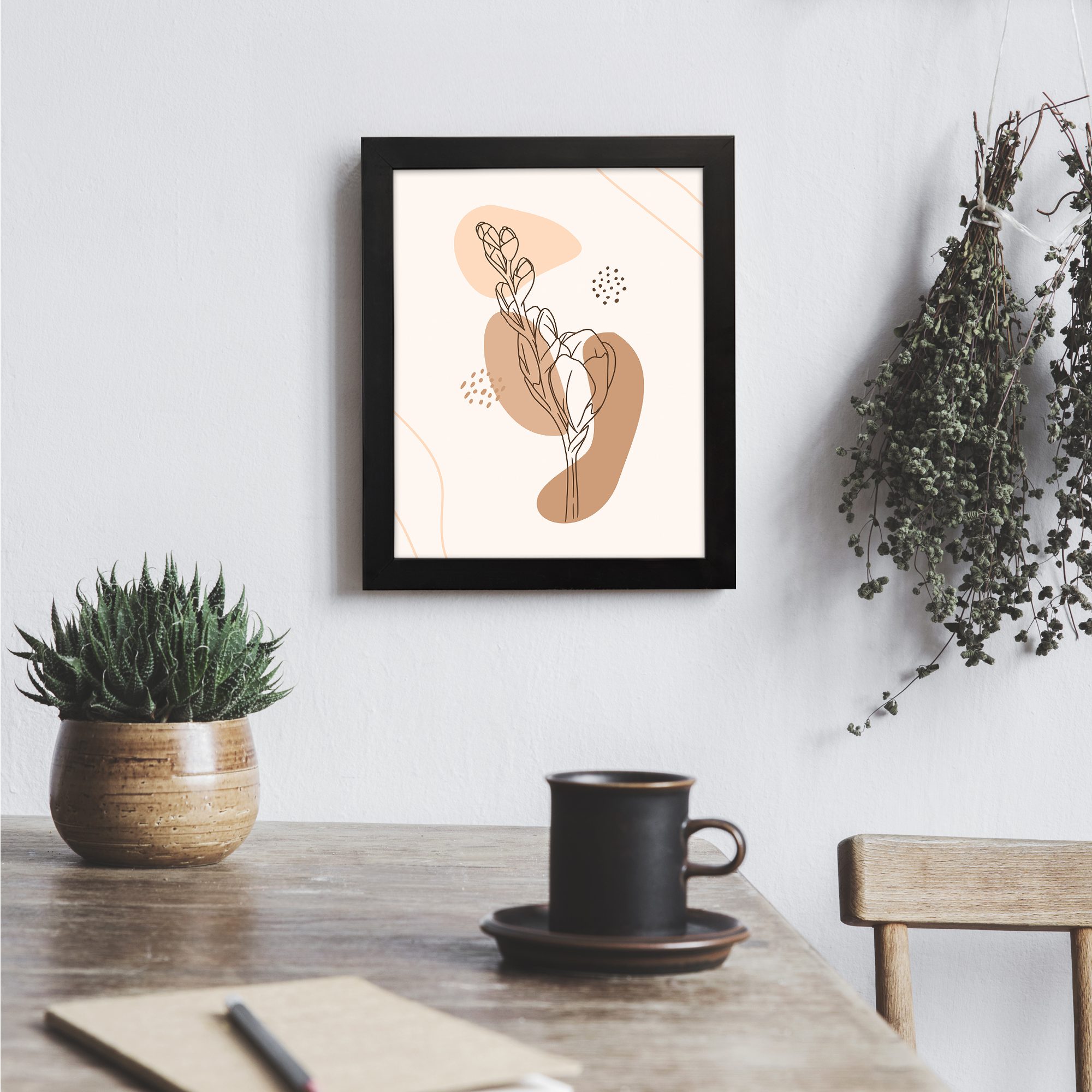 This artwork is perfect for interiors that appreciate modern decor with a natural and relaxed feel.