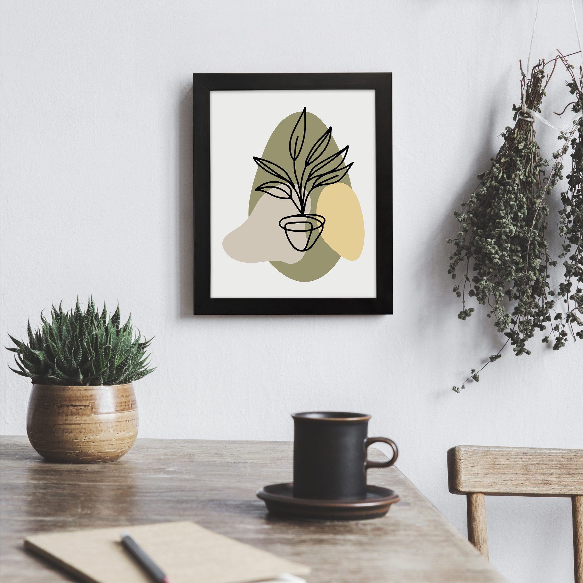Add a fresh and modern touch to your space with this Minimalist Wall Art. The design features a simple potted plant illustration with bold line detailing, layered over soft abstract shapes for a clean and balanced composition.