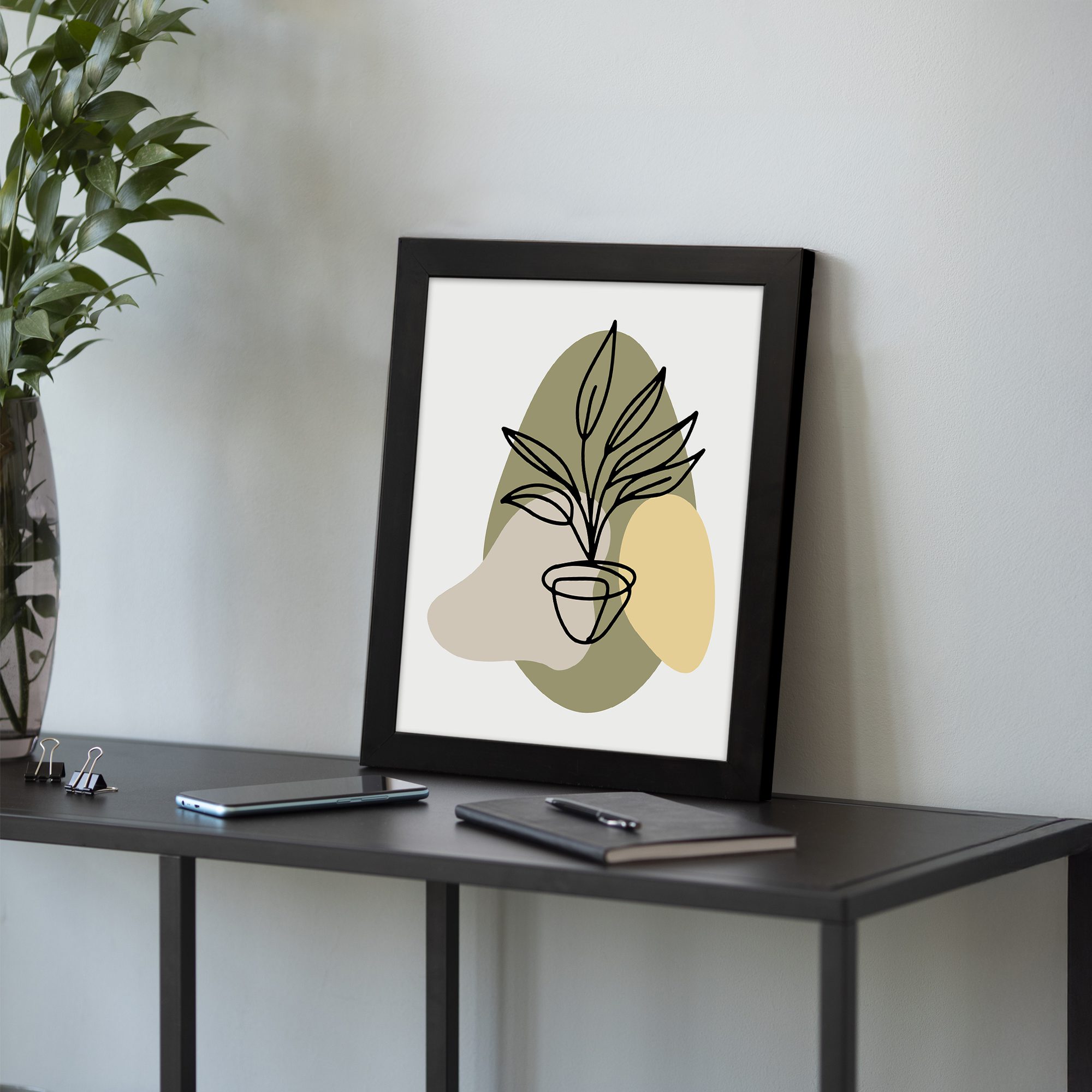 Infidu Minimalist Wall Art Potted Plant Line Frame - Modern Decor - mla112