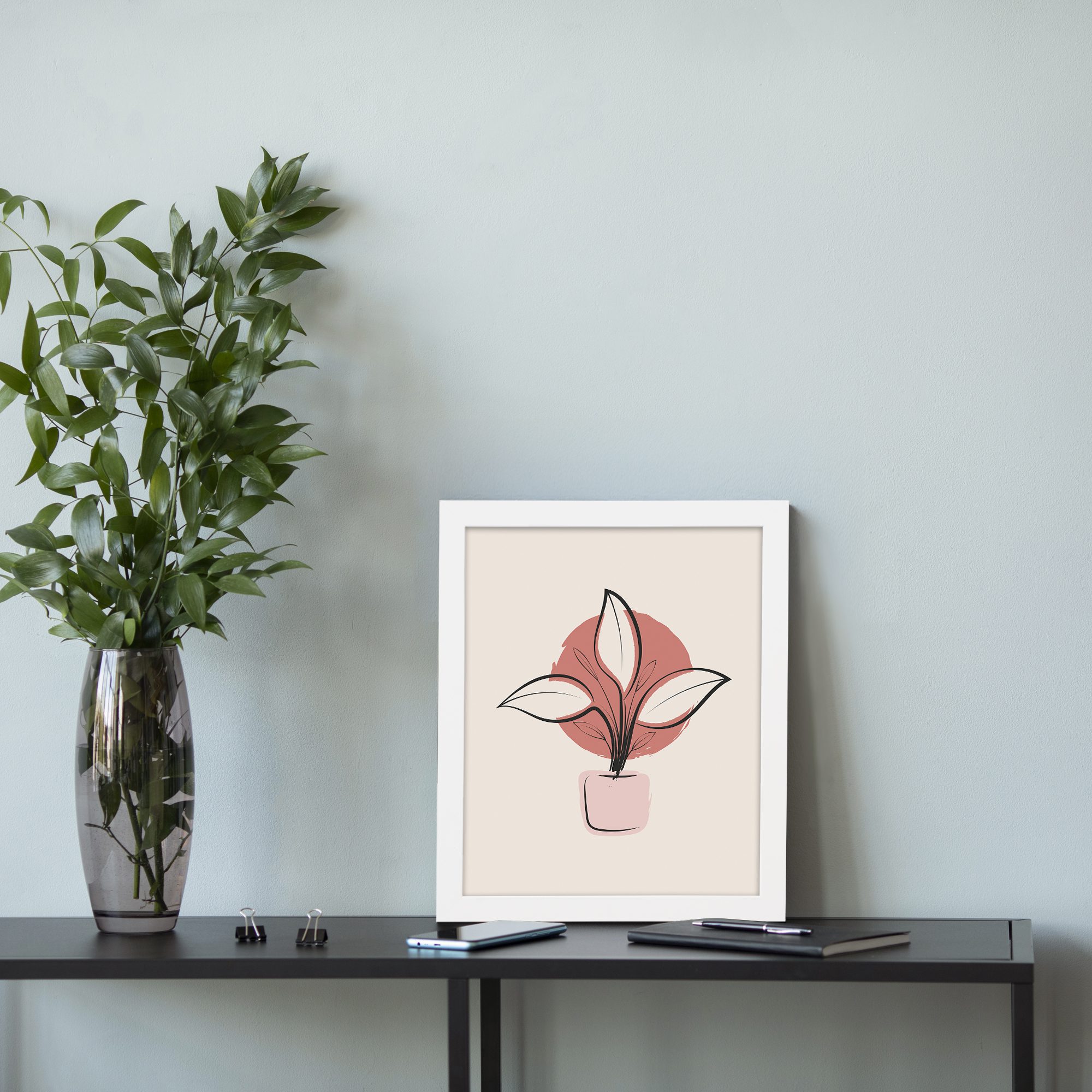 Add a soft and modern touch to your space with our Minimalist Wall Art. This design features a potted plant illustrated in clean line art, combined with a bold circular accent in the background for a balanced composition.
