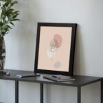 The use of warm beige and soft pastel tones adds a gentle and refined feel. The clean lines and open space make this artwork perfect for creating a peaceful and stylish atmosphere.