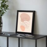 The use of warm beige and peach tones adds a soft and soothing feel. The minimal lines and open space make this artwork perfect for creating a relaxed and stylish atmosphere.