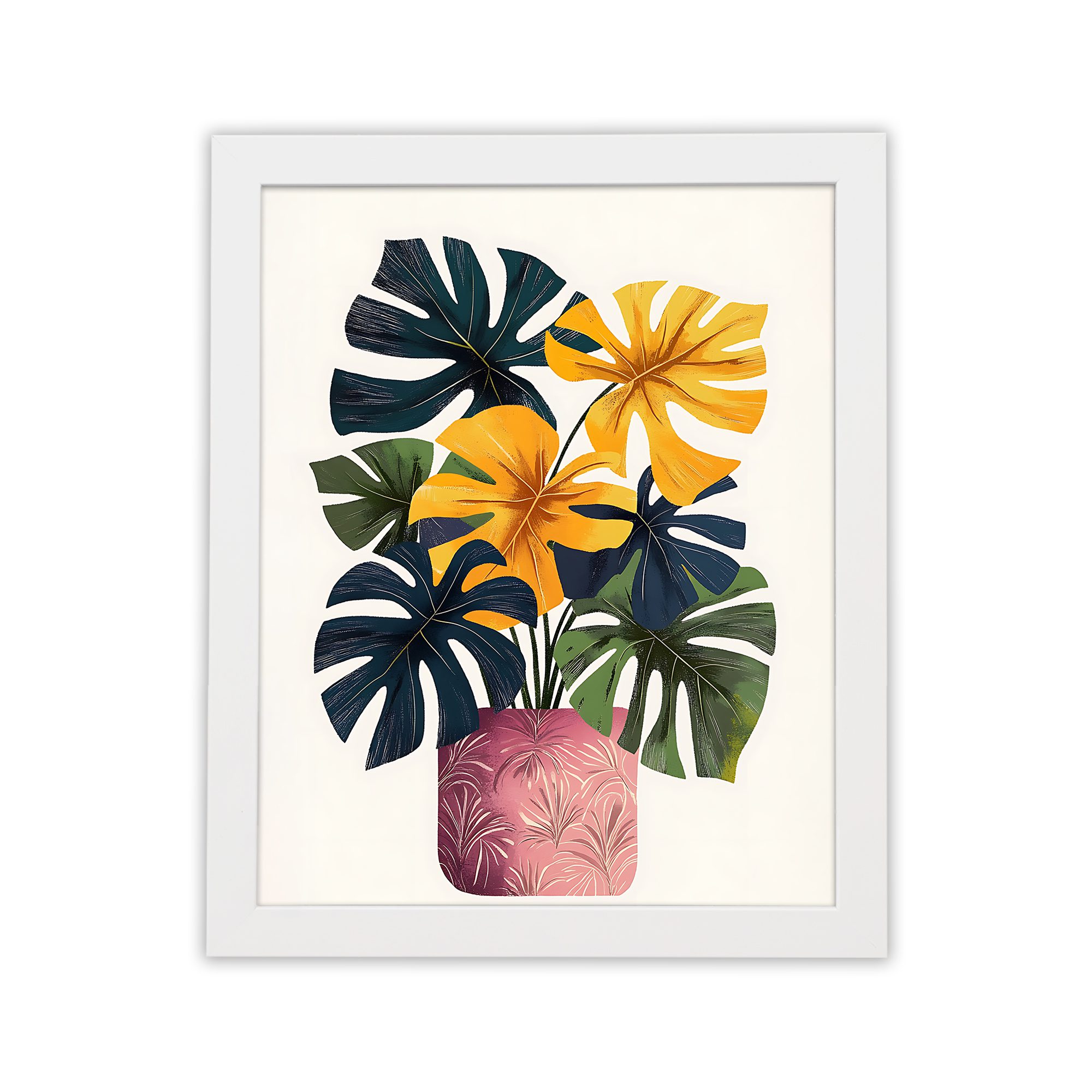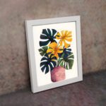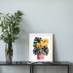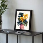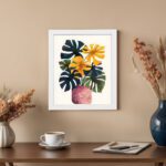 Brighten up your space with this beautiful Kotart modern framed wall art. This artwork features bold tropical leaves and vibrant flowers arranged in a stylish vase. The mix of rich colors and natural shapes creates a lively and eye-catching design.