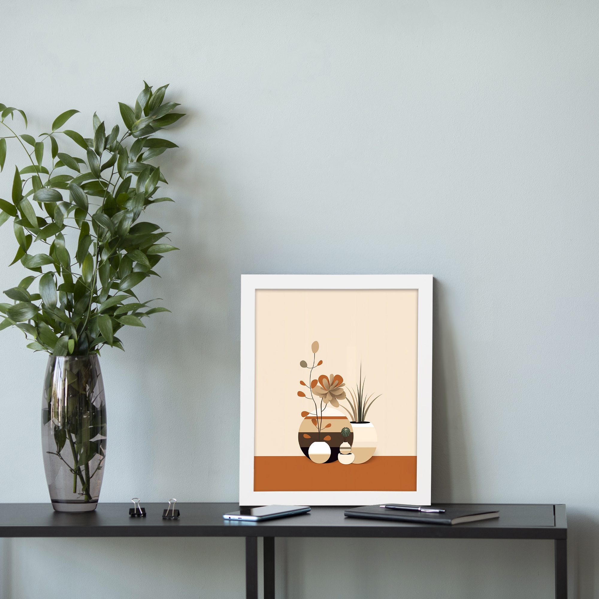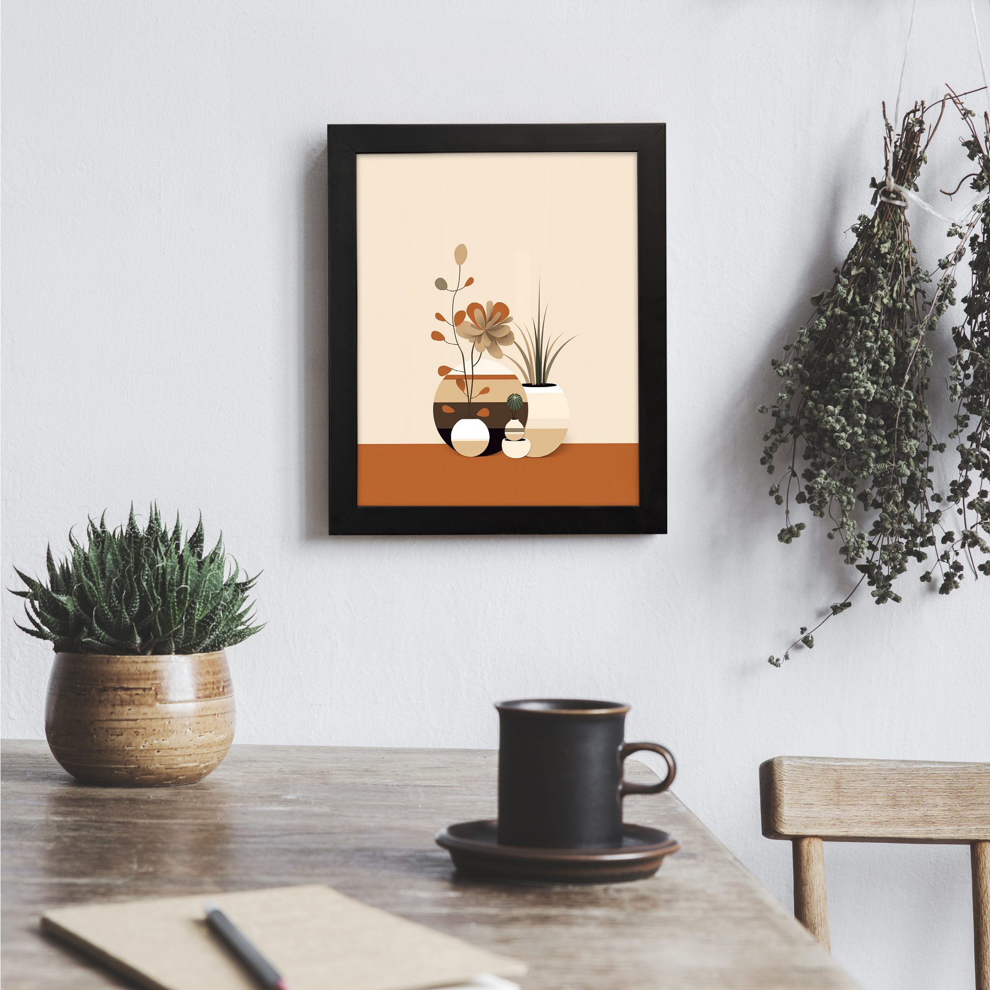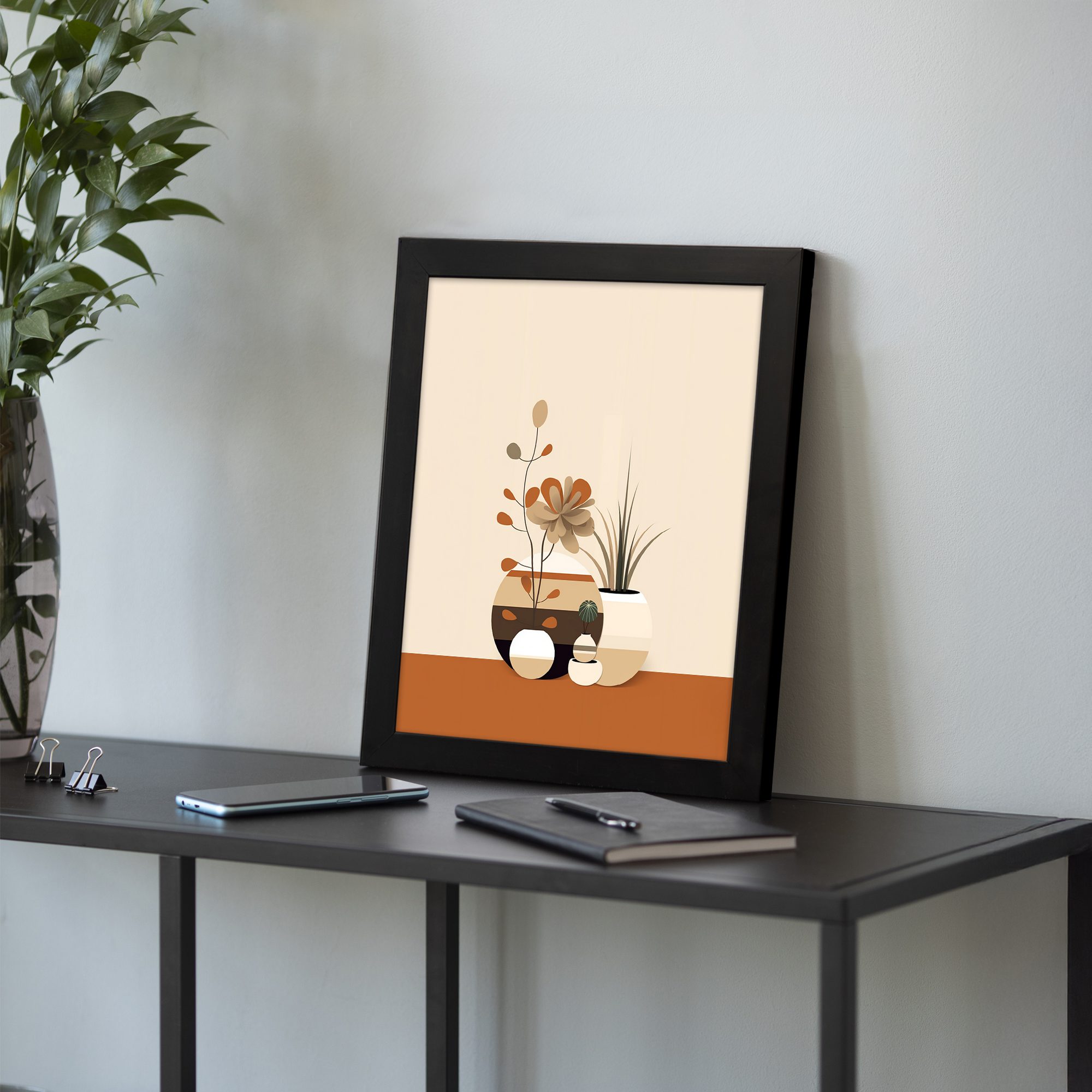 Infidu Modern Vase Wall Art Framed Minimalist Neutral Home Decor – Kotart Aesthetic Modern Art – kma43