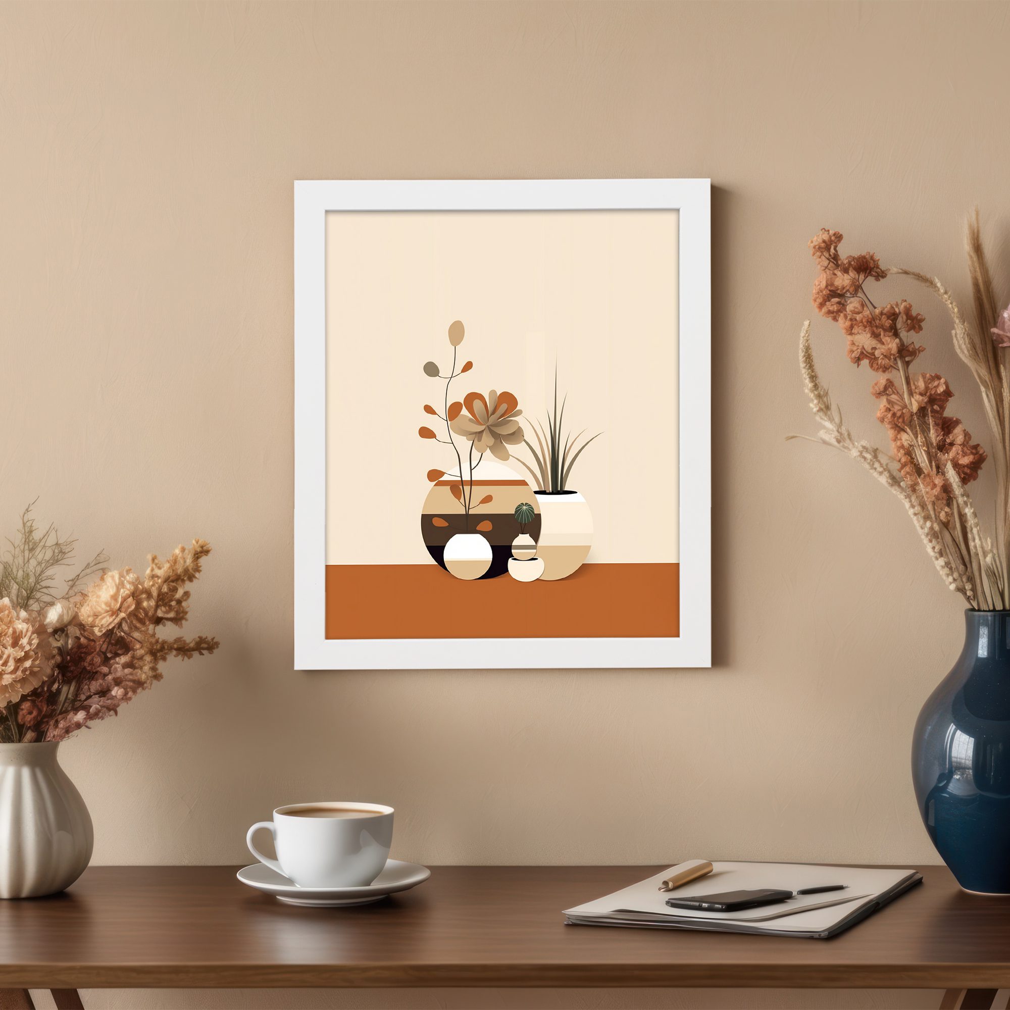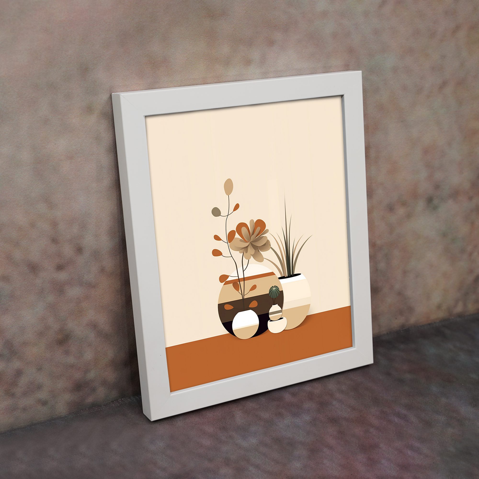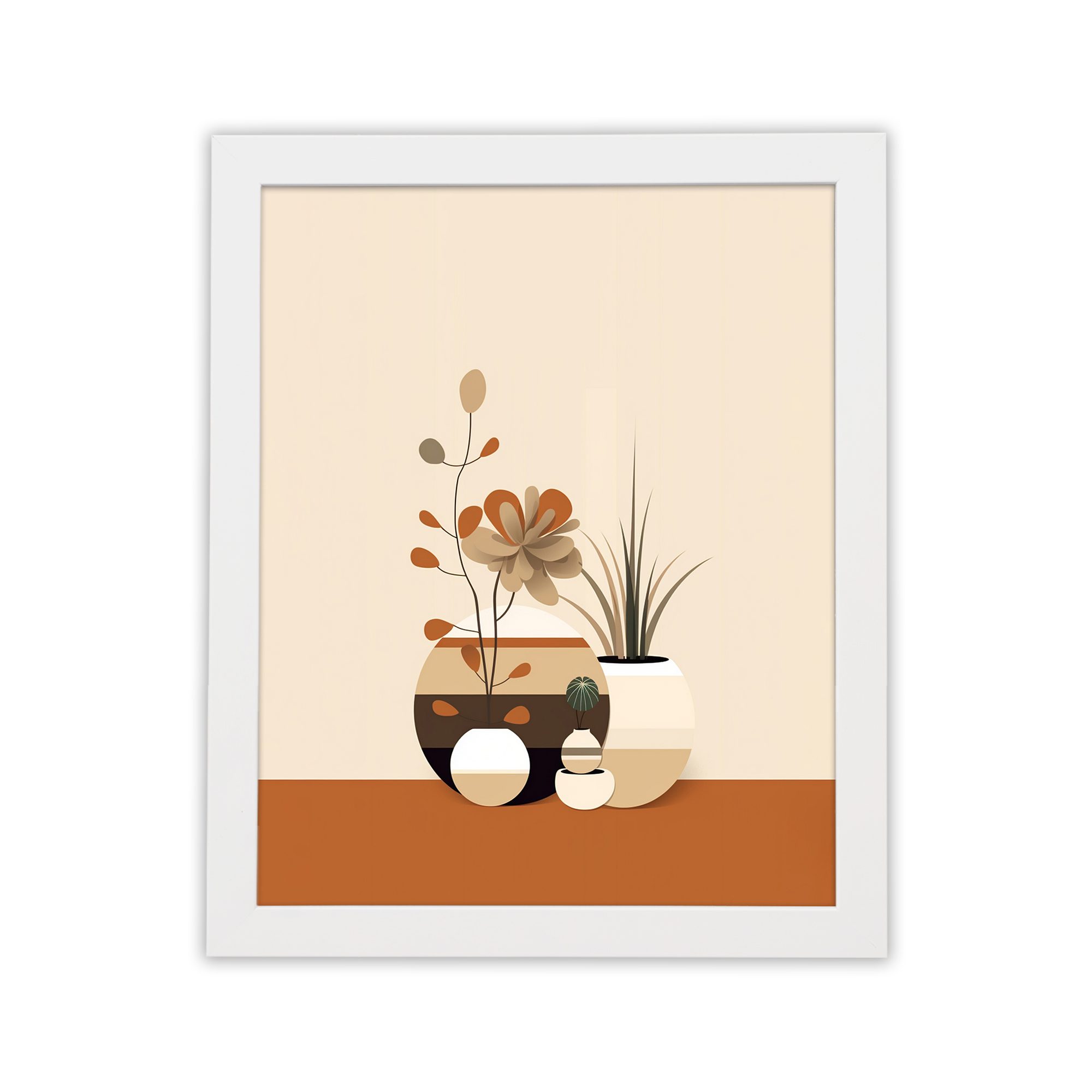 Add a touch of elegance to your space with this Kotart modern framed wall art. This artwork features a stylish arrangement of decorative vases and subtle plant elements in warm neutral tones. The soft colors and clean design create a calm and modern look for any room.