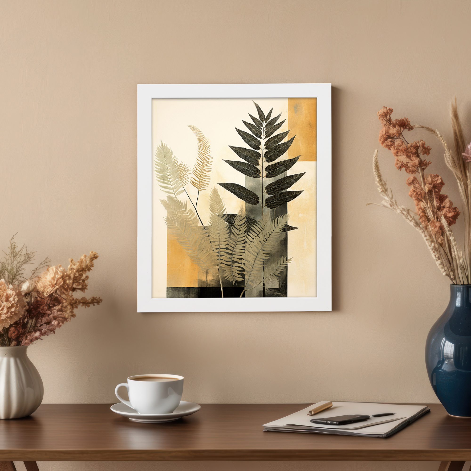 Bring a soft and elegant look to your home with this Kotart aesthetic modern wall art. This artwork features layered botanical leaves in neutral tones with abstract background blocks. The subtle color palette creates a calm and sophisticated feel.